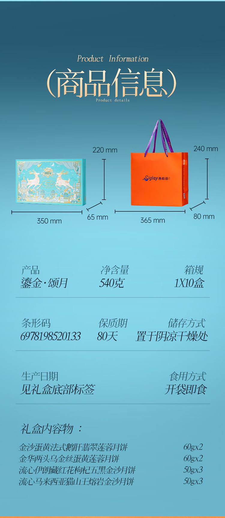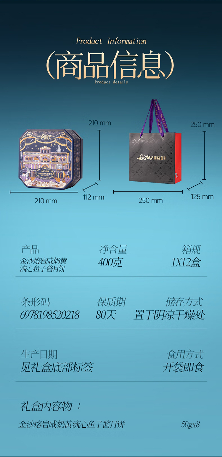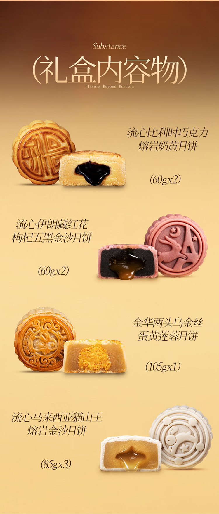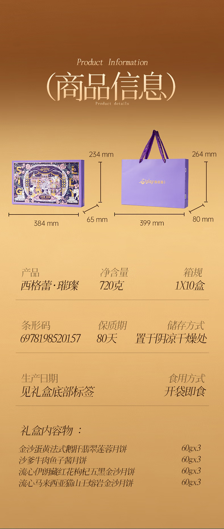西格蕾金沙流心月饼礼盒 黑松露莲蓉 奶黄礼盒中秋 传统美食