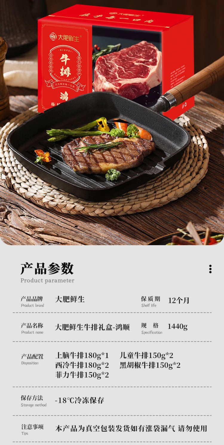 大肥鲜生牛排礼盒肉类礼盒 鸿福900g