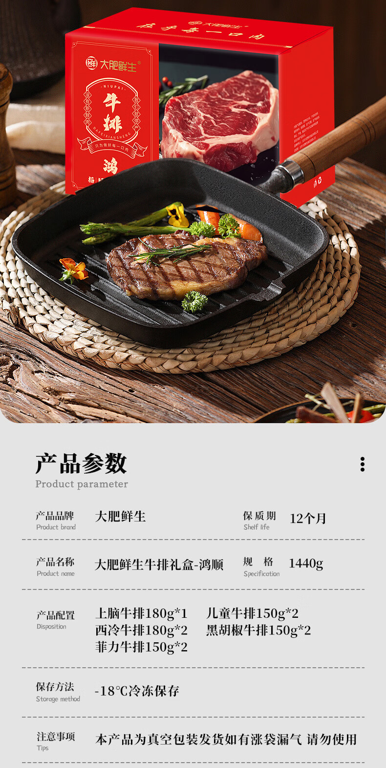大肥鲜生牛排礼盒肉类礼盒 鸿财2220g