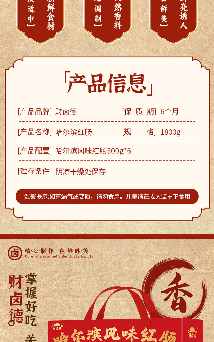 财卤德德熟食礼盒 哈尔滨风味红肠1800g 开袋即食 中秋送礼