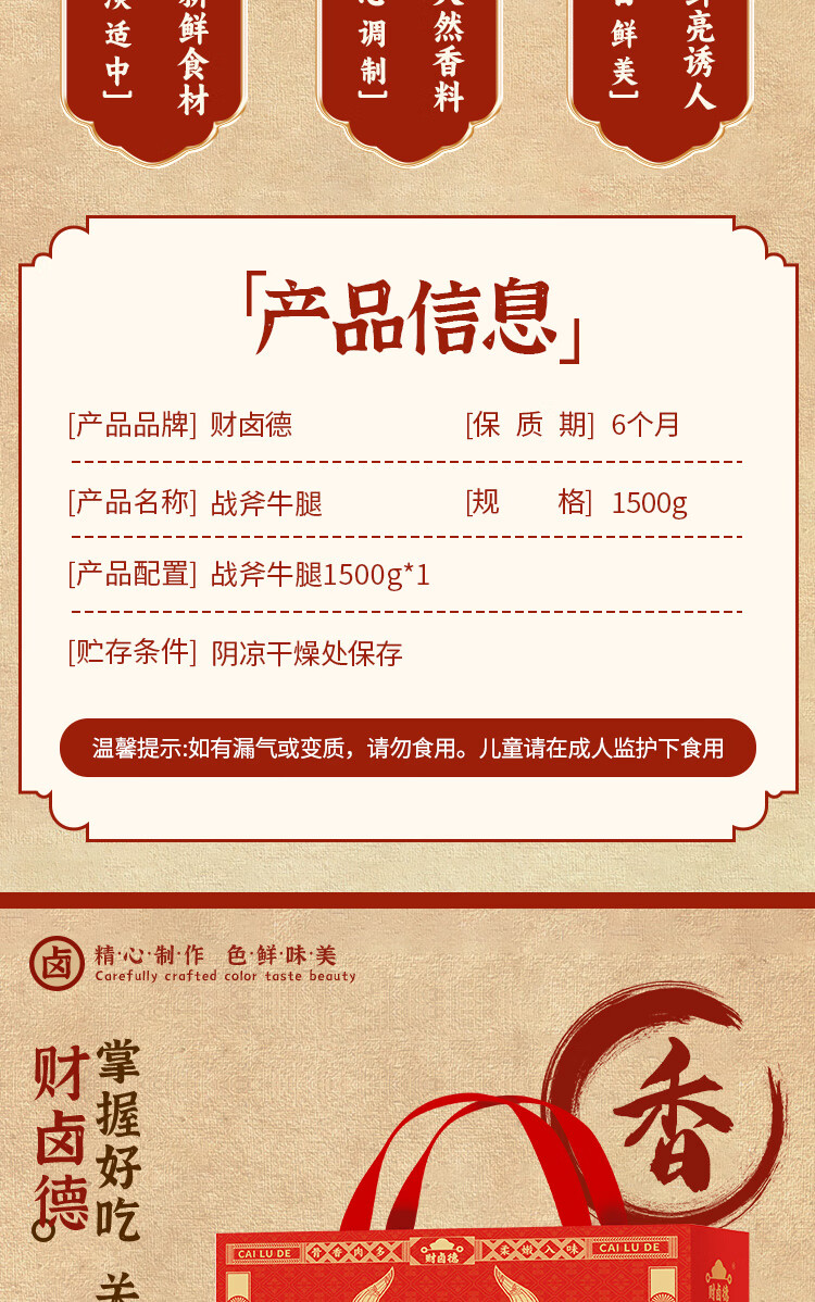 财卤德铁锅炖大鹅炖排骨战斧牛腿礼盒1500g