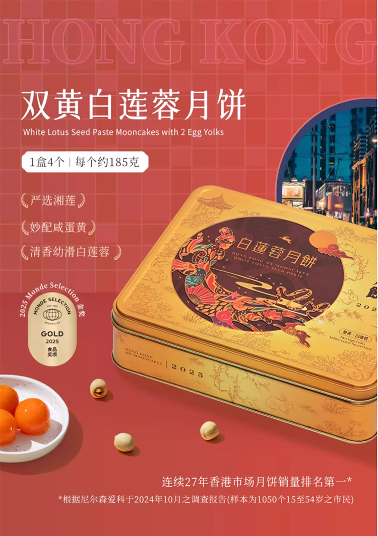 香港美心双黄白莲蓉中秋月饼咸蛋黄老式糕点传统商务团购正品礼盒