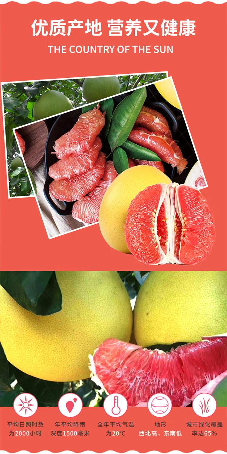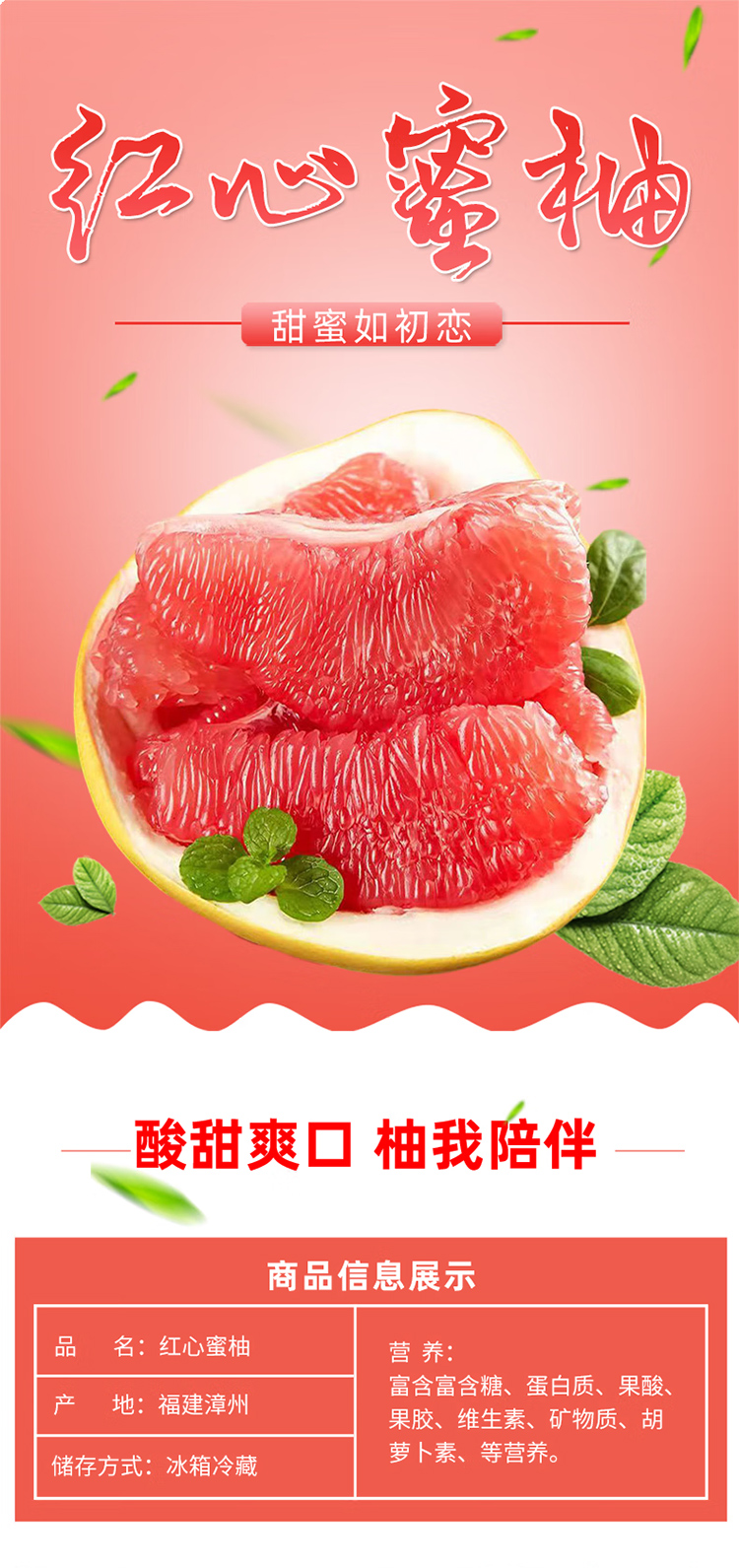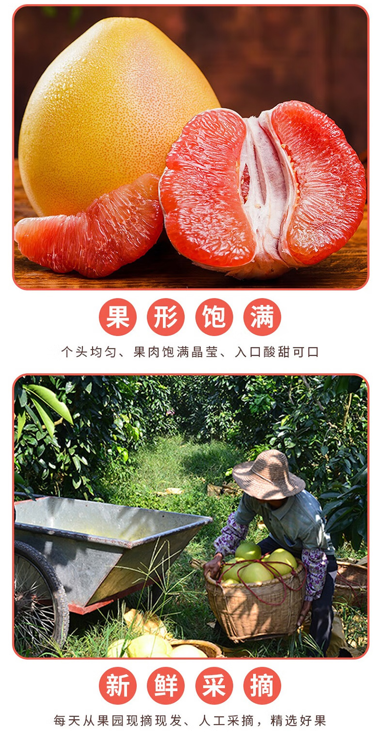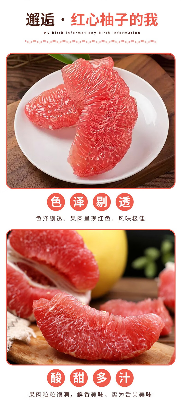 福建红心蜜柚单果850-1250g 4.5-5斤(2个)礼盒装