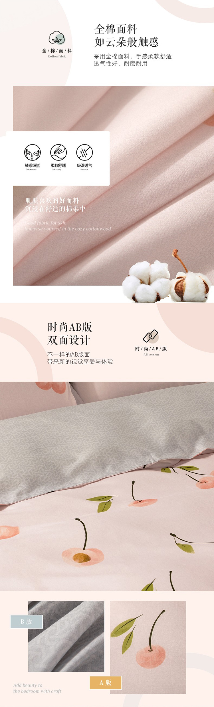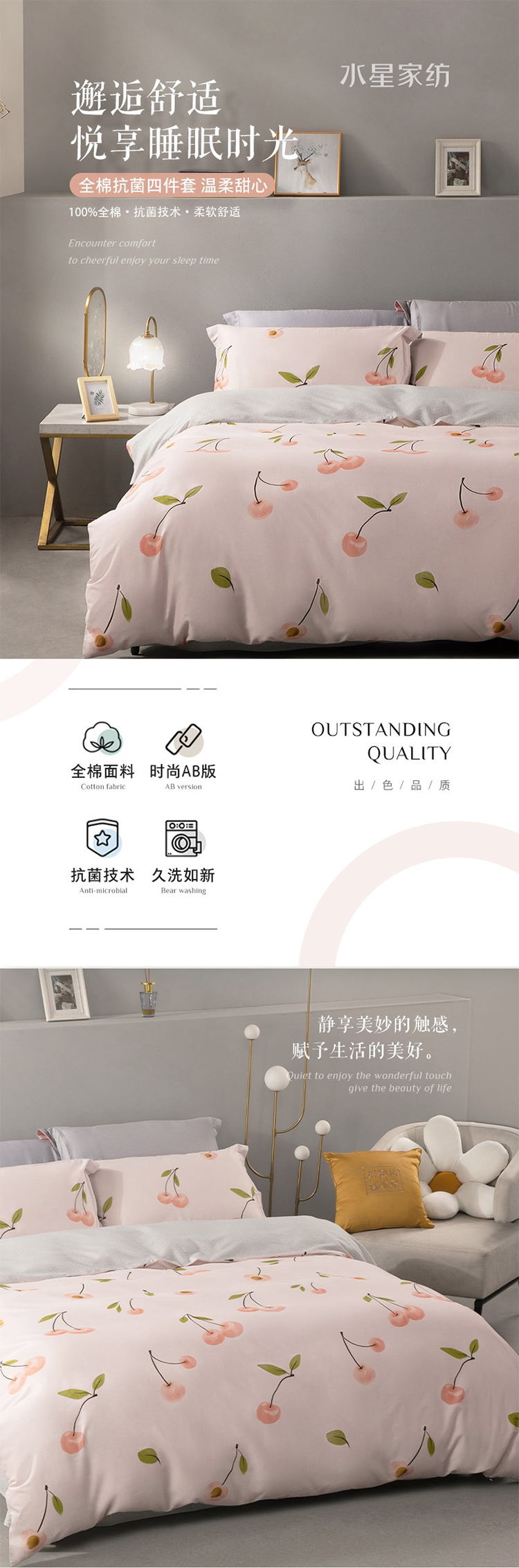 温柔甜心全棉抗菌四件套