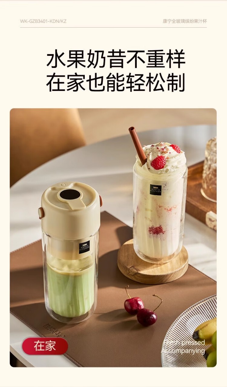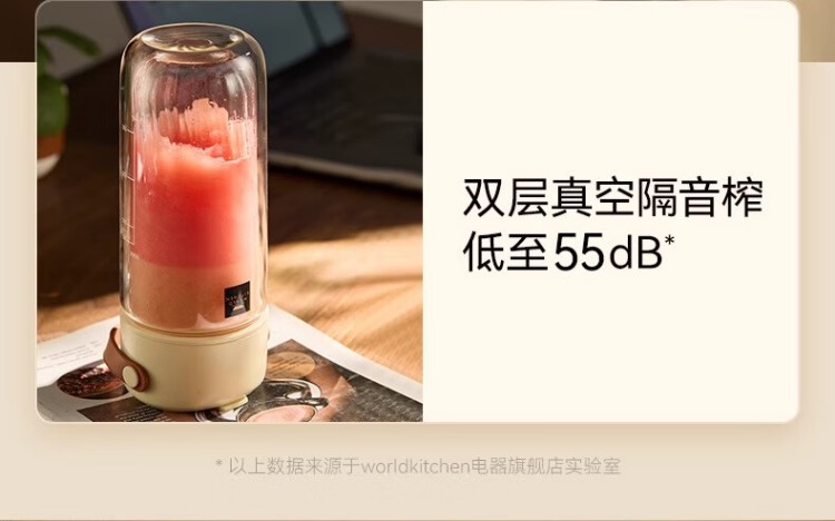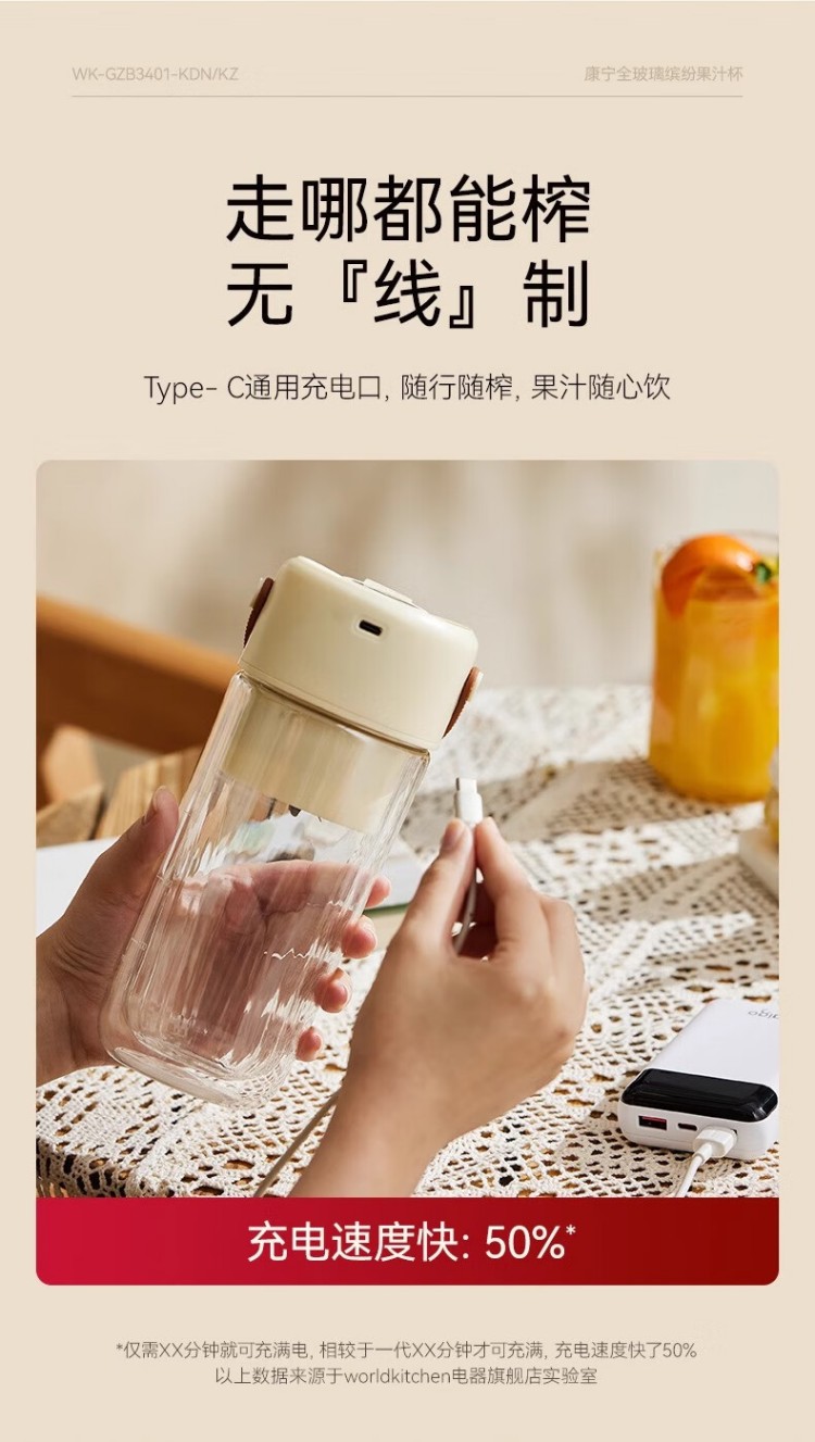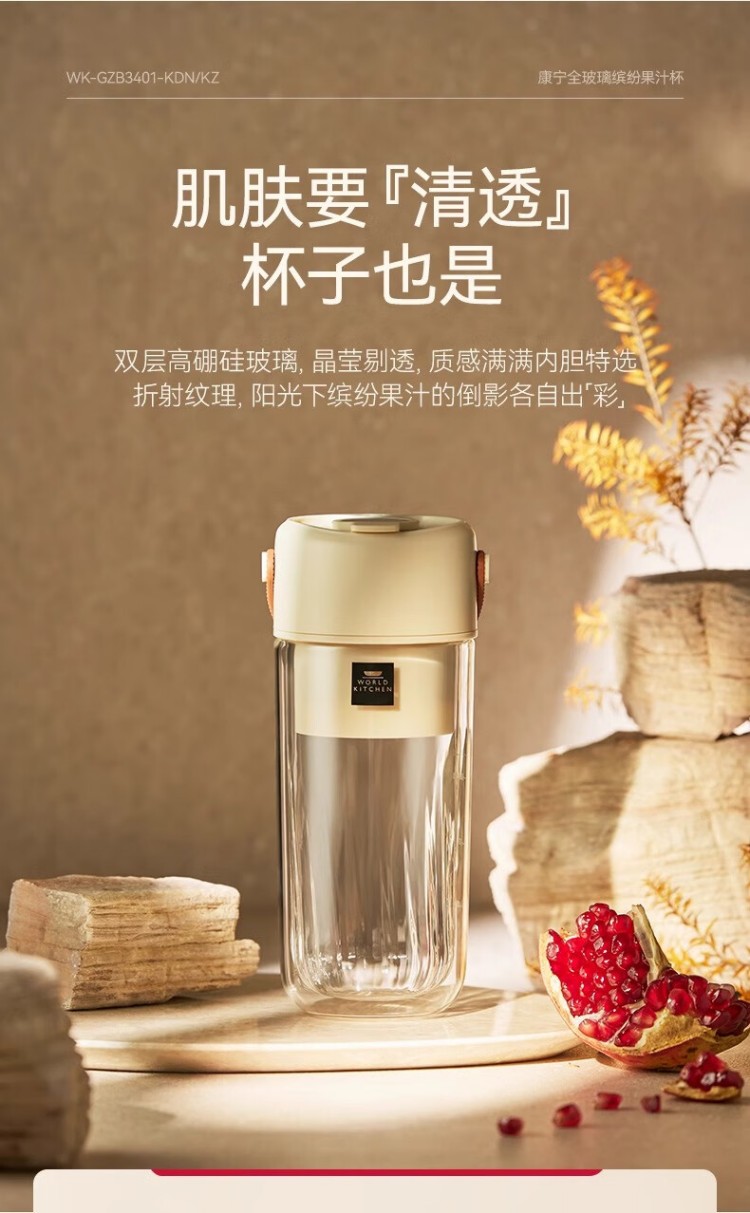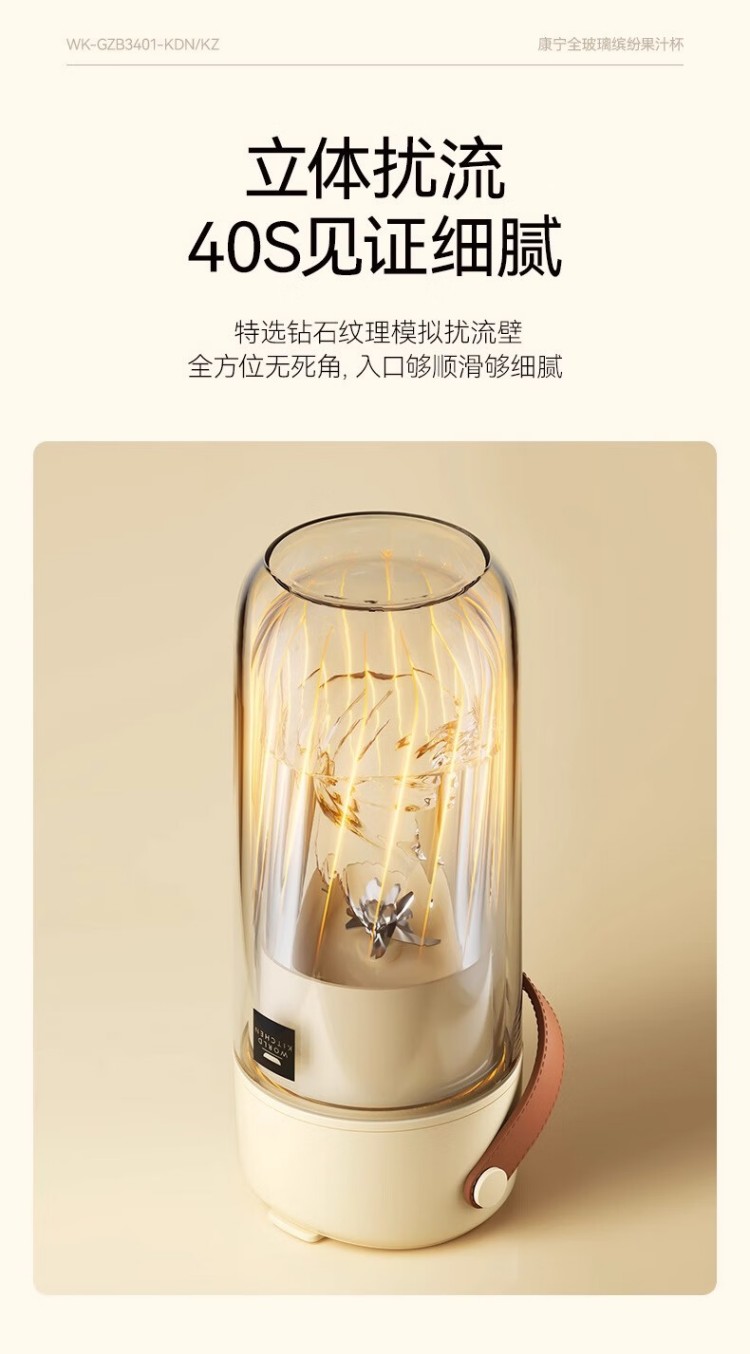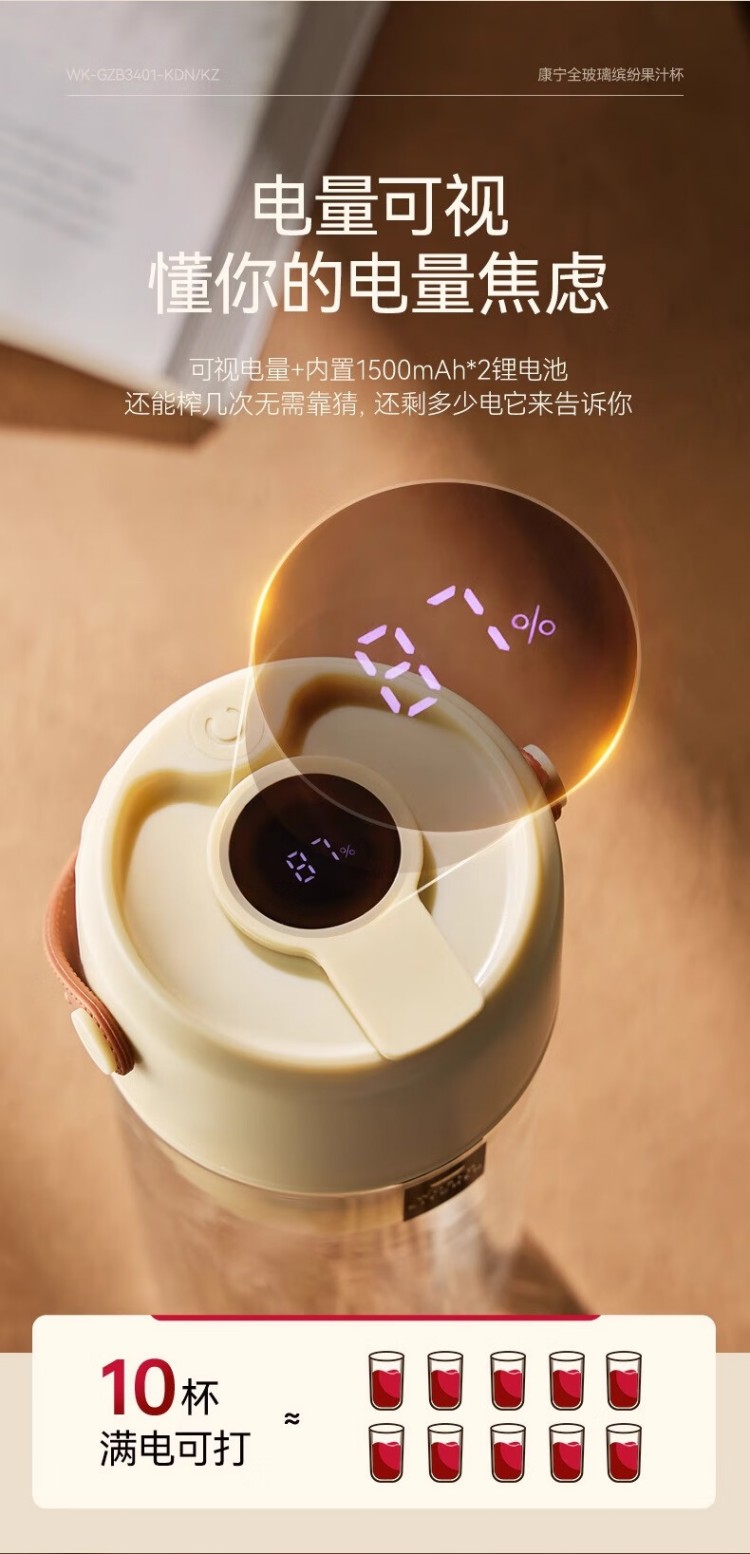年会康宁榨汁机 充电果汁杯双层玻璃杯身12叶304不锈钢刀头小型旅行便携榨汁杯多功能搅拌杯