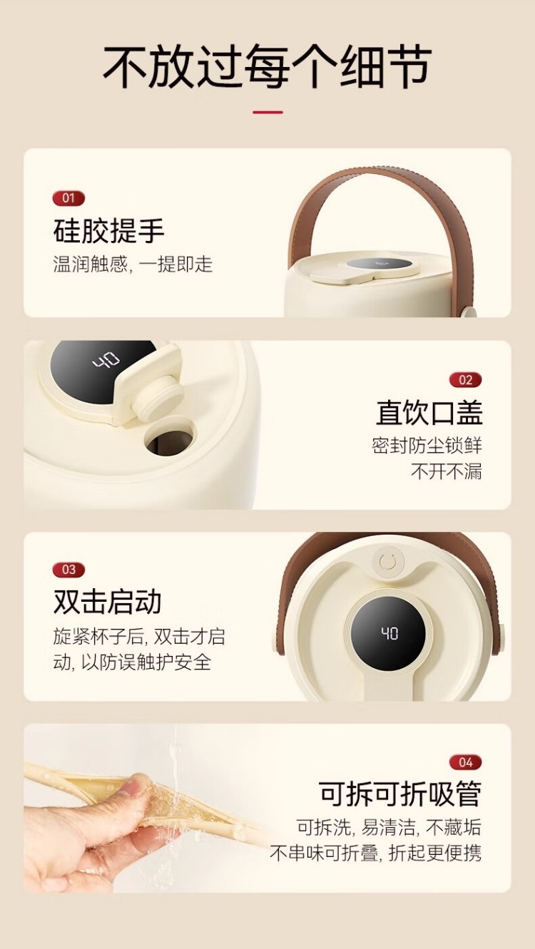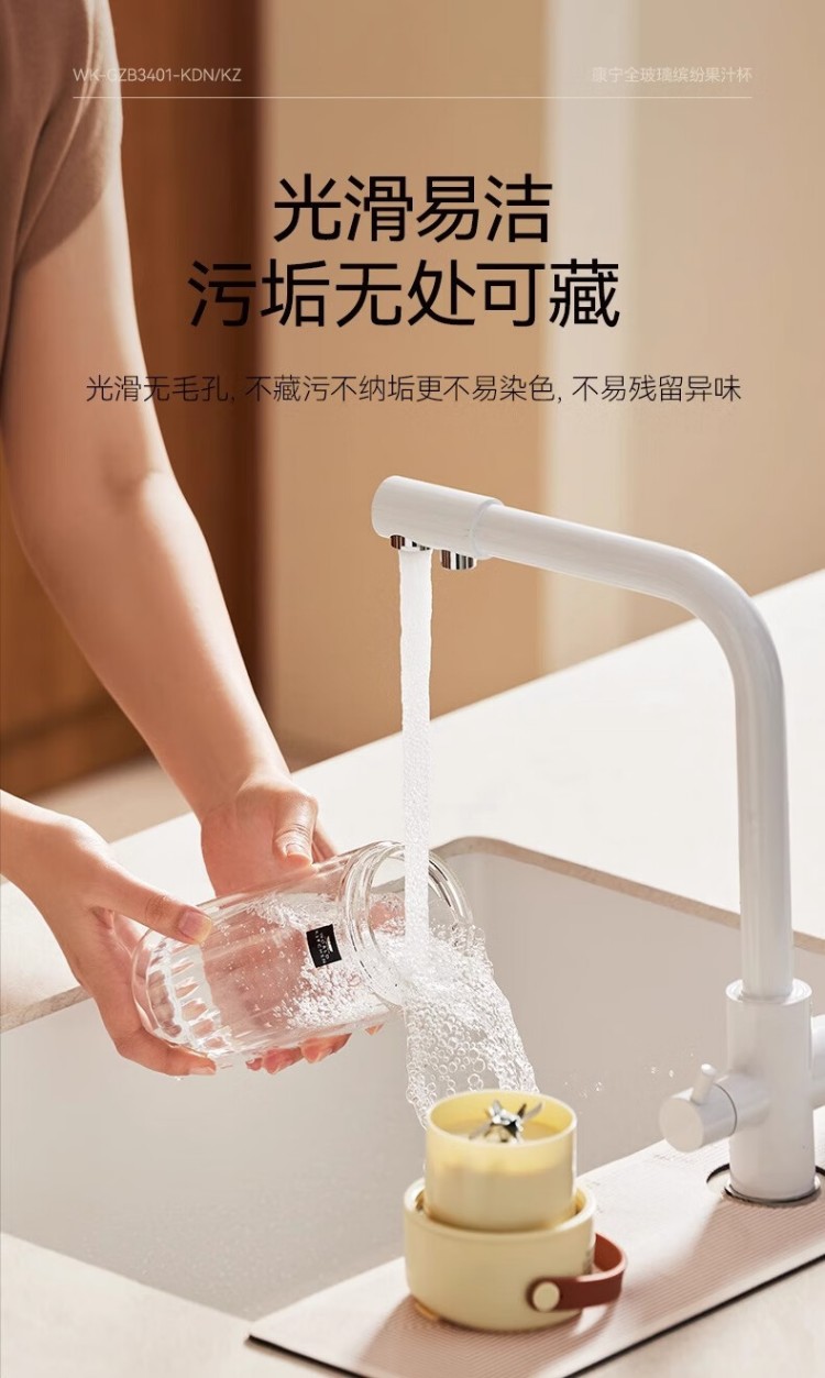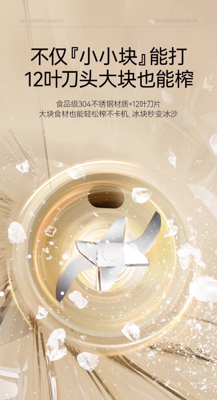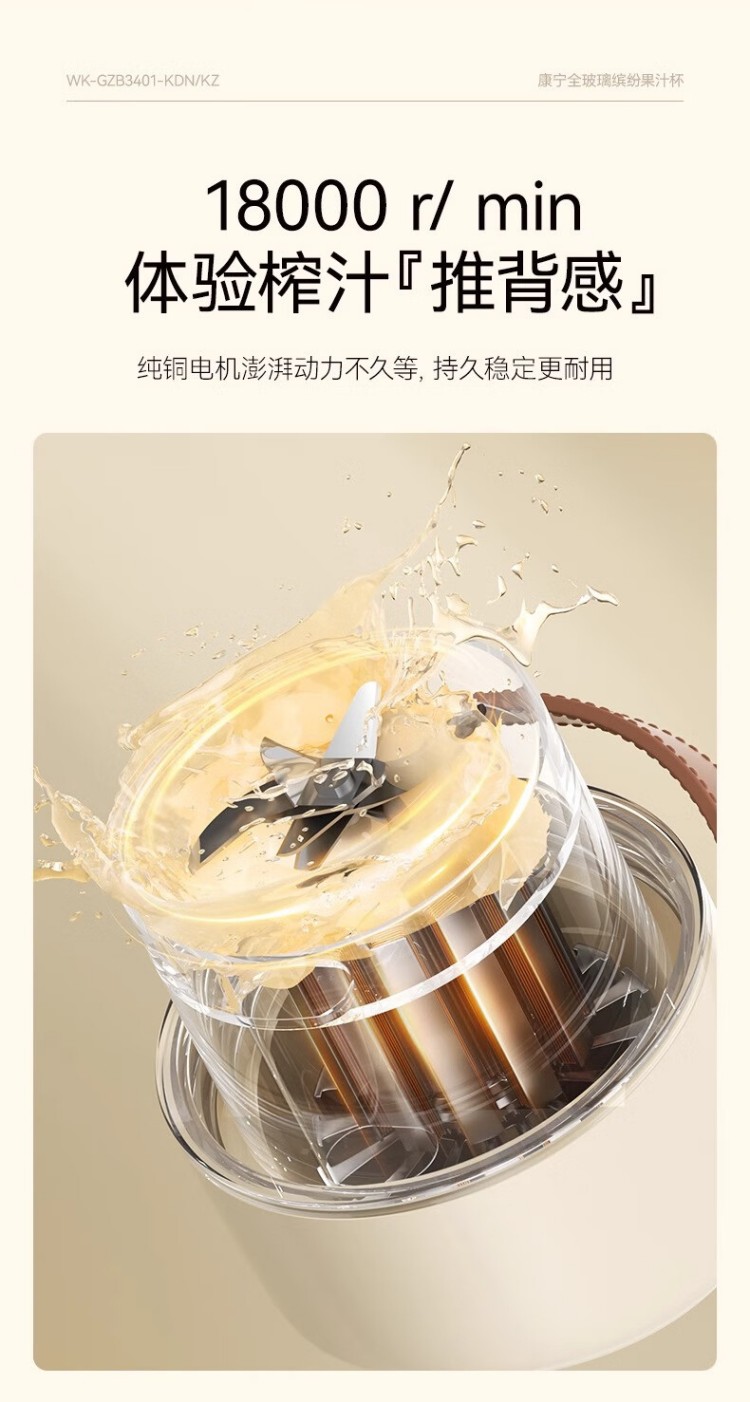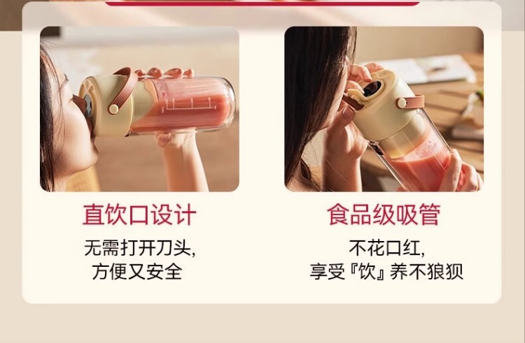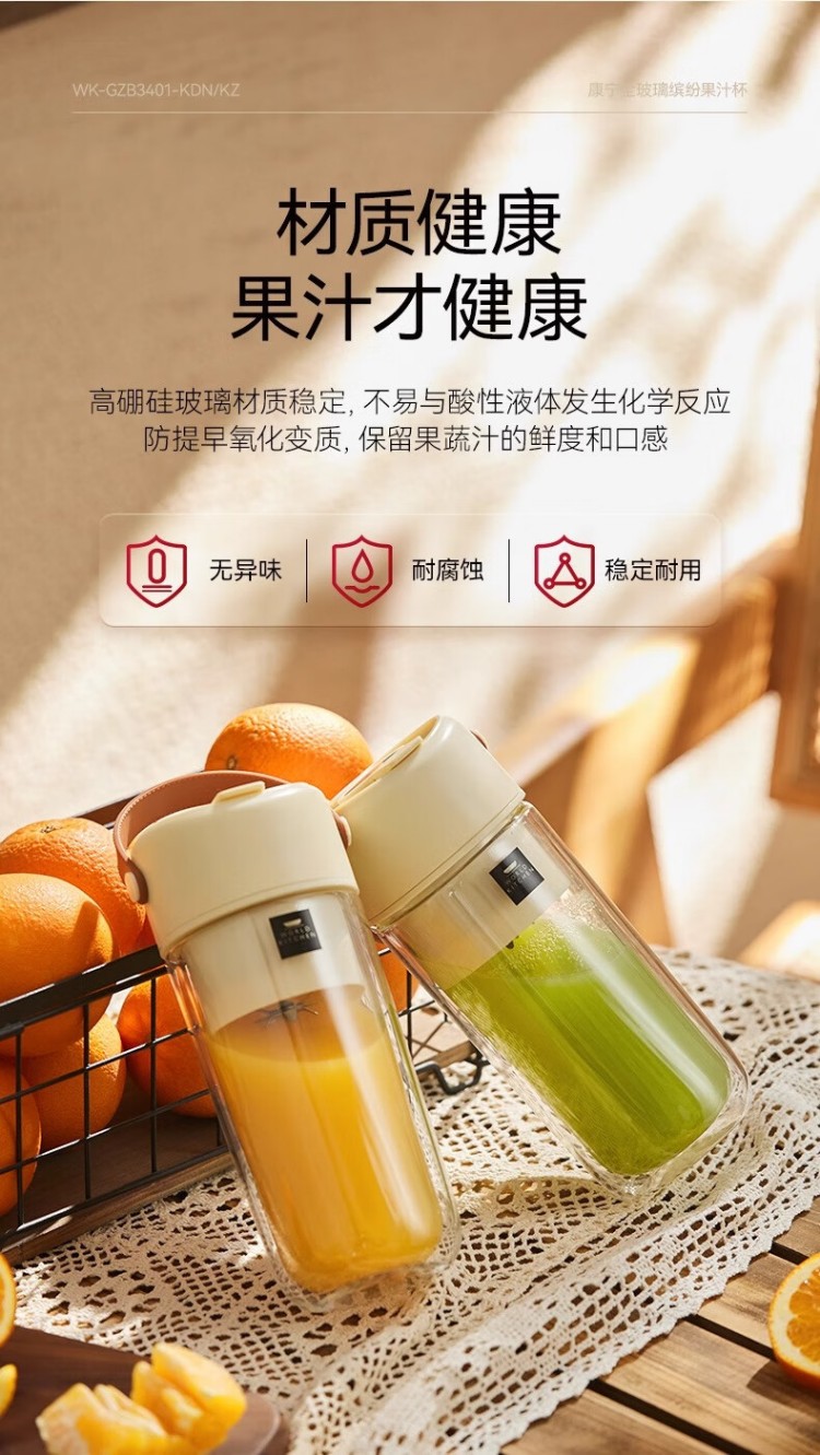 年会康宁榨汁机 充电果汁杯双层玻璃杯身12叶304不锈钢刀头小型旅行便携榨汁杯多功能搅拌杯
