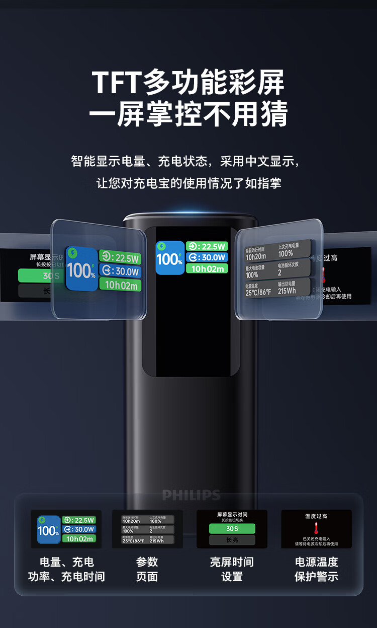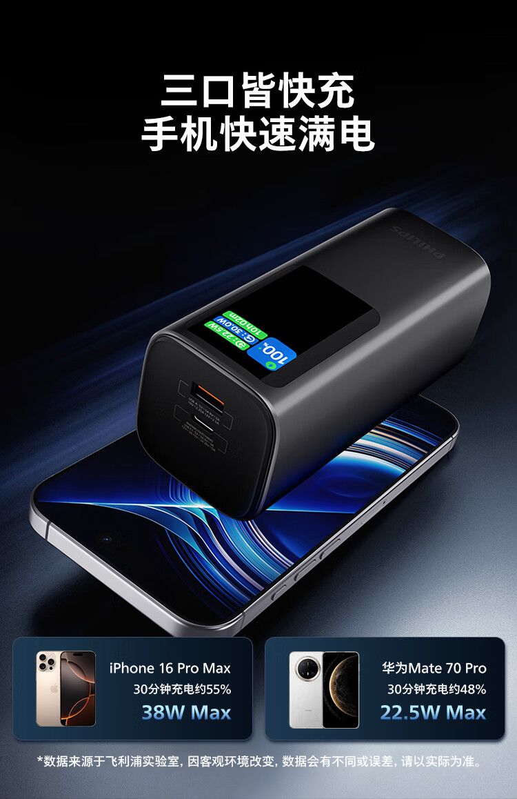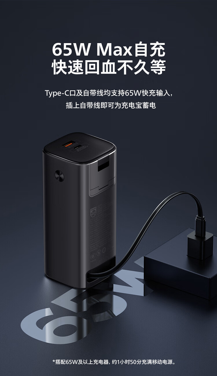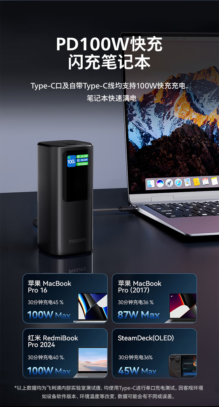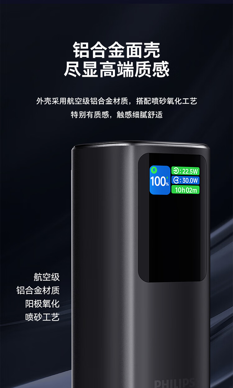 年终飞利浦100W充电宝20000毫安国标3c认证可带上飞机130W超级快充移动电源