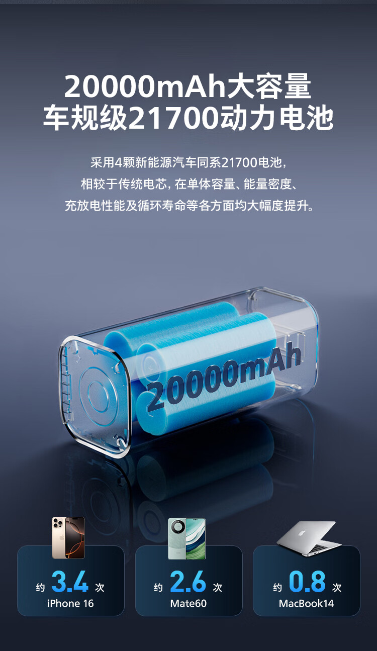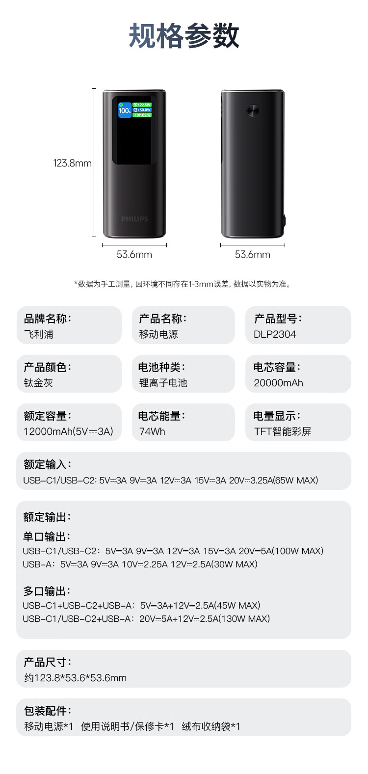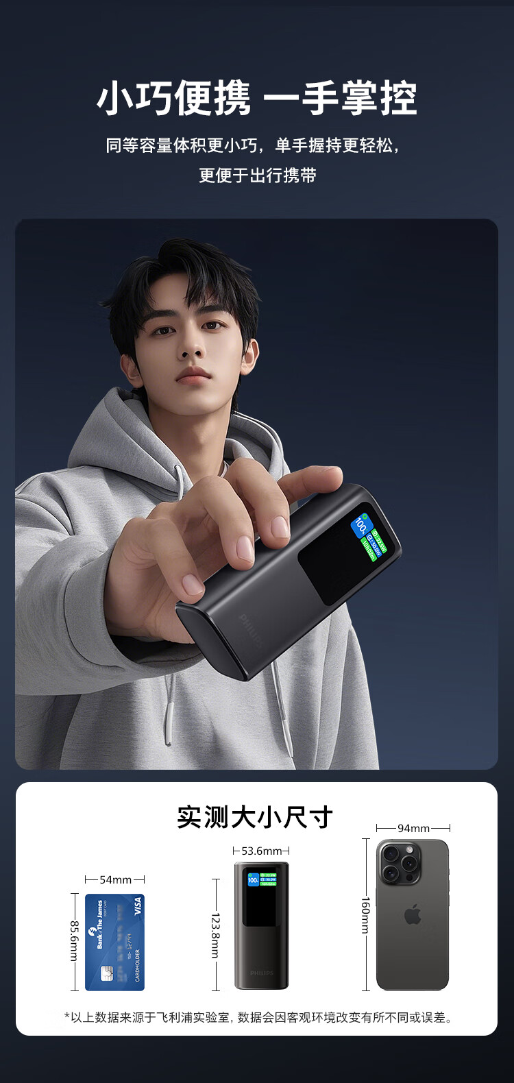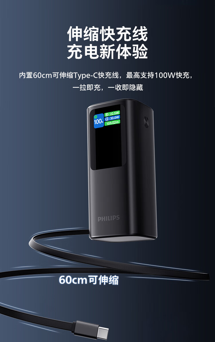 年终飞利浦100W充电宝20000毫安国标3c认证可带上飞机130W超级快充移动电源