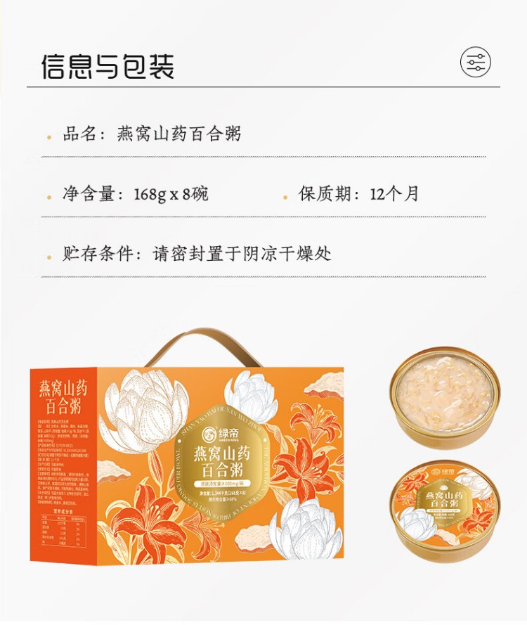 绿帝燕窝山药百合粥1.344kg