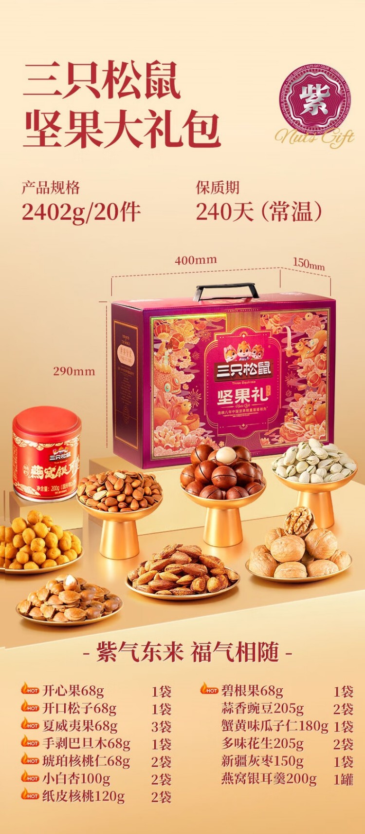 三只松鼠坚果礼盒2402g/盒 零食大礼包开心果松子腰果碧根果 团购送礼