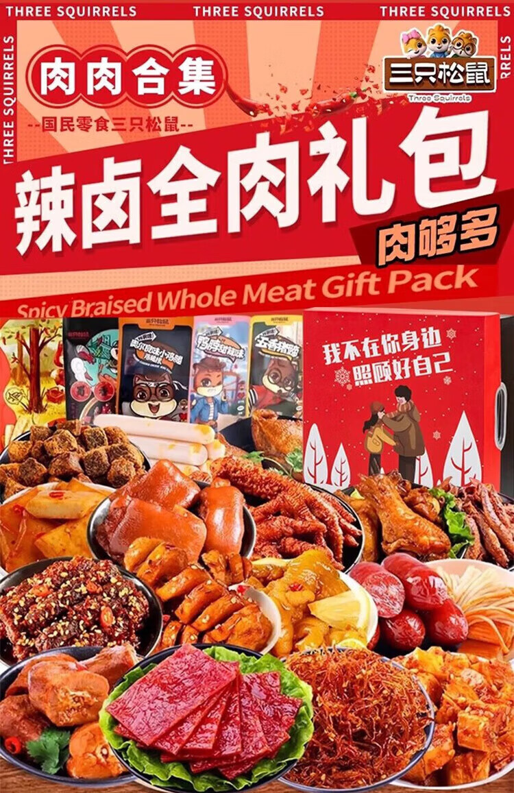三只松鼠零食大礼包成人整箱送女朋友生日礼物肉脯辣条卤味解馋小吃礼盒装 88款豪华零食礼包【全力以“富”礼盒】