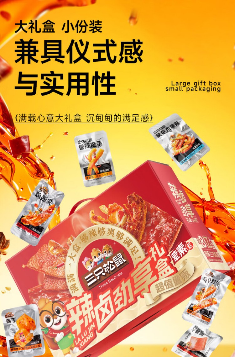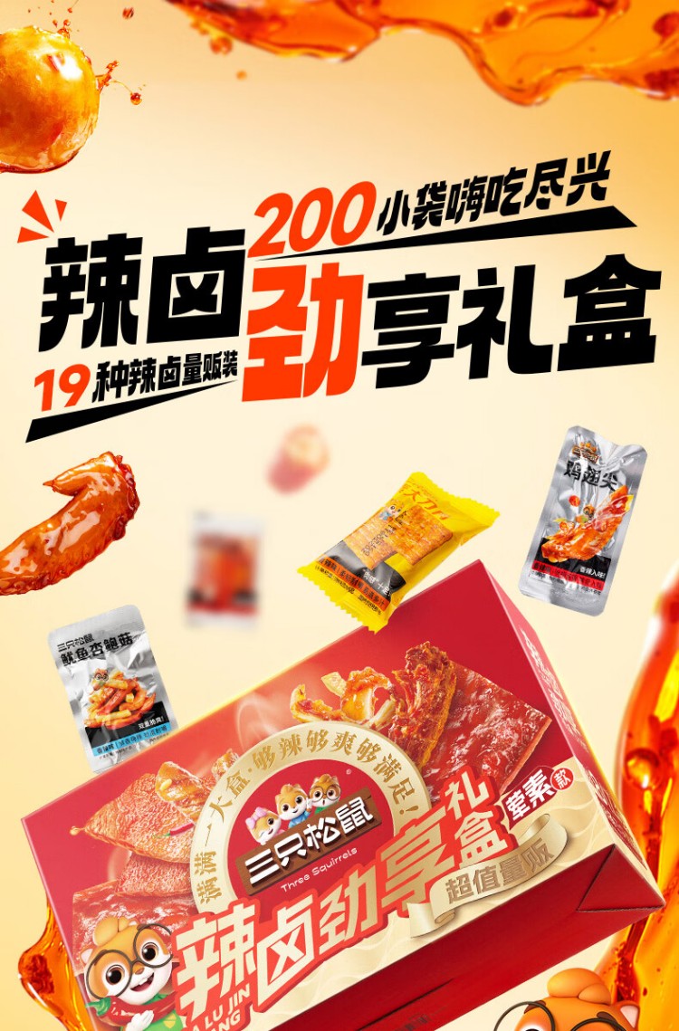 三只松鼠辣卤礼包200包/1545g 零食大礼包团购解馋豆干魔芋多肉团购送礼