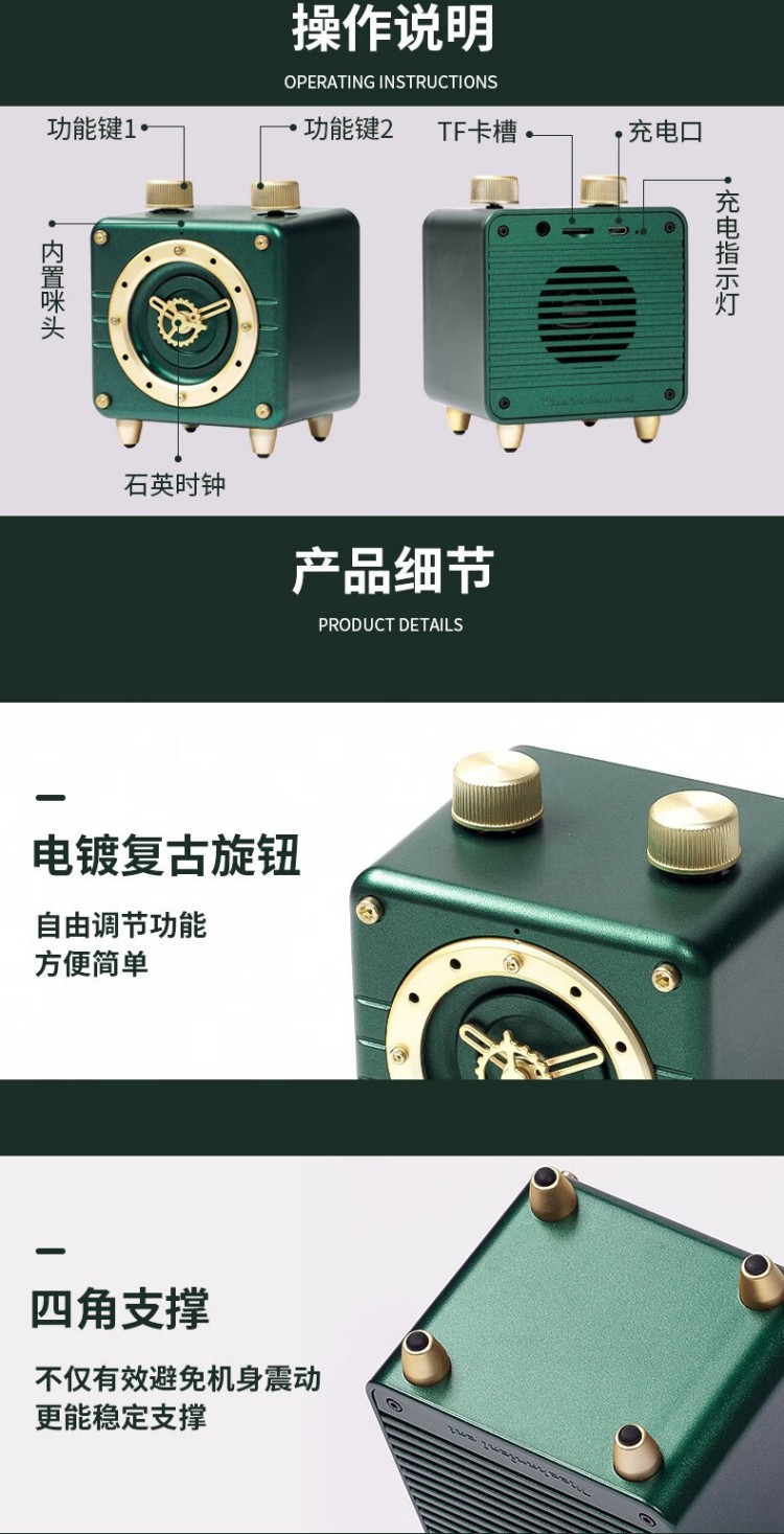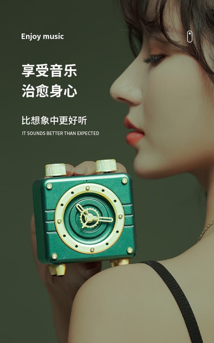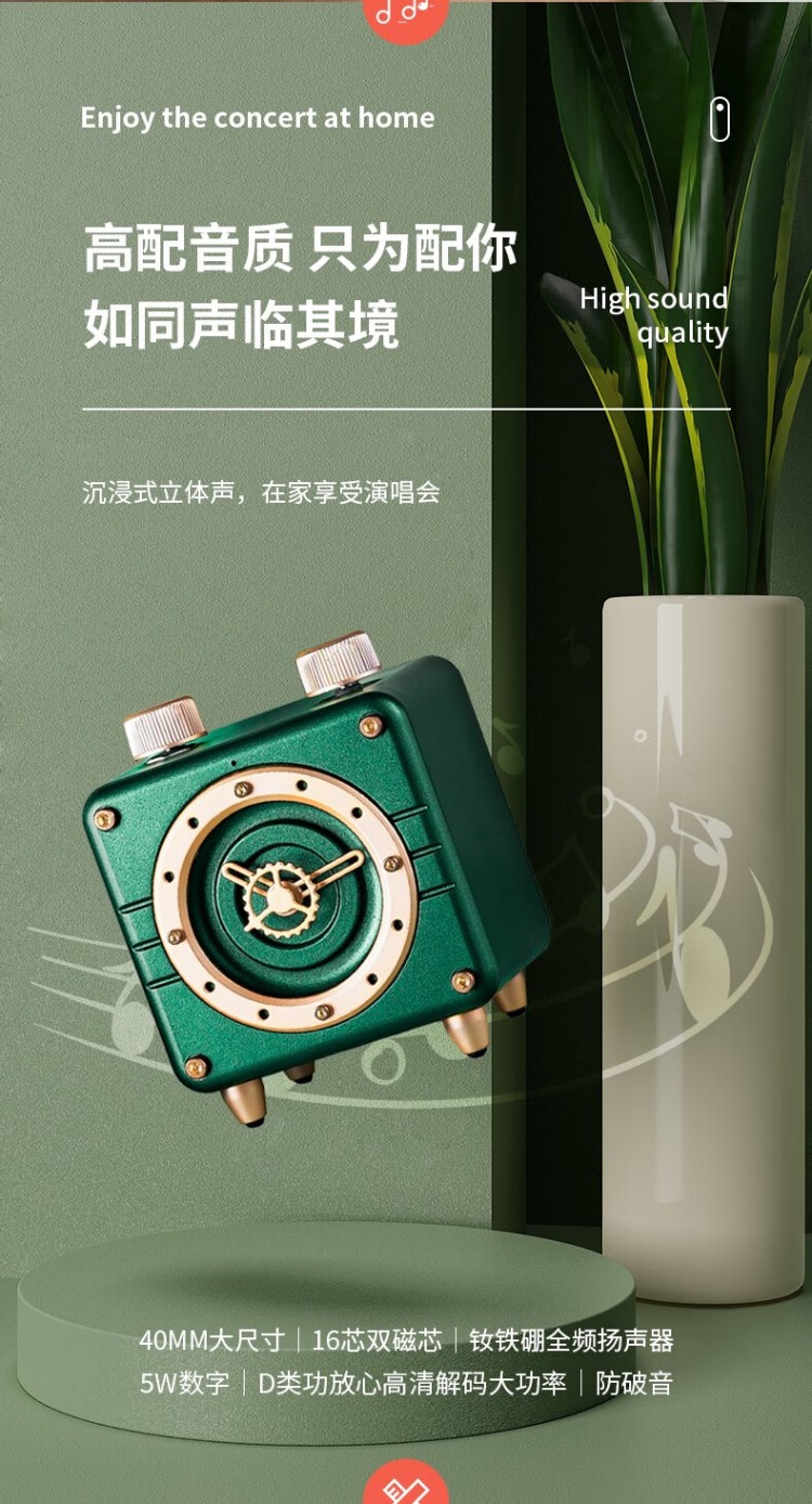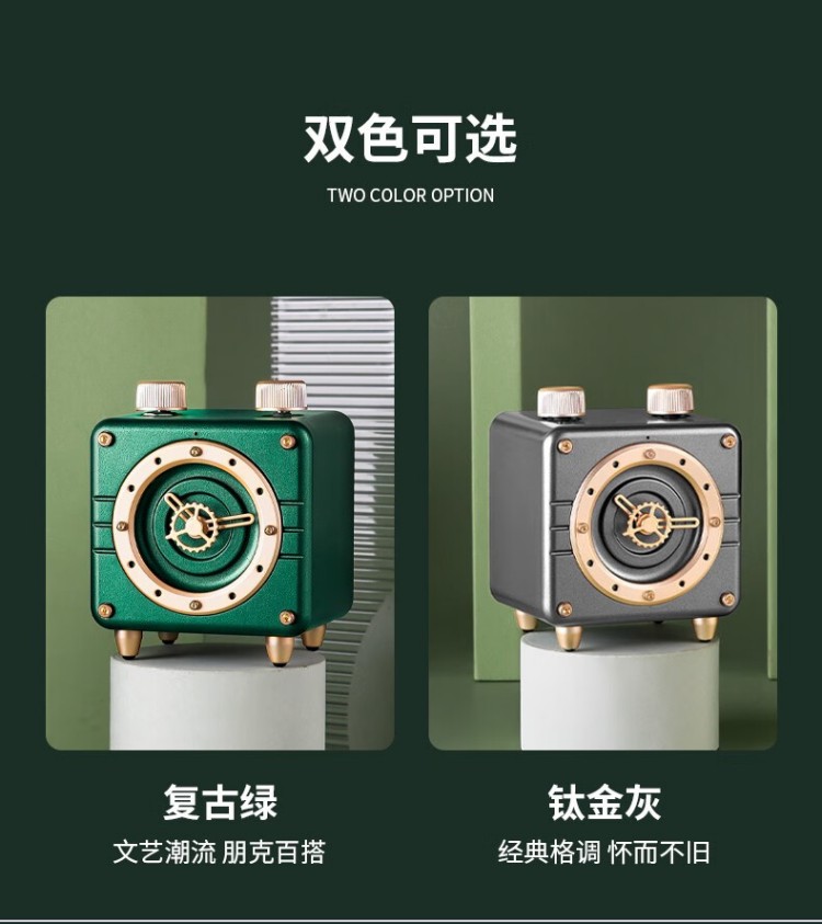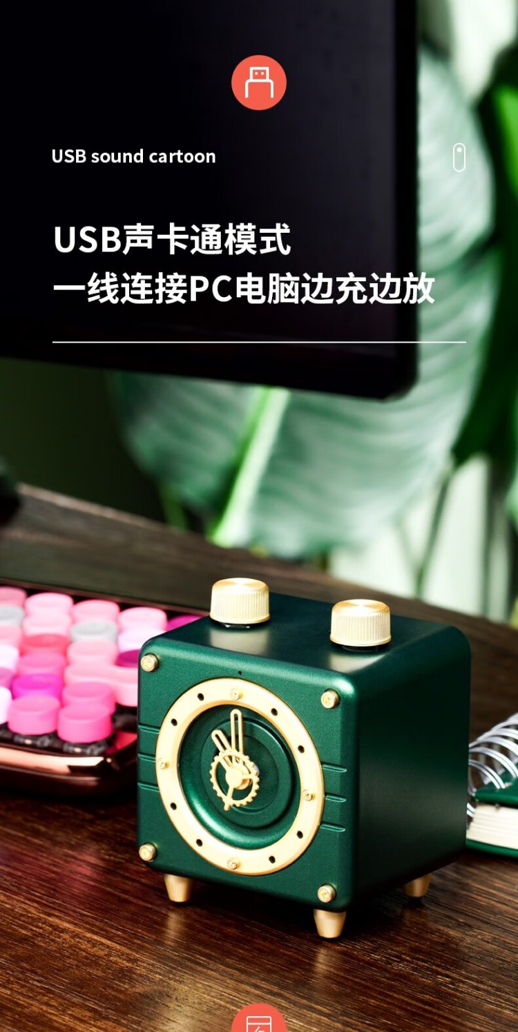年终物酷(WUKU) 蓝牙音箱便捷迷你小音响电脑低音炮收款插卡播放器复古时钟时尚摆件新年潮流礼品礼物