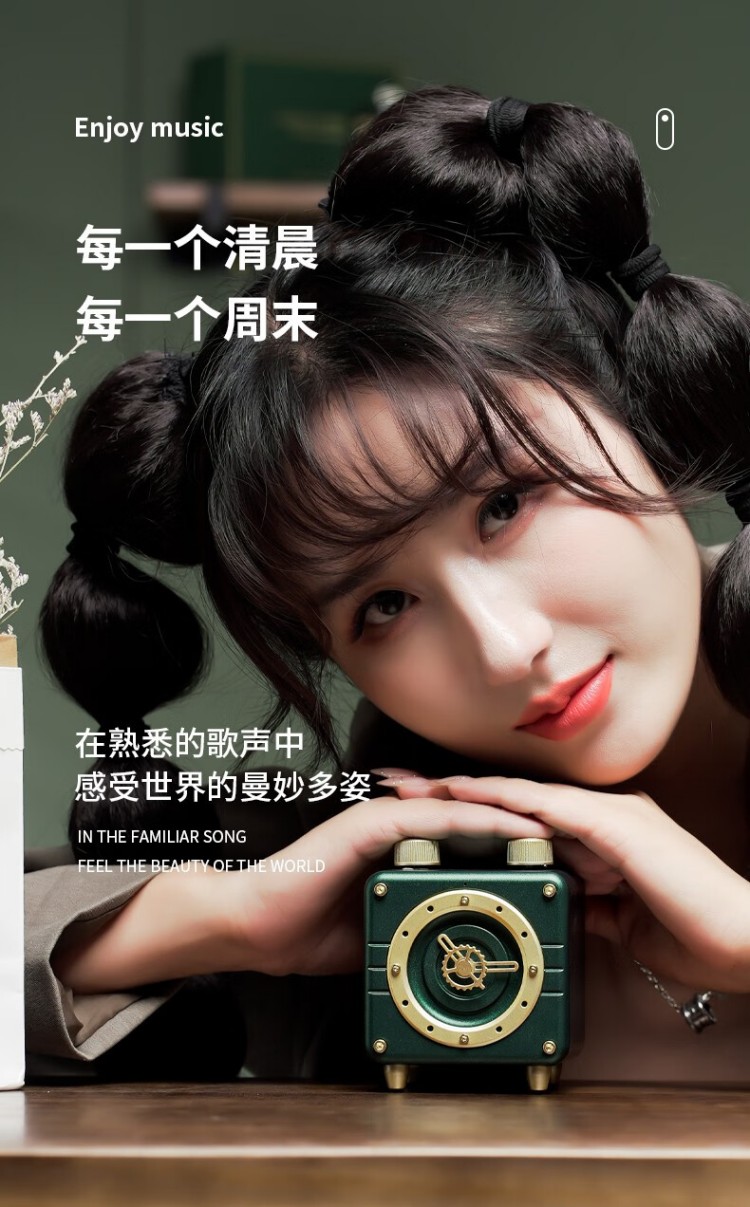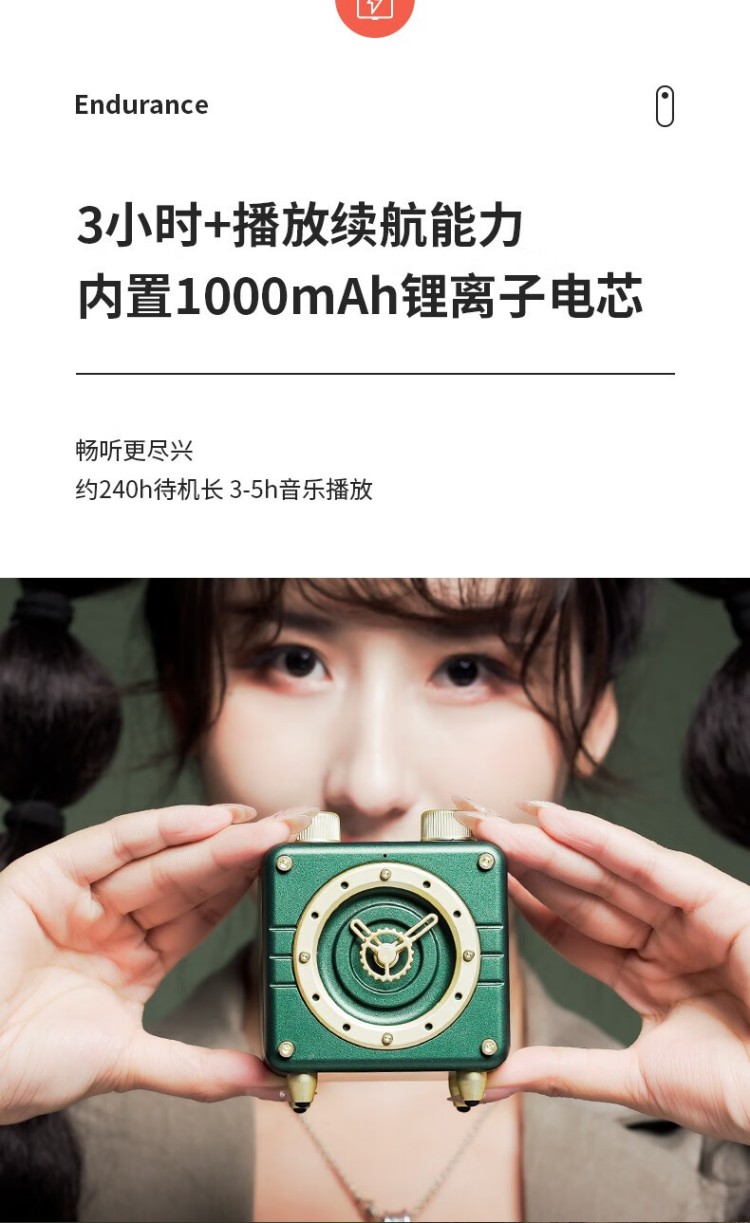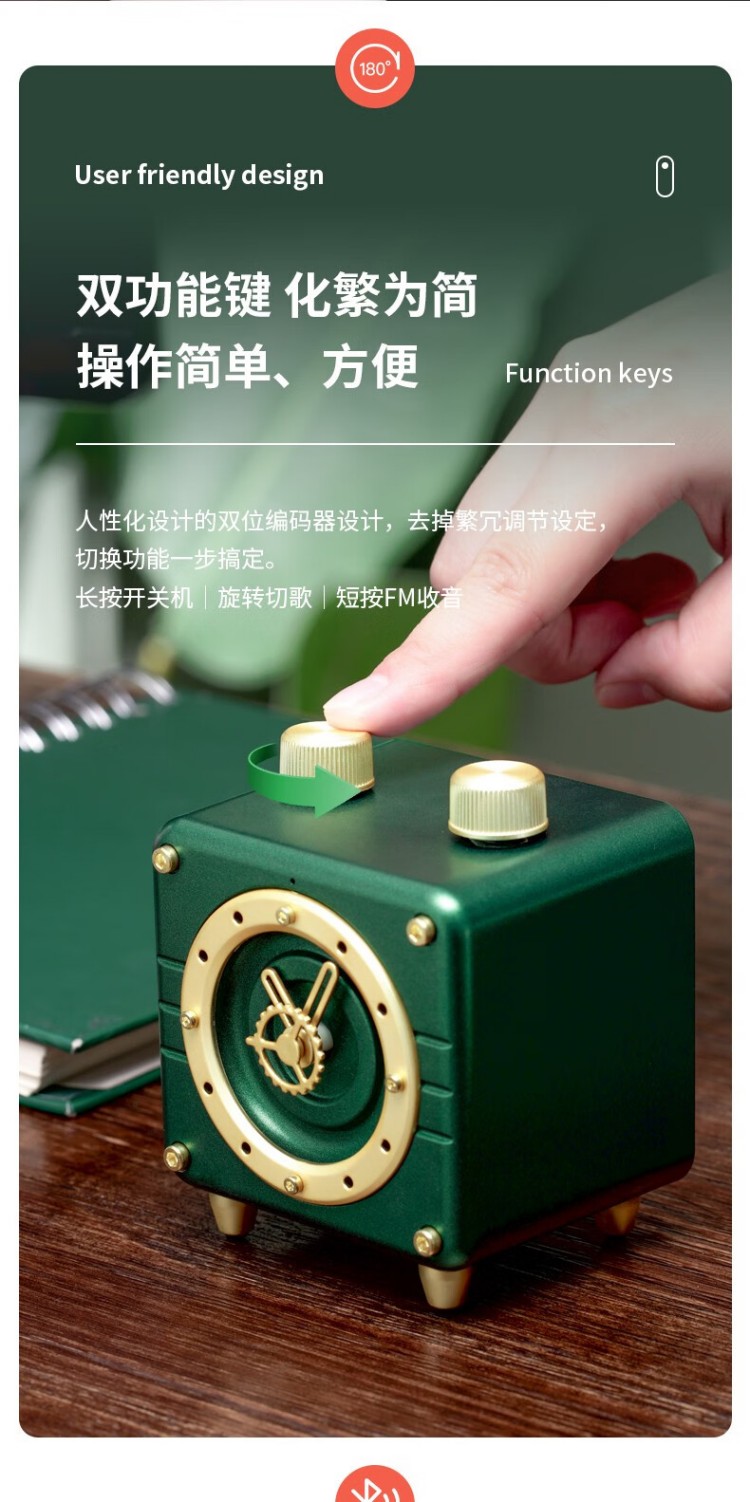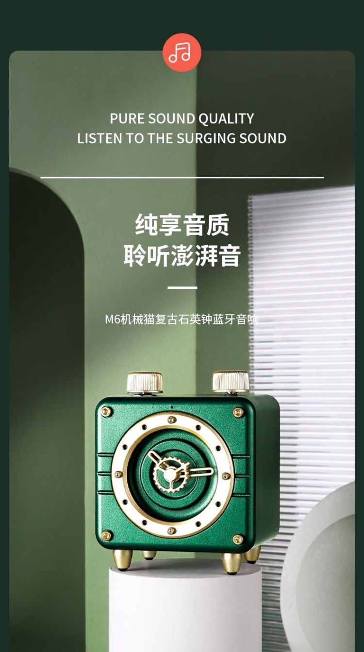 年终物酷(WUKU) 蓝牙音箱便捷迷你小音响电脑低音炮收款插卡播放器复古时钟时尚摆件新年潮流礼品礼物