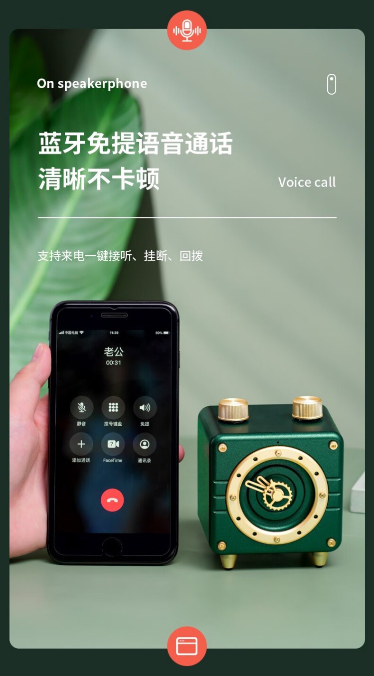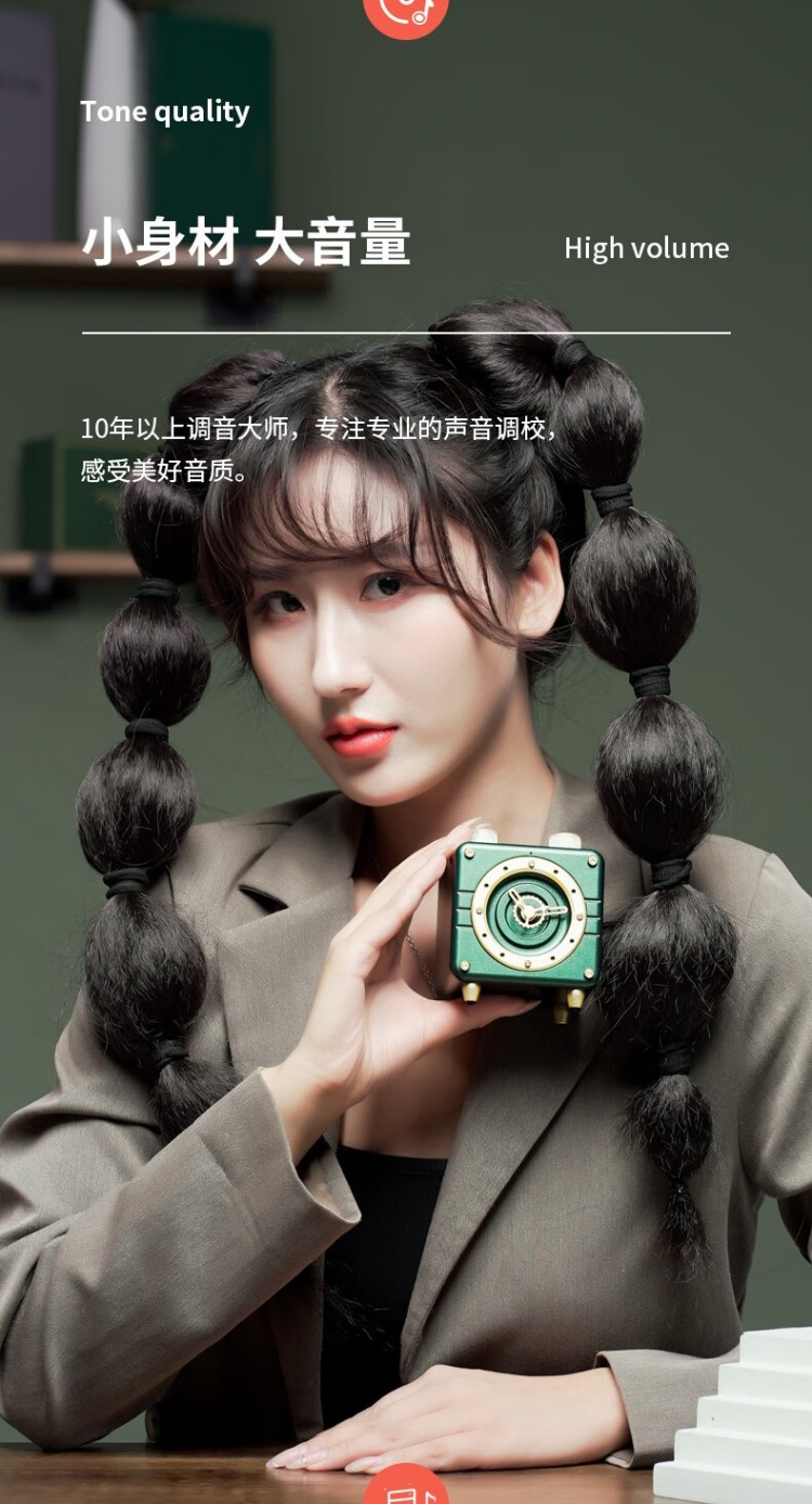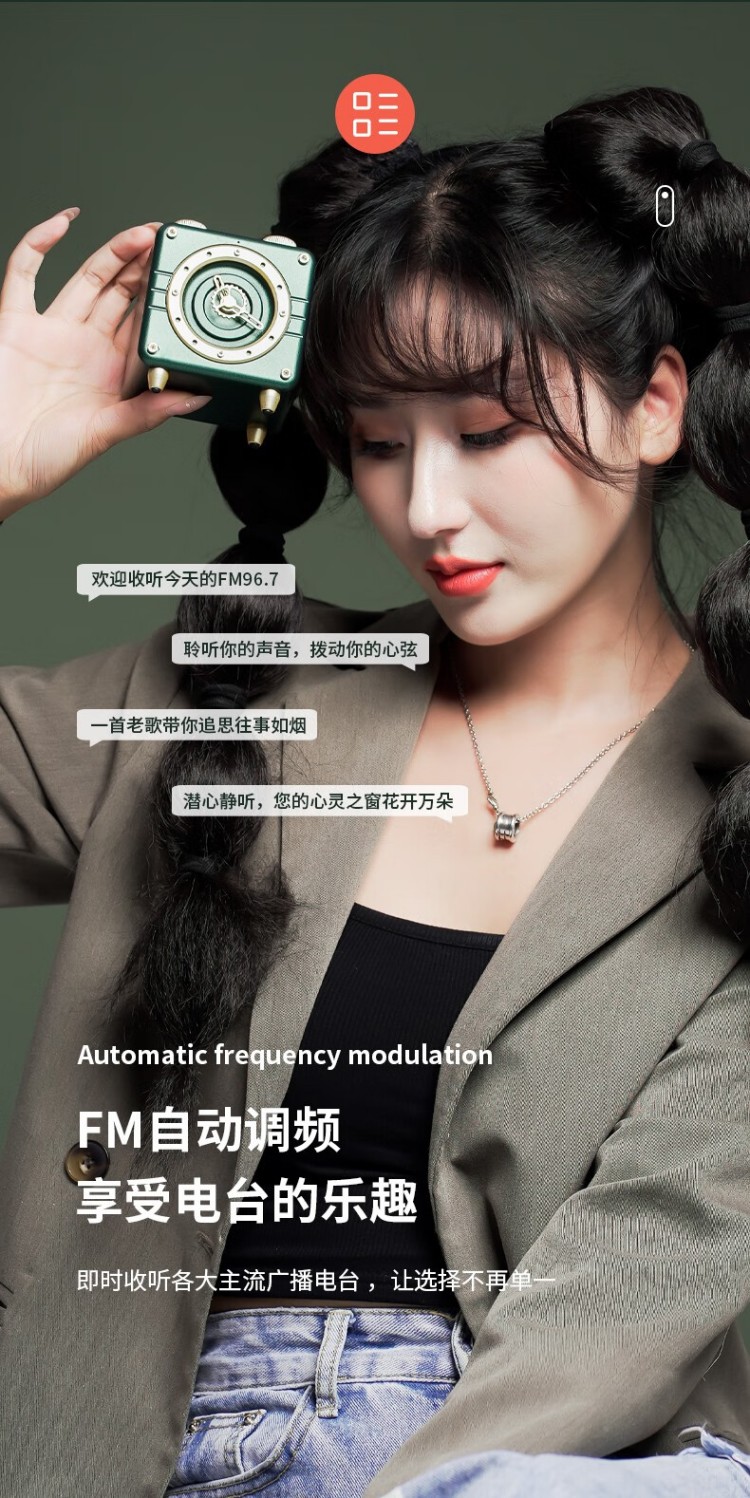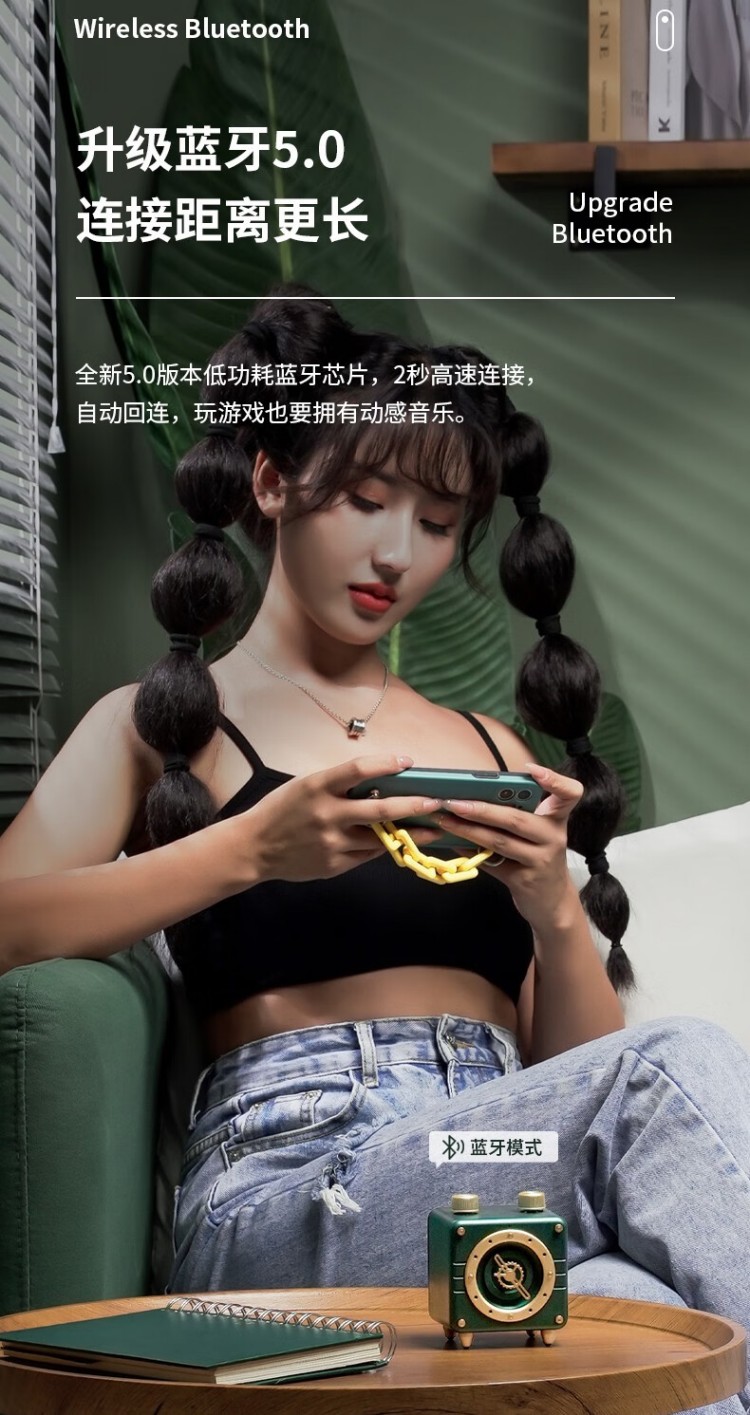 年终物酷(WUKU) 蓝牙音箱便捷迷你小音响电脑低音炮收款插卡播放器复古时钟时尚摆件新年潮流礼品礼物