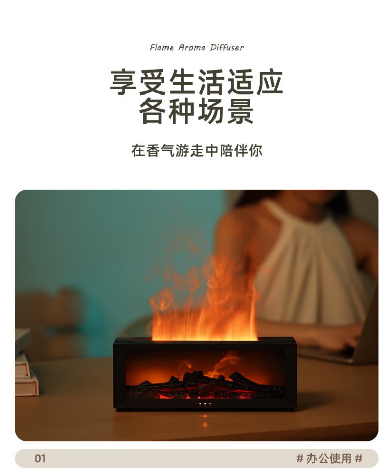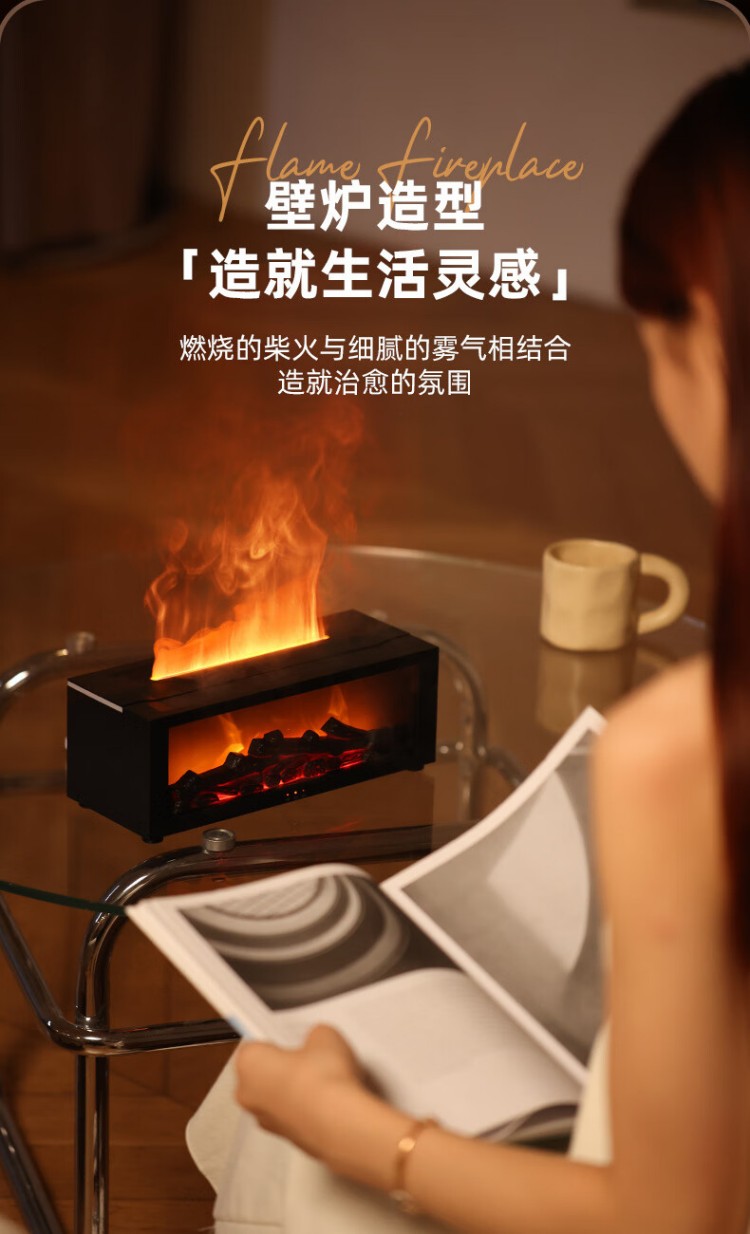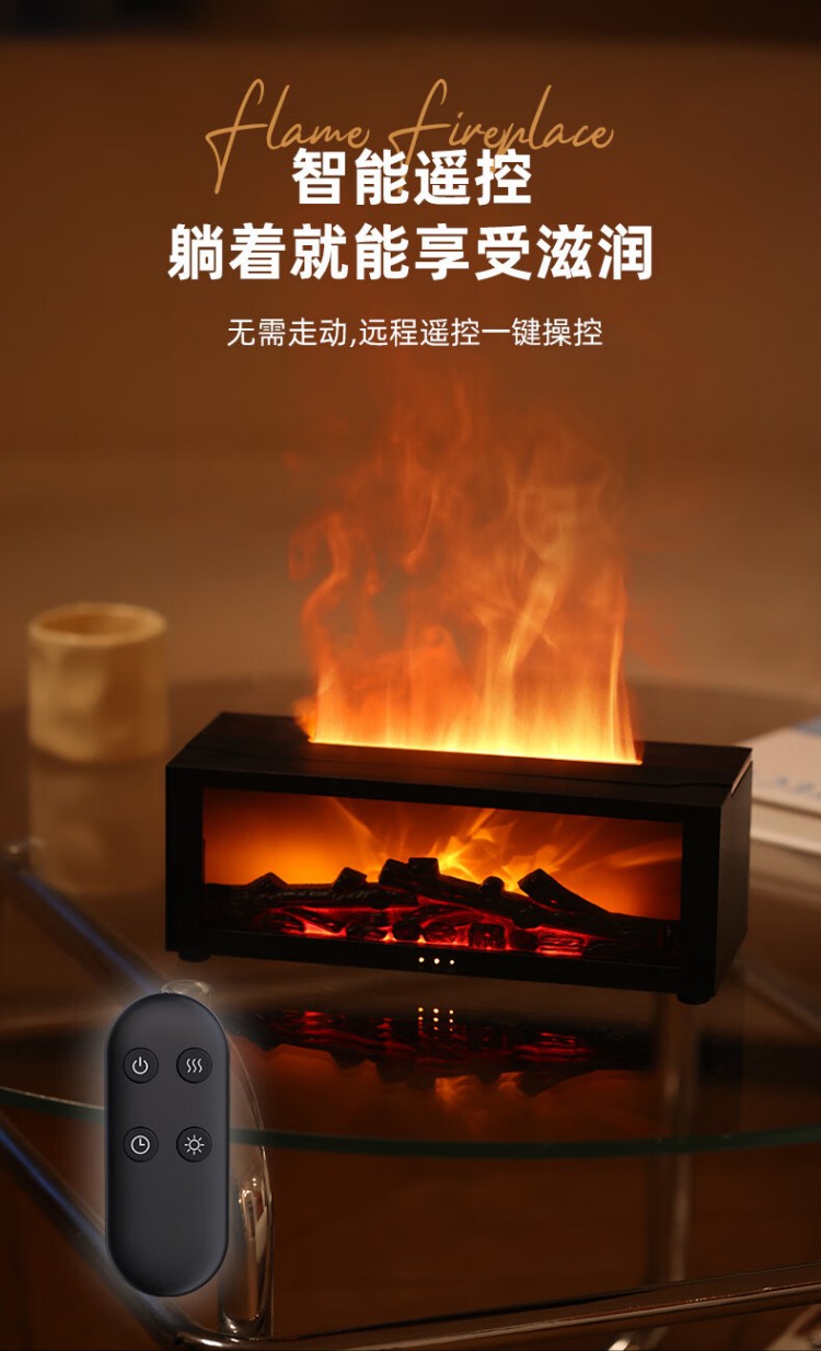 年终大猫日记壁炉火焰加湿器香薰机一体家用卧室办公室桌面摆件小型空气加湿氛围灯乔迁搬家礼物男生生日礼物