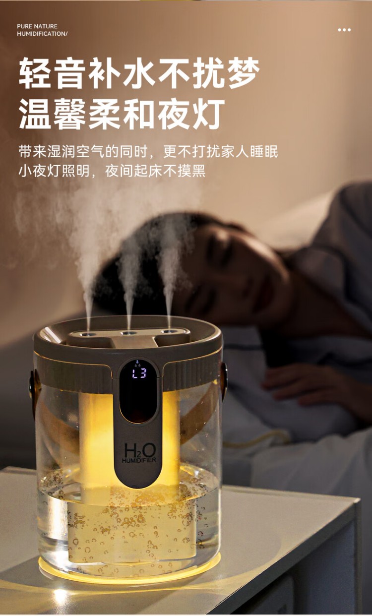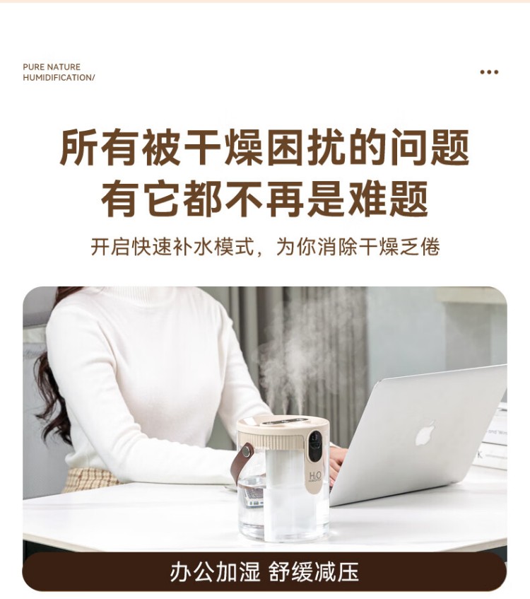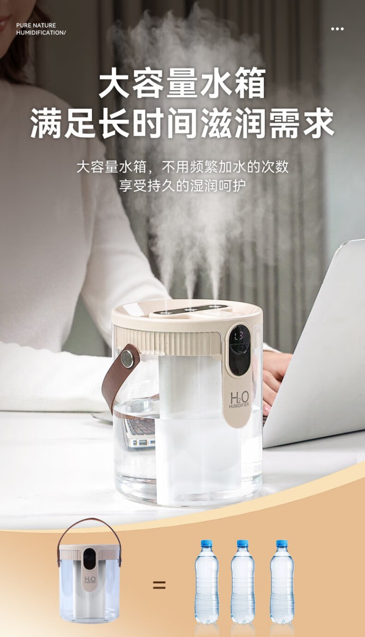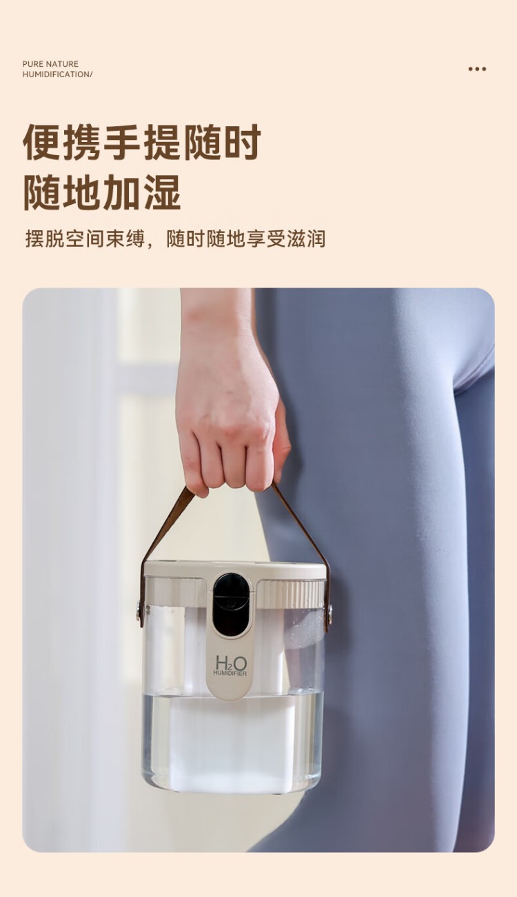 年会好意诗【静音除菌】空气加湿器家用卧室床头母婴空调房超大雾量办公室桌面净化便携小型无线USB 充电款