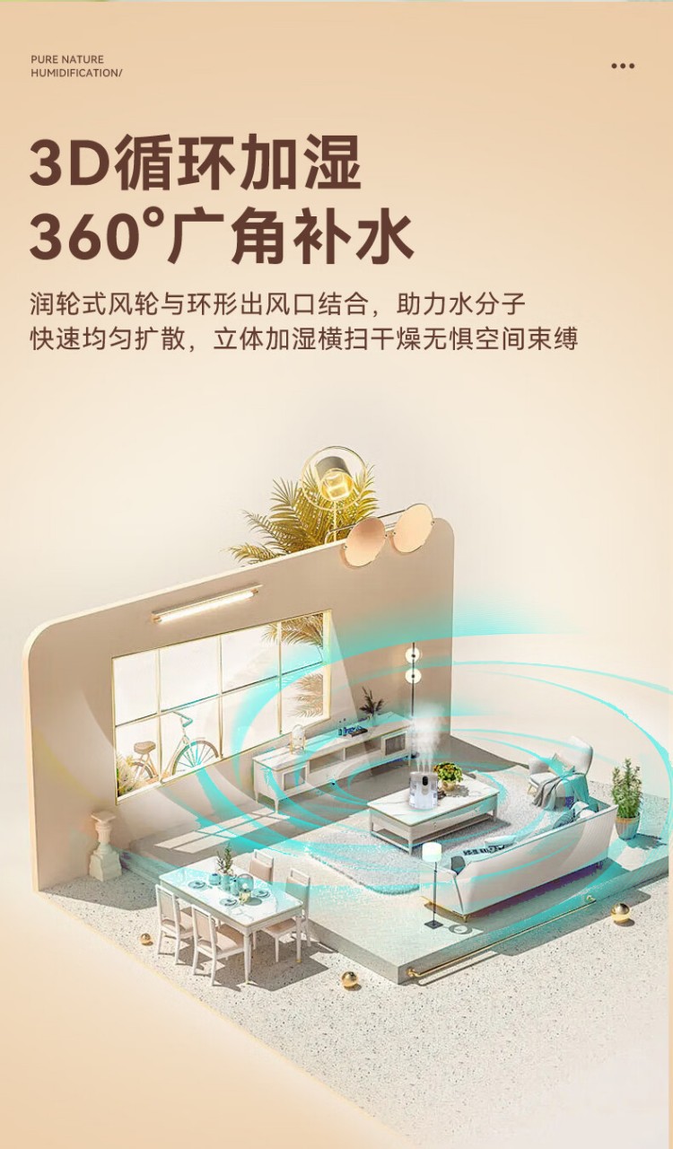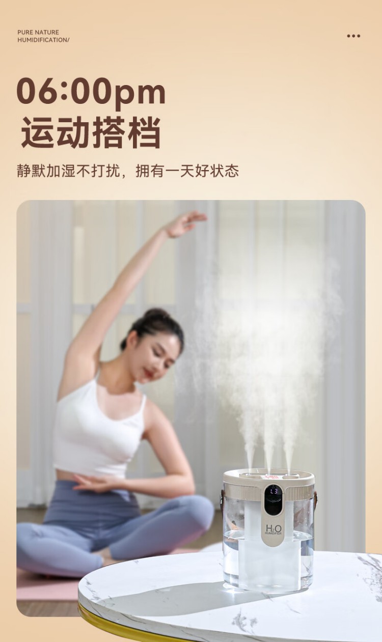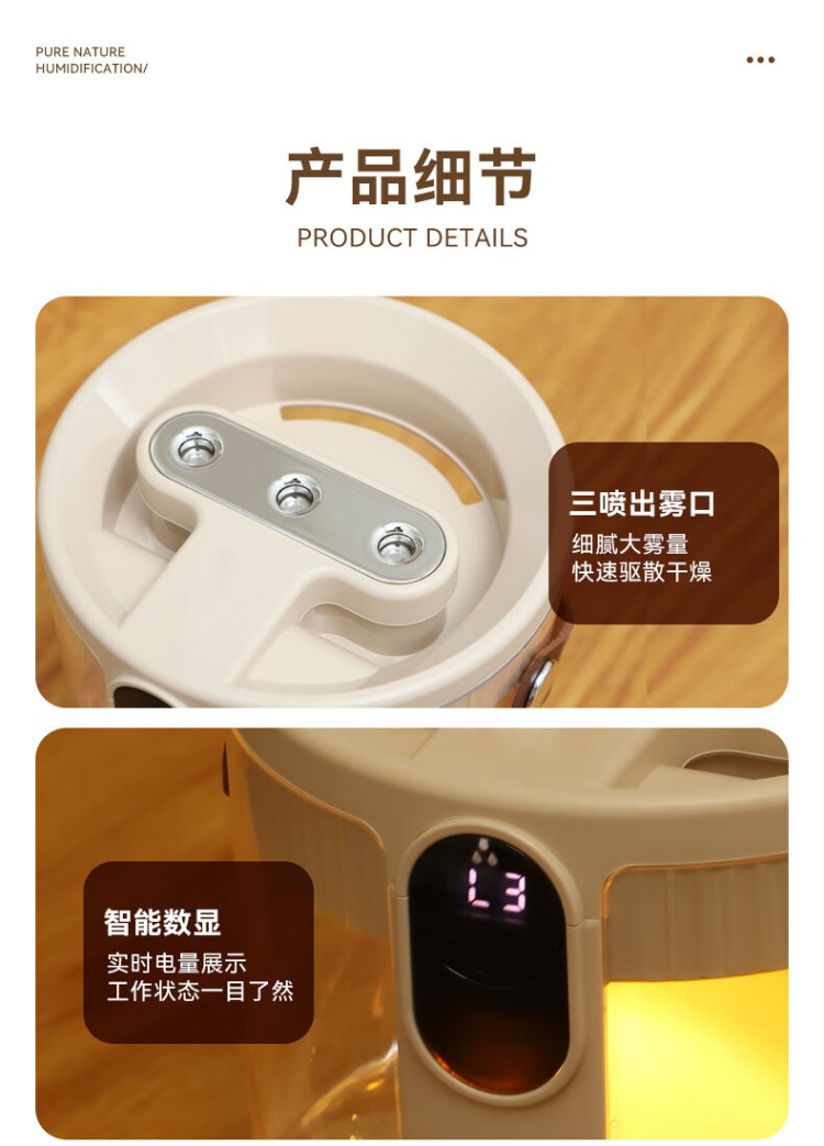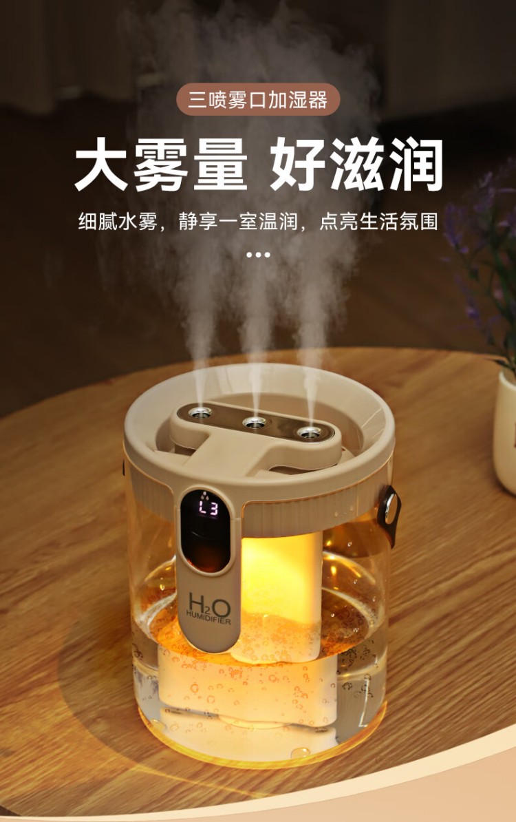 年会好意诗【静音除菌】空气加湿器家用卧室床头母婴空调房超大雾量办公室桌面净化便携小型无线USB 充电款