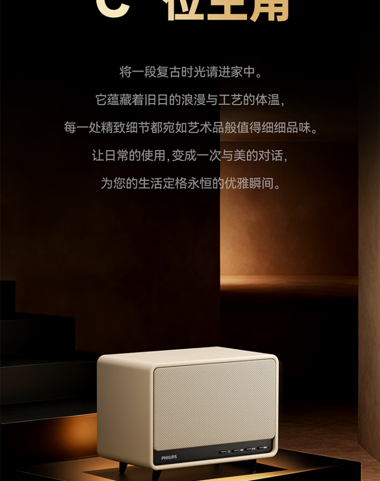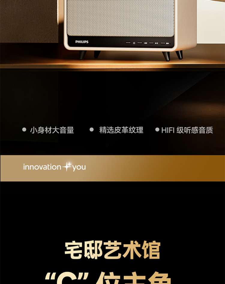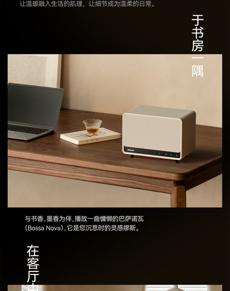 飞利浦(PHILIPS)TAS6500蓝牙音响复古桌面音箱大音量家用客厅环绕电脑音响男女儿童生日礼物