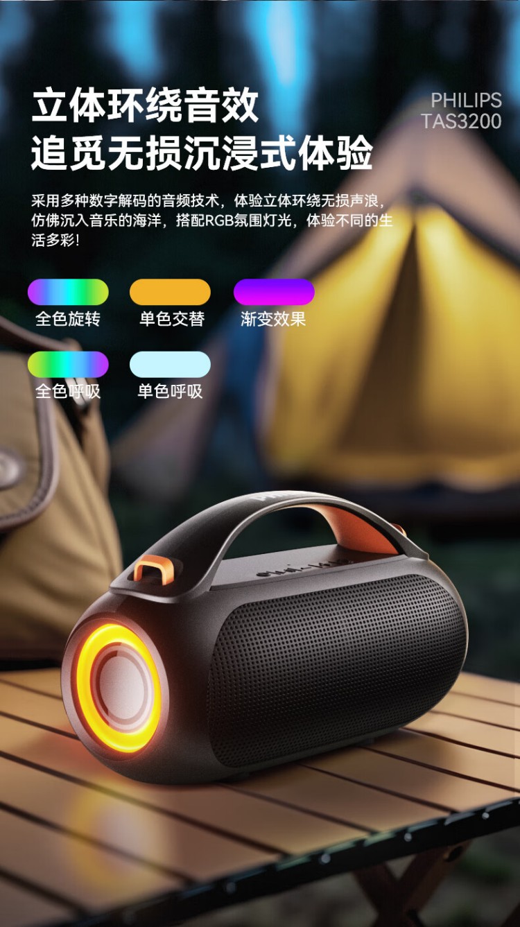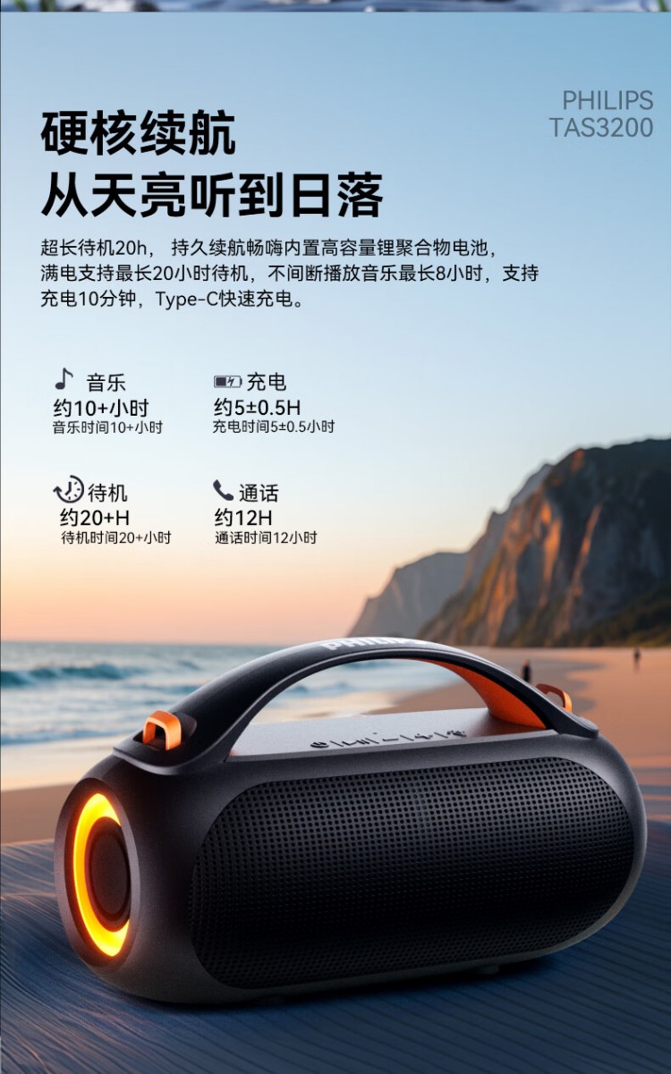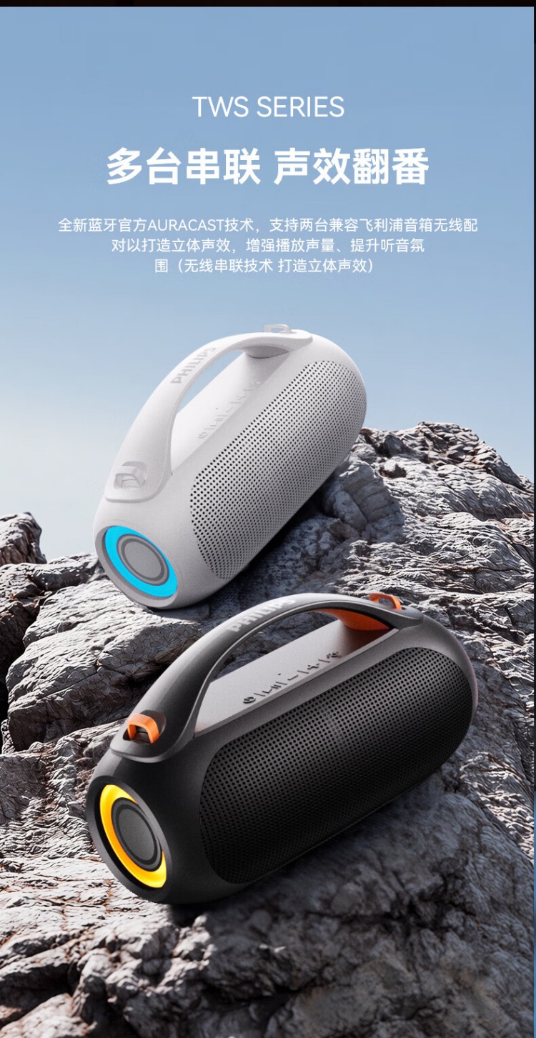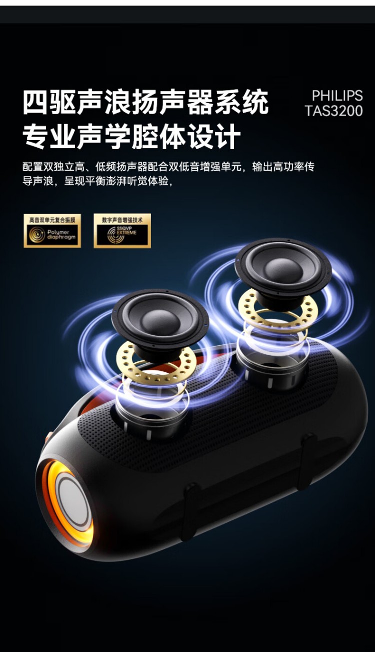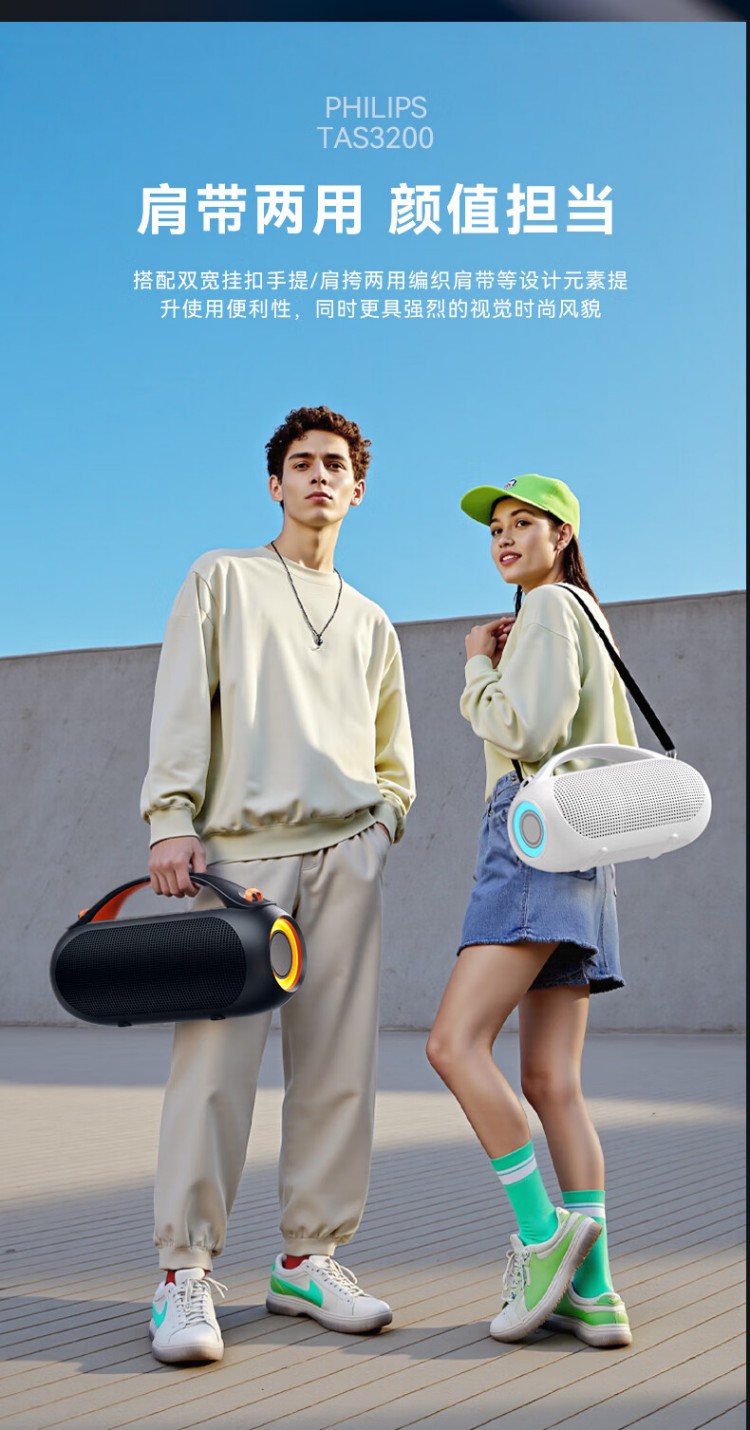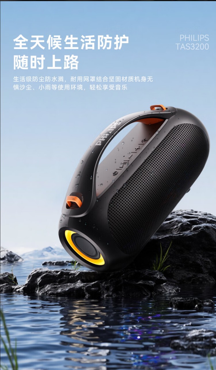 飞利浦(PHILIPS)TAS3200蓝牙音响户外音箱低音炮桌面音箱便携防水柏林之声高音质重低音