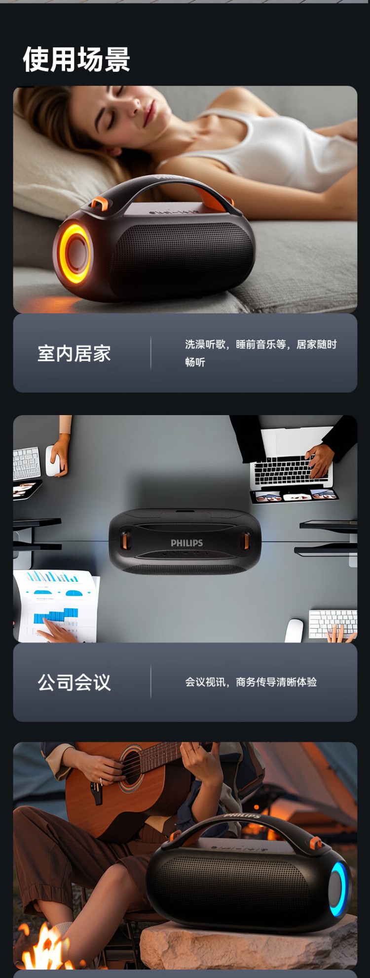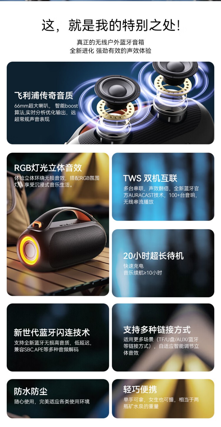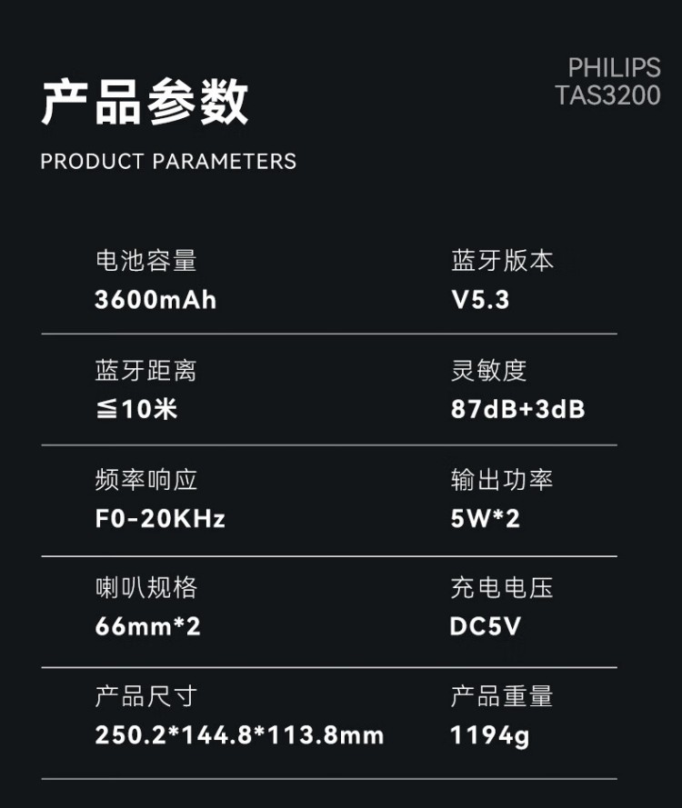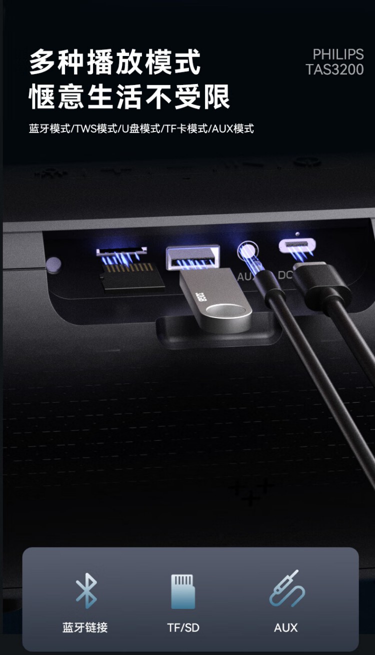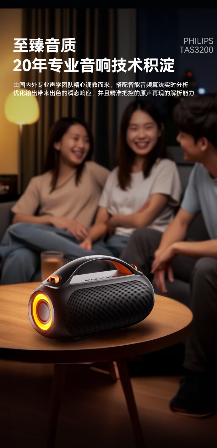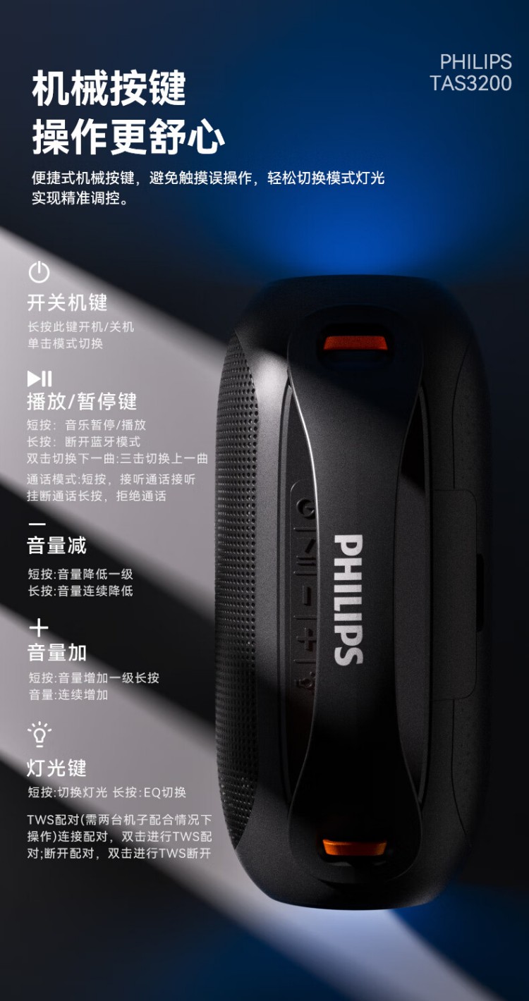 飞利浦(PHILIPS)TAS3200蓝牙音响户外音箱低音炮桌面音箱便携防水柏林之声高音质重低音