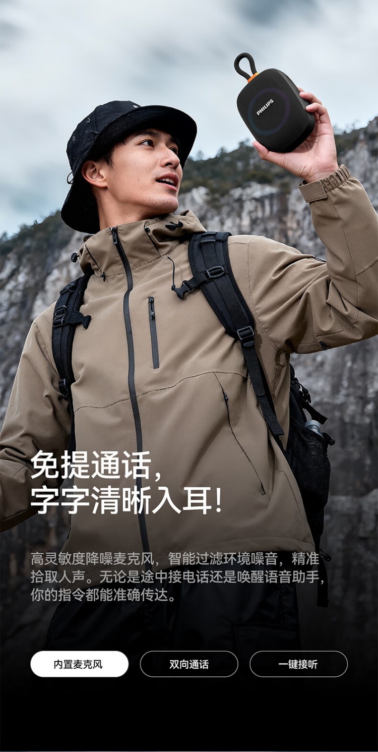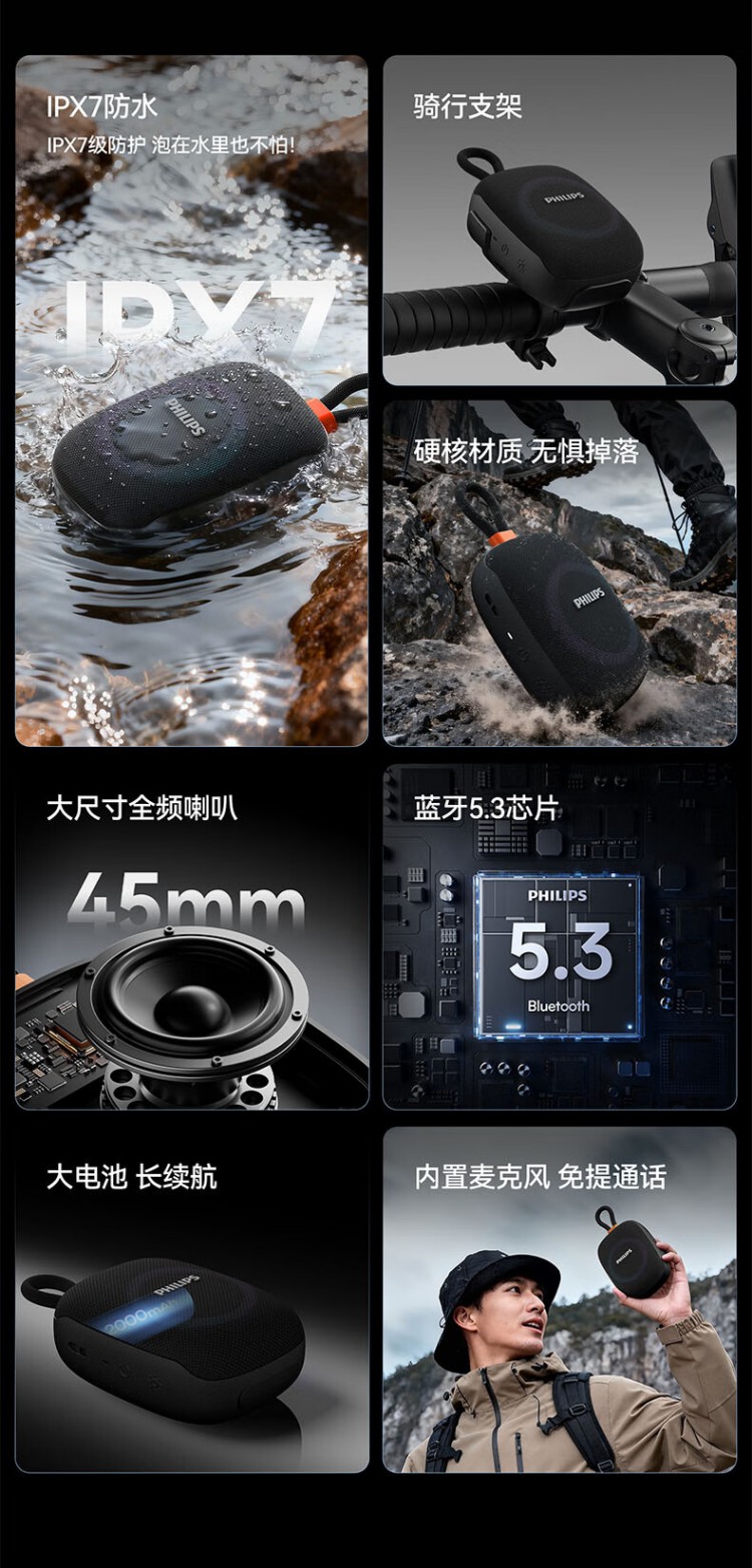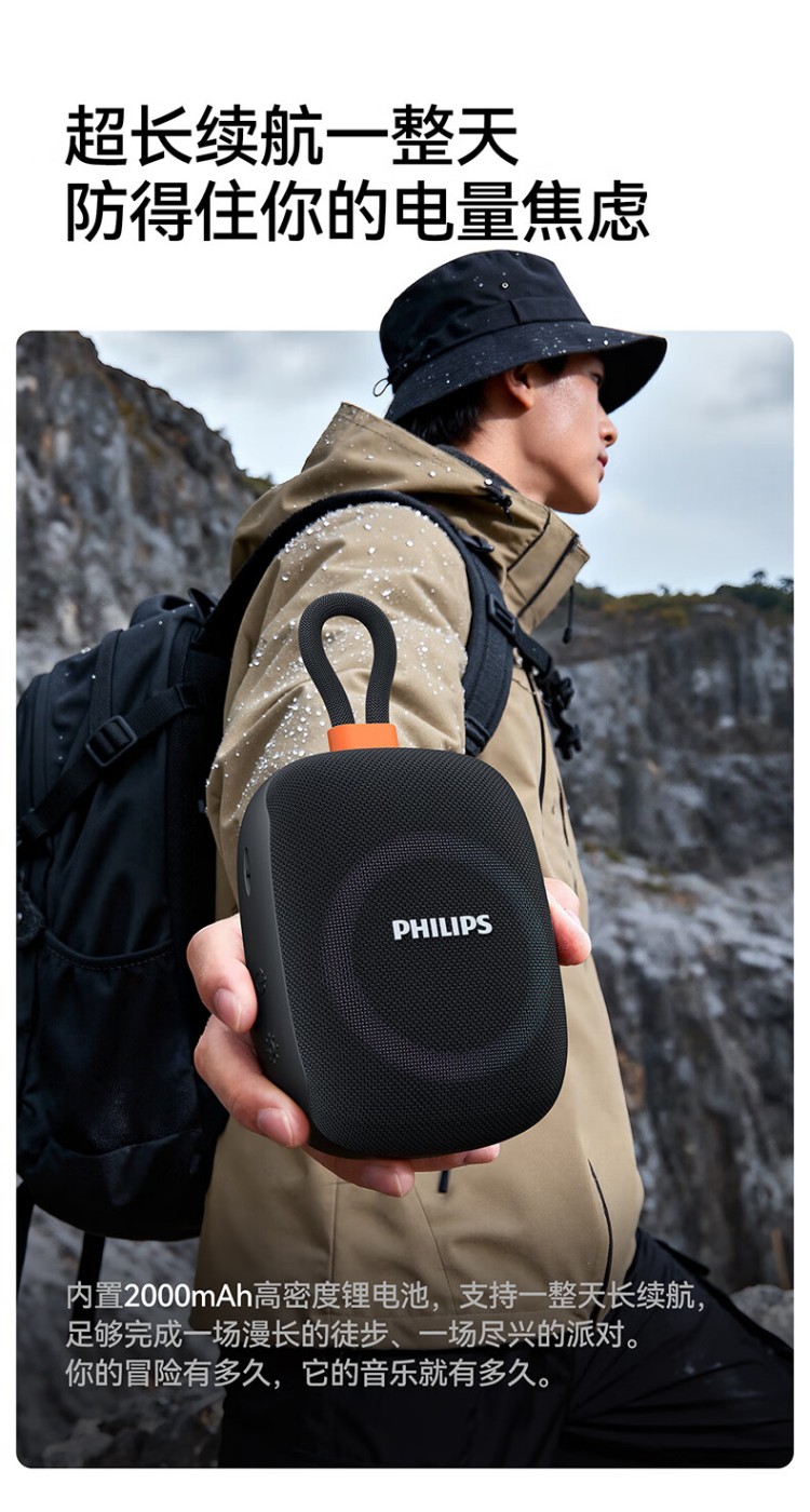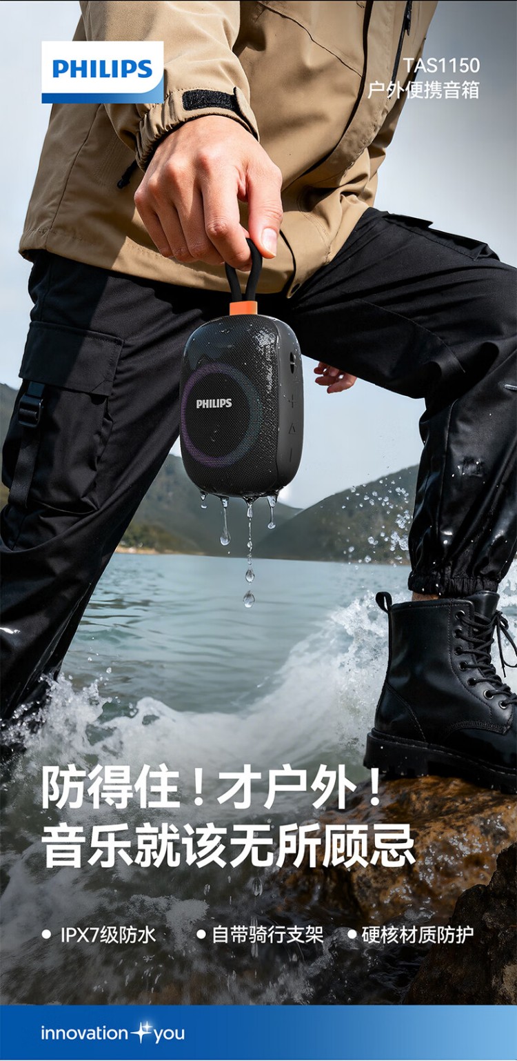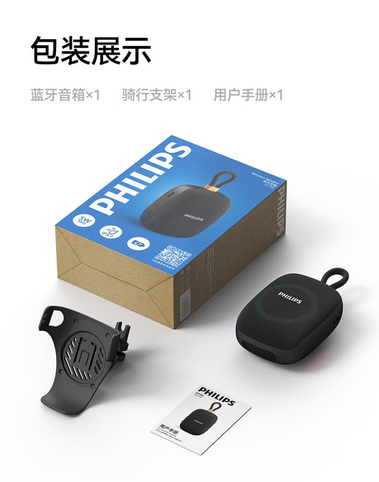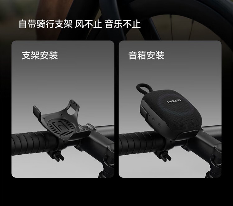 飞利浦(PHILIPS)TAS1150【为骑行定制】自行车户外骑行专用蓝牙音响便携插卡式电动摩托山地公路车高音质音量音箱