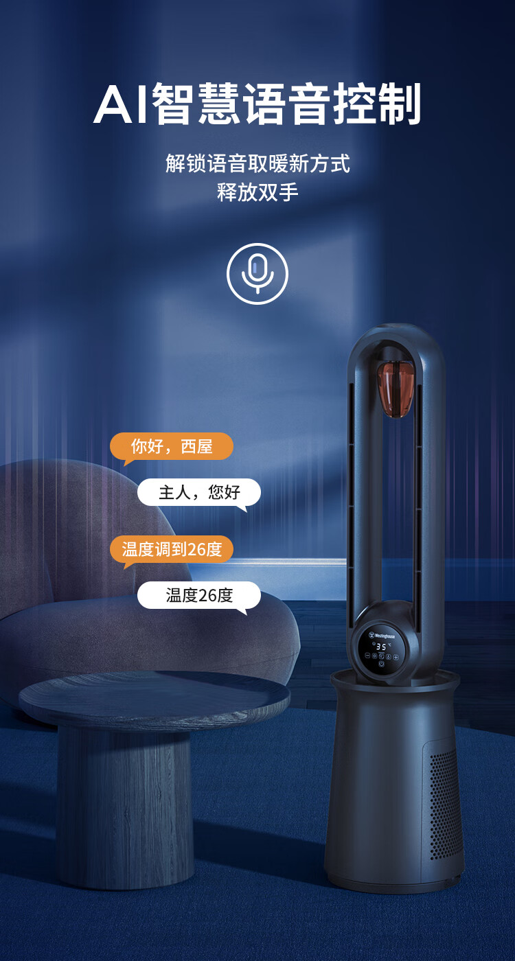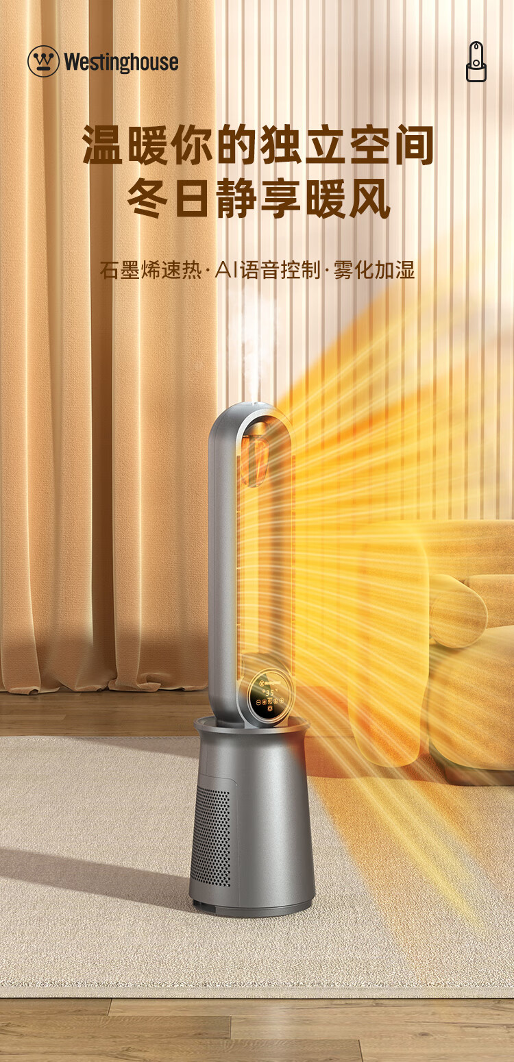 西屋(Westinghouse) 石墨烯无叶取暖器踢脚线暖风机浴室办公室电暖器气家用快速热节能烤火炉