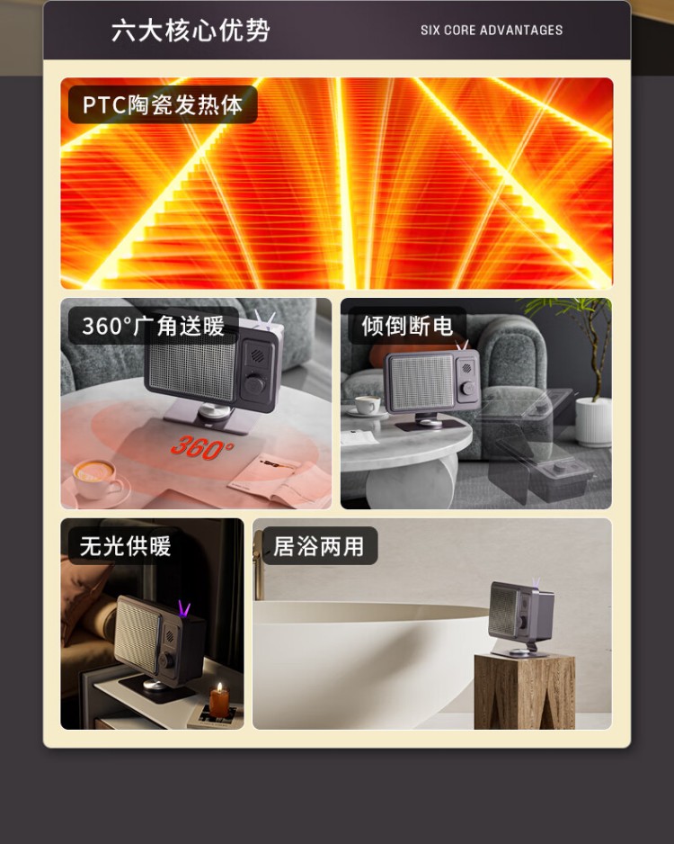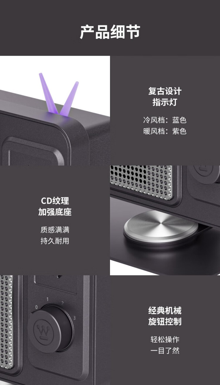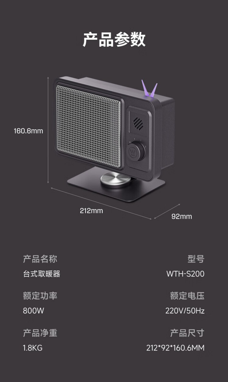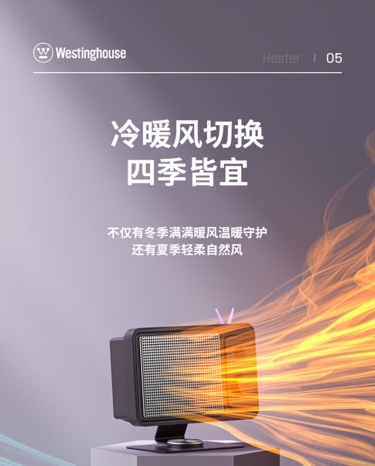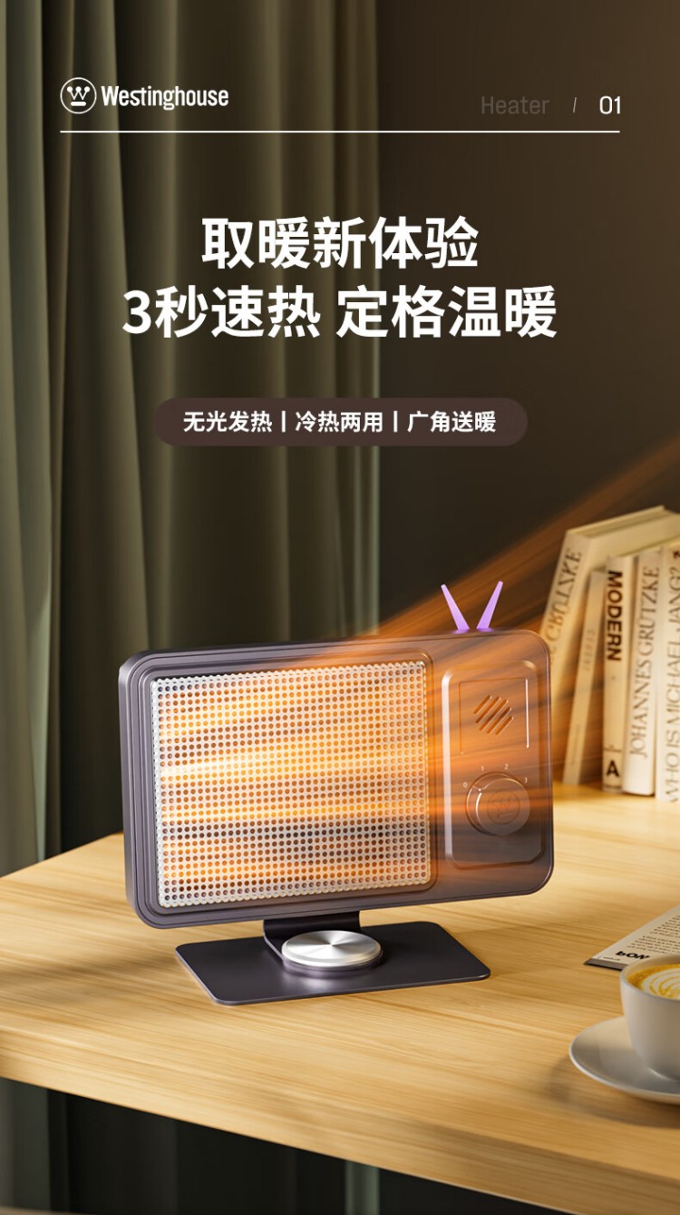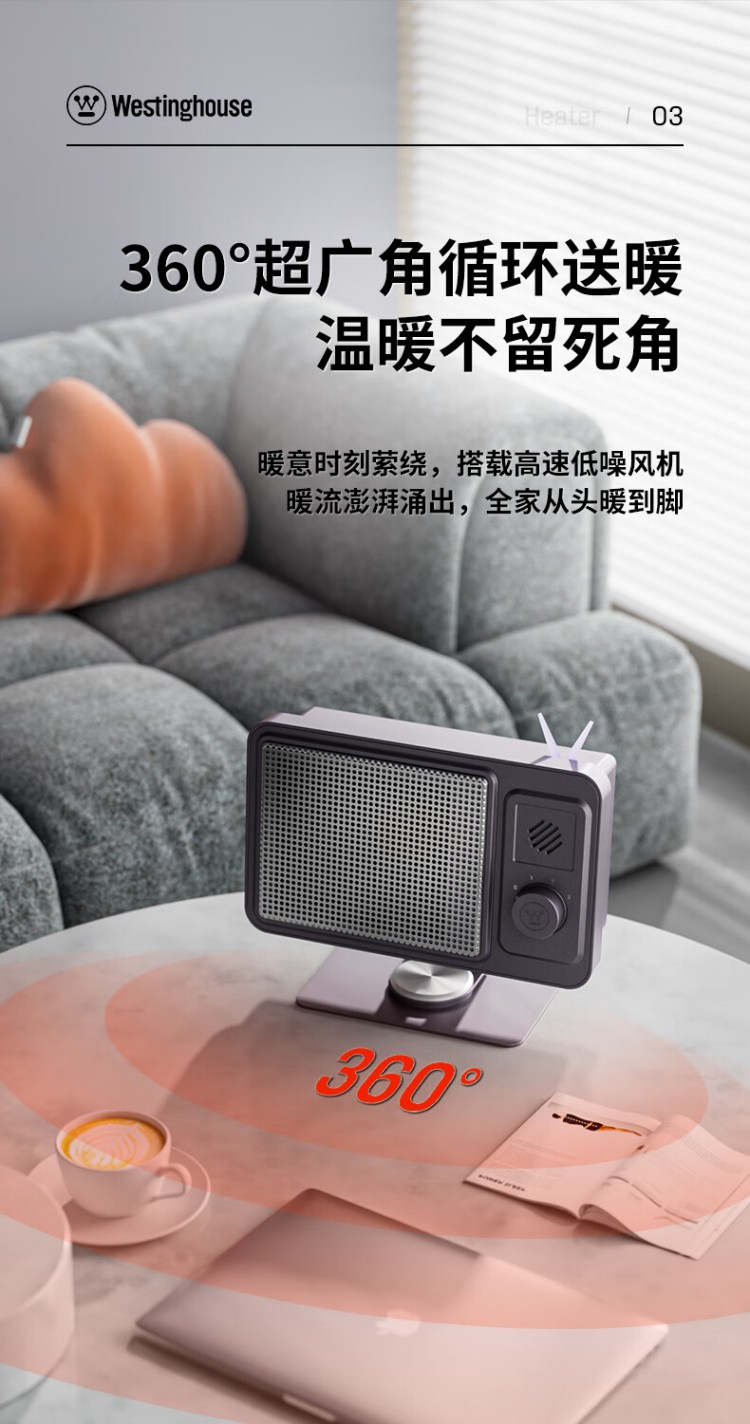 西屋(Westinghouse)取暖器暖风机办公室电暖器家用电暖气小型电暖风迷你热风机学生桌面取暖电器卧室伴侣