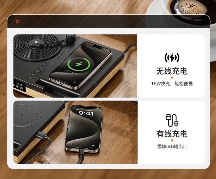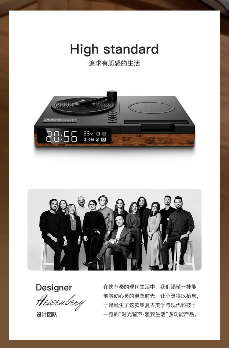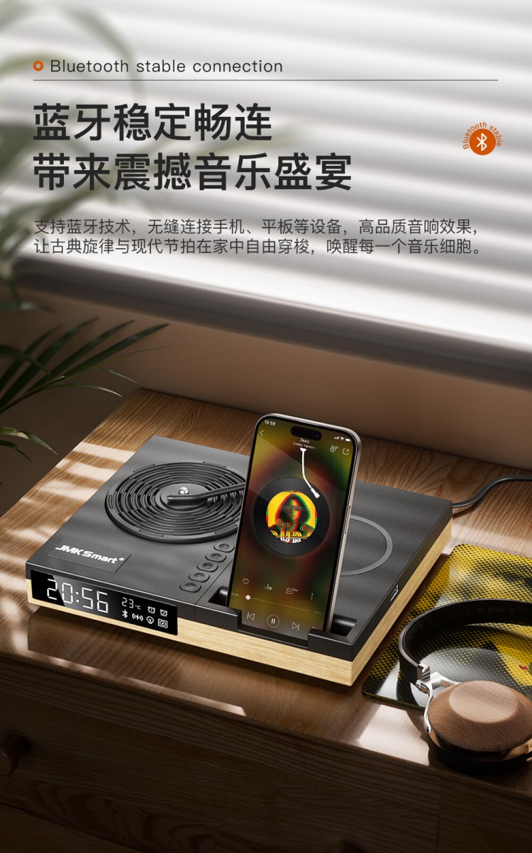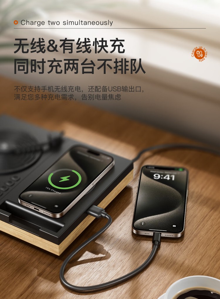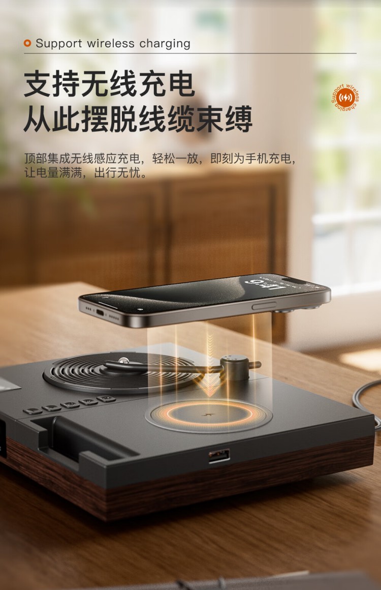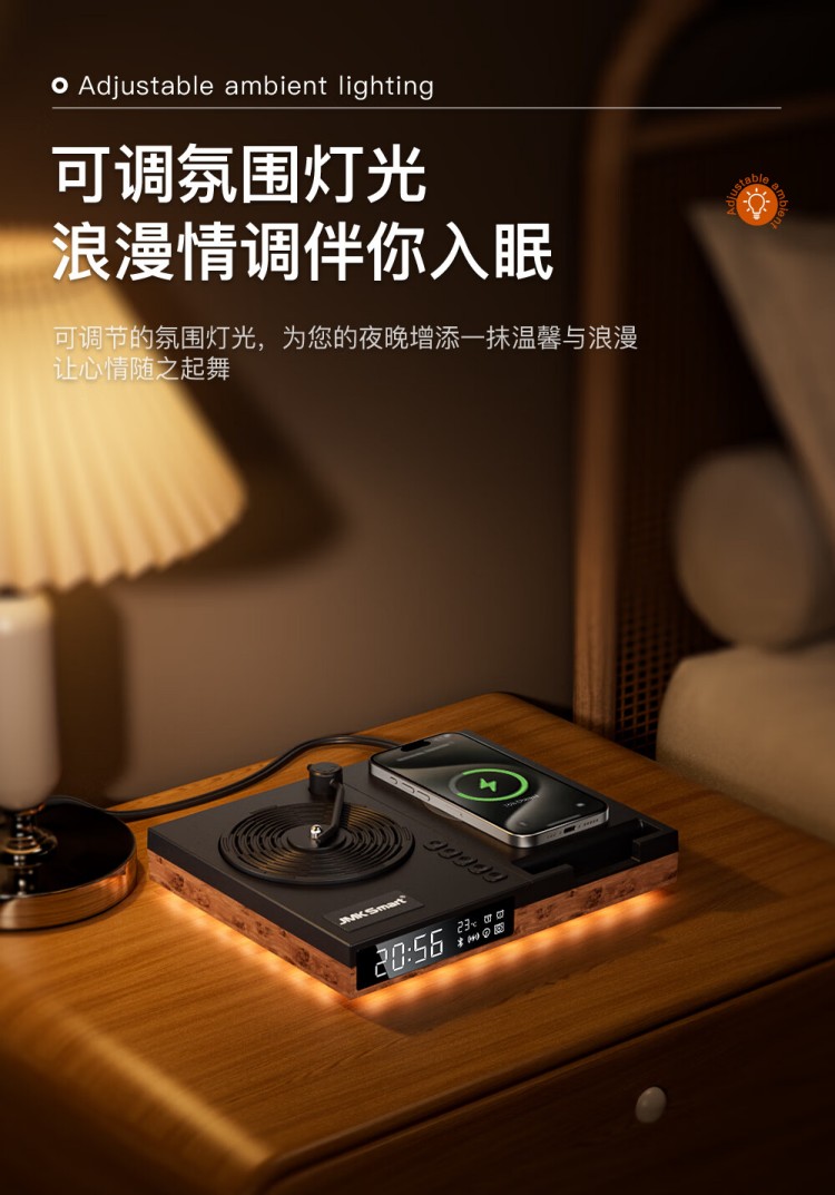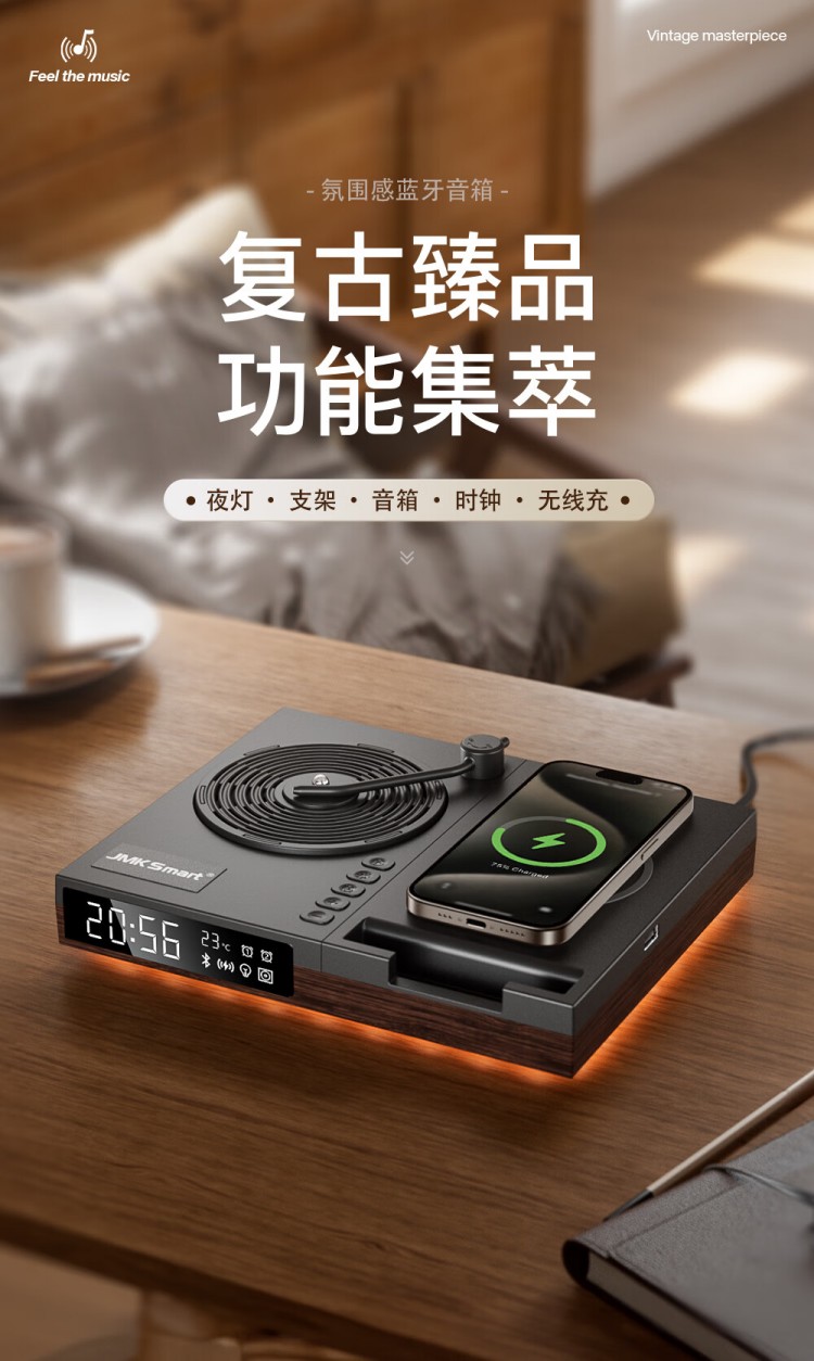 之臻复古多功能桌面无线音响 磁吸充电 四合一床头吸呼灯 桃木纹