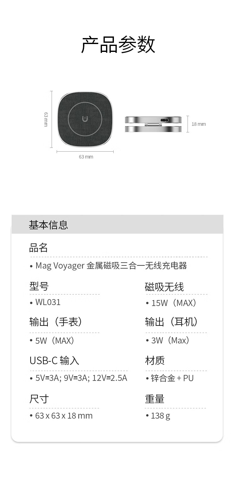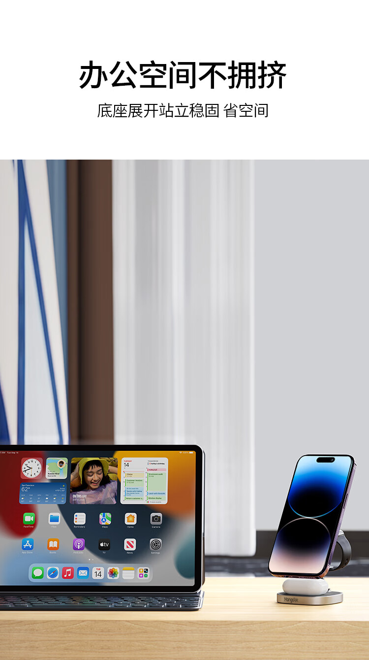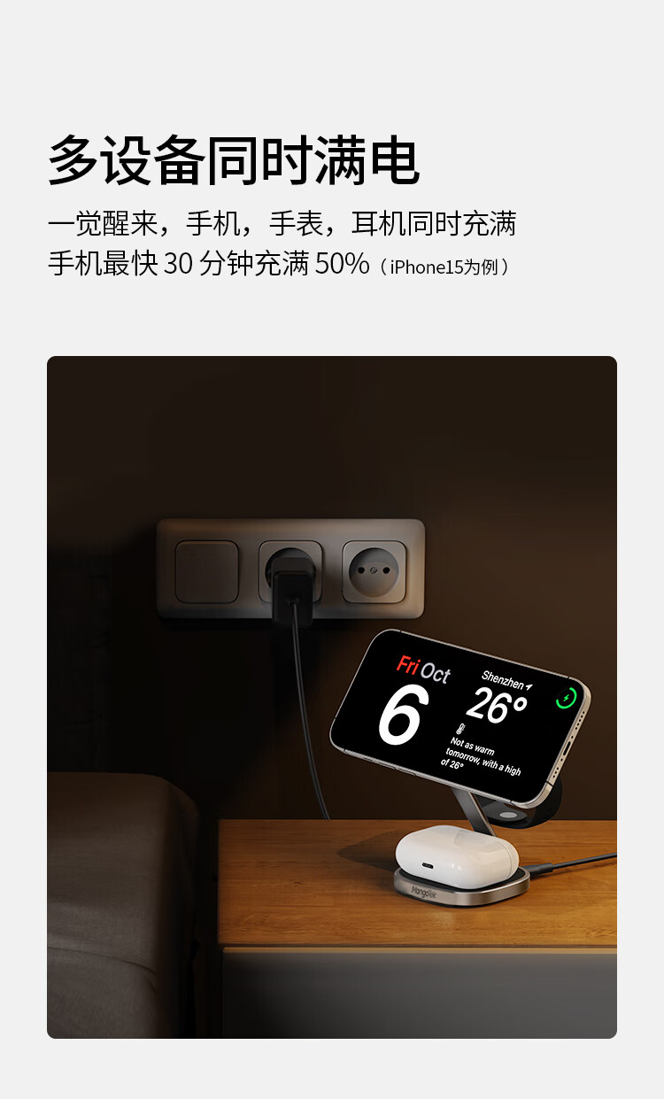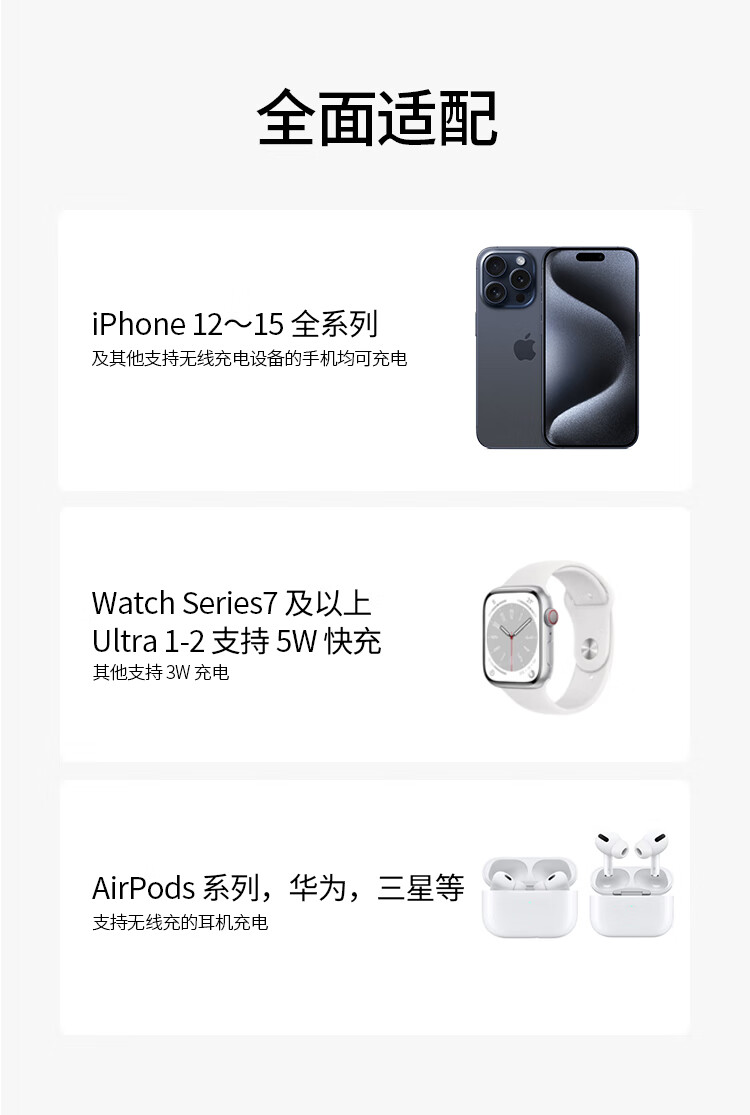 磁吸无线充电器15W苹果手机手表耳机三合一折叠支架便携适用iPhone15/iWatch/AirPods Pro 银色