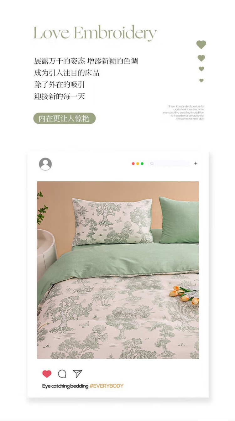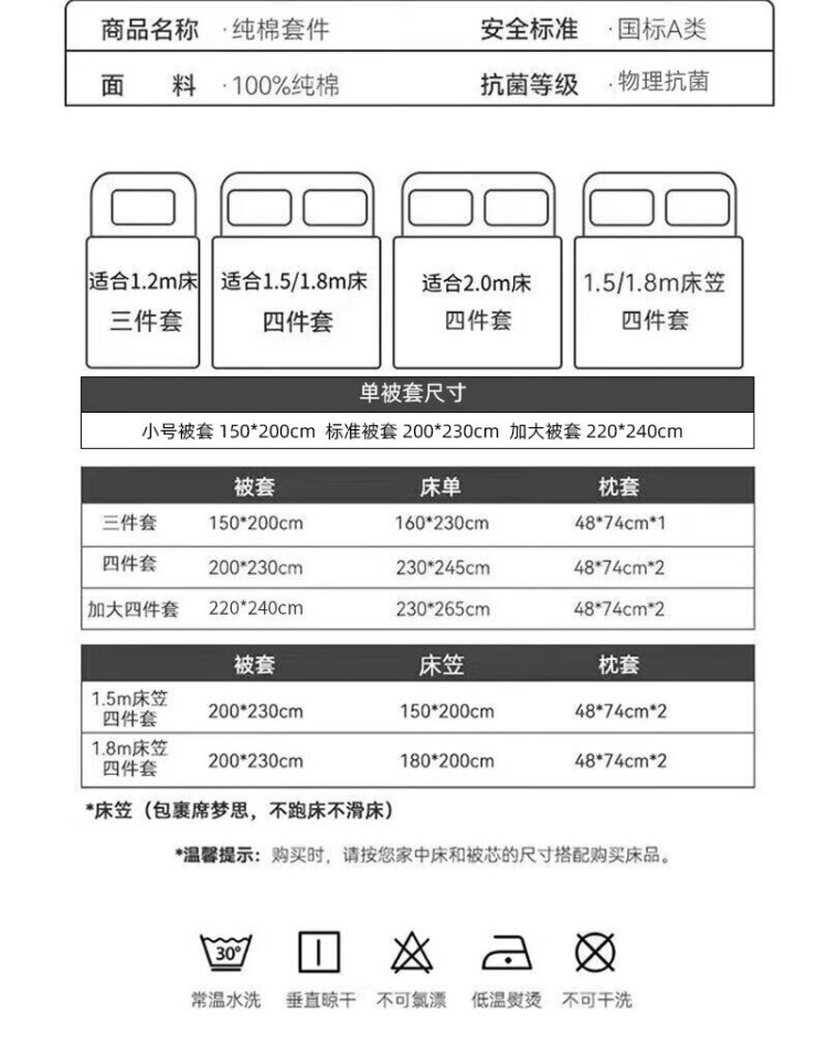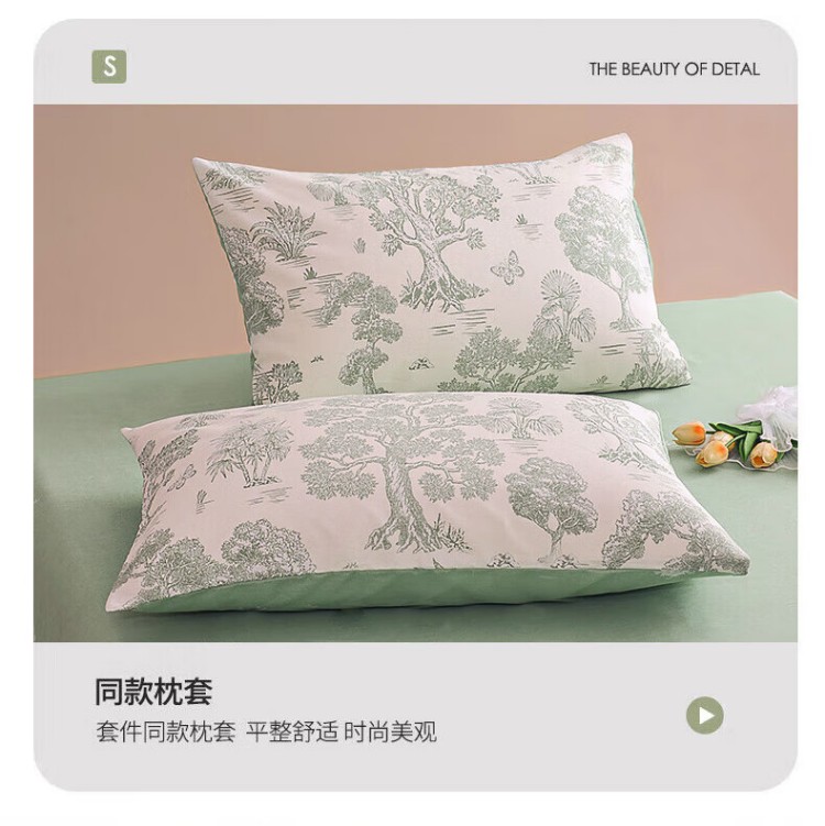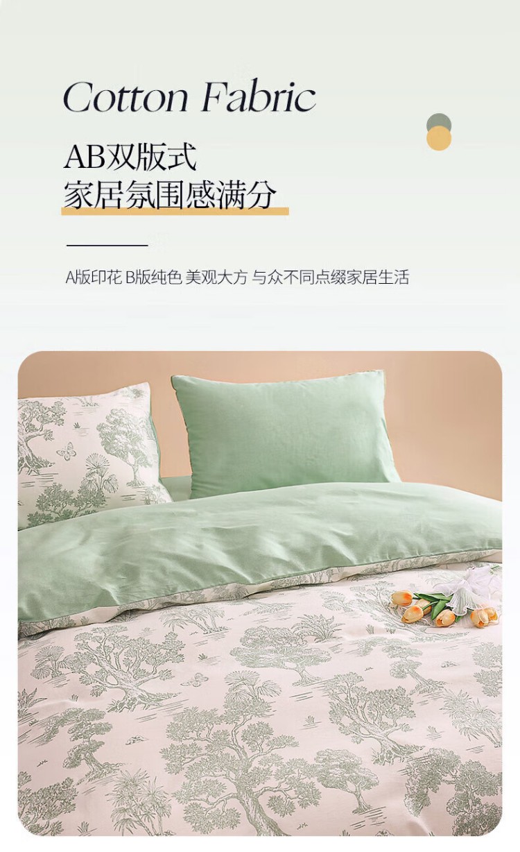 洁丽雅100%纯棉四件套学生宿舍床单三件套卧室全棉被套套件 千寻绿【抗菌A类全棉】 四件套 床单款 适合200*230
