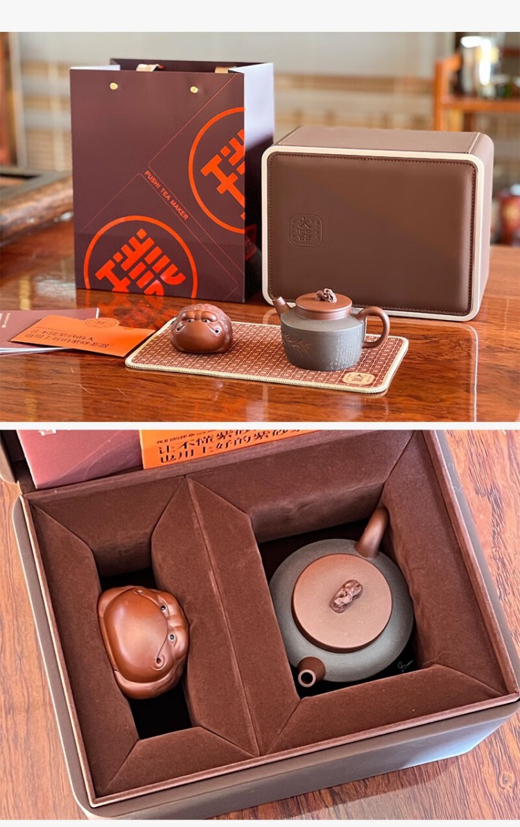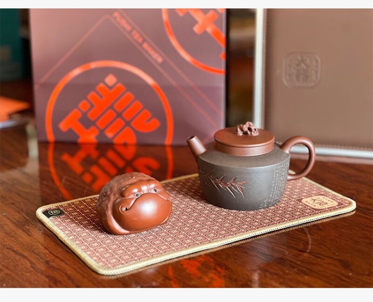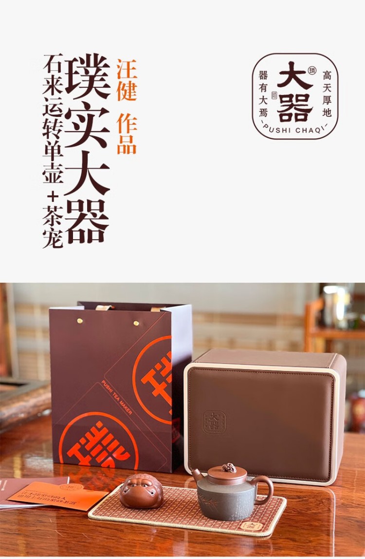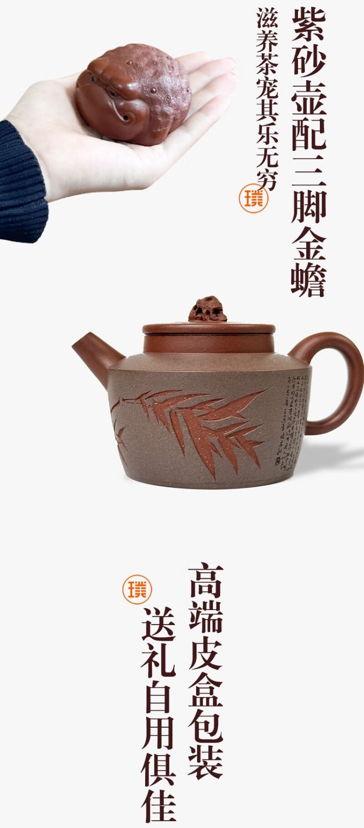 壶体字体绘图全手工雕刻宜兴原矿紫泥、青灰段泥璞实大器·石来运转单壶+茶宠