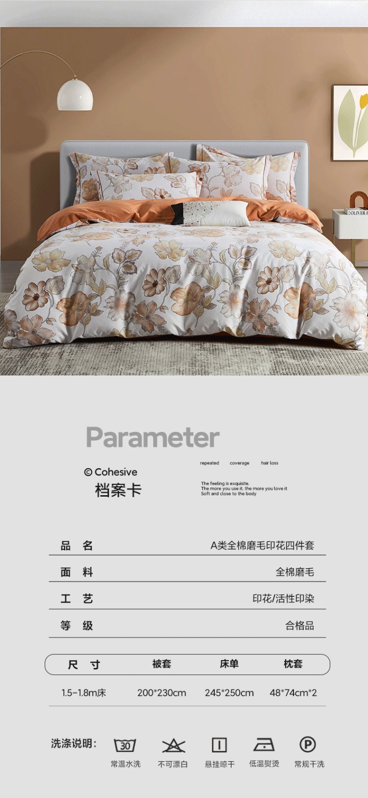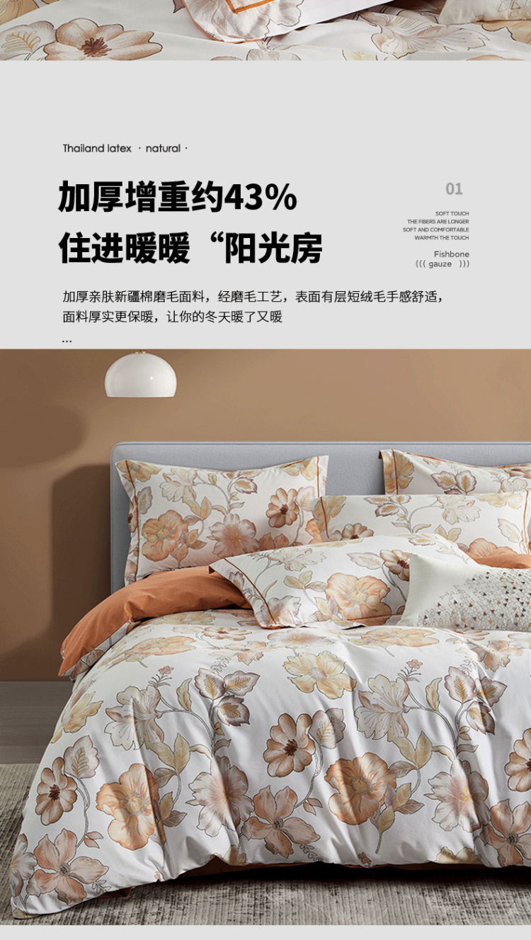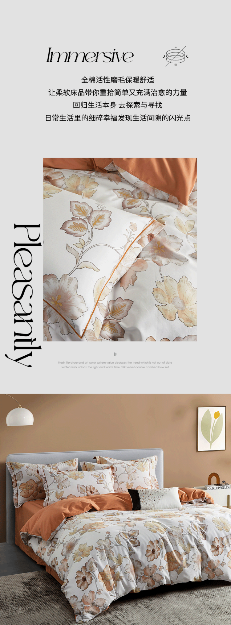 唐纳家纺臻享贡缎磨毛四件套 拾秋