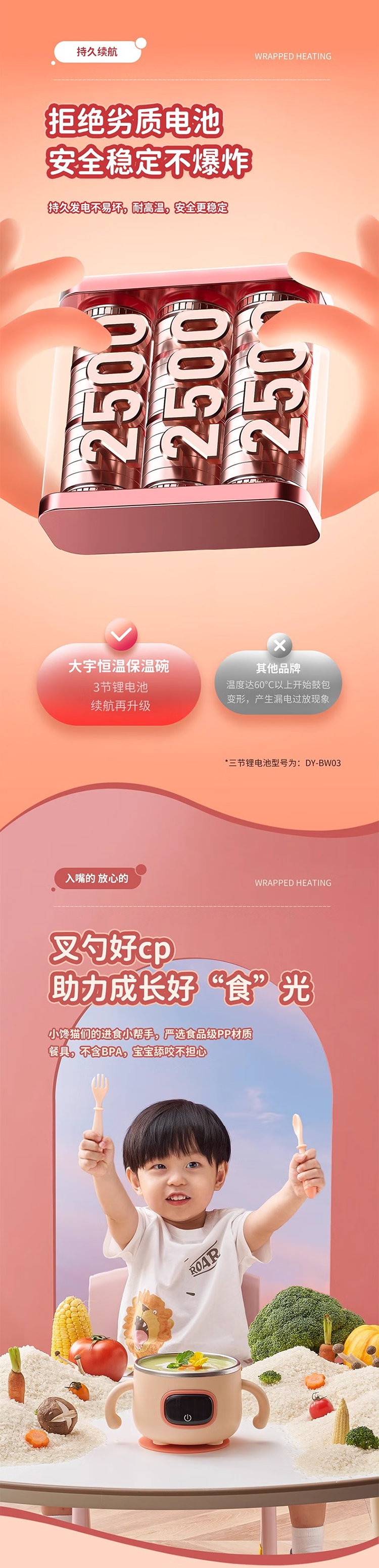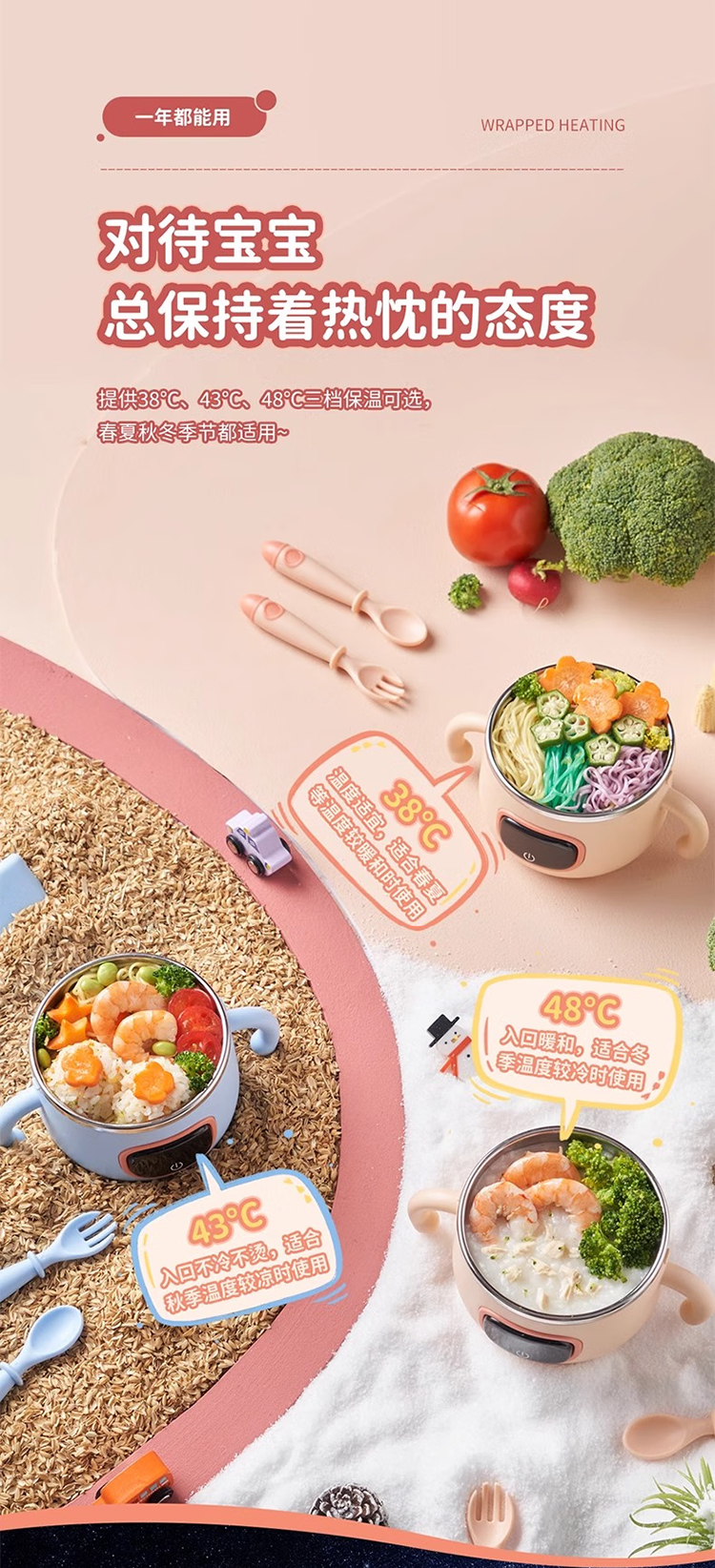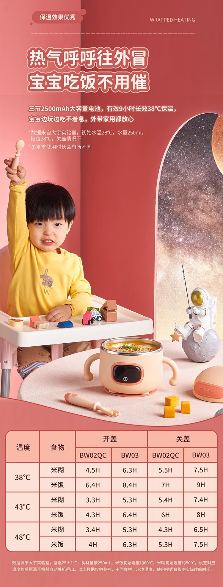 大宇宝宝保温碗充电儿防摔不锈钢免注水智能恒温