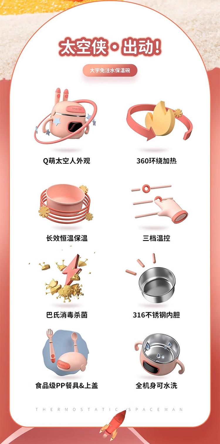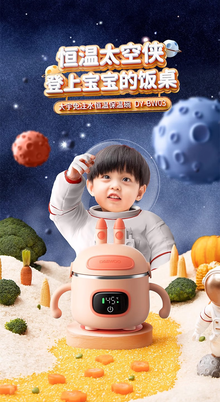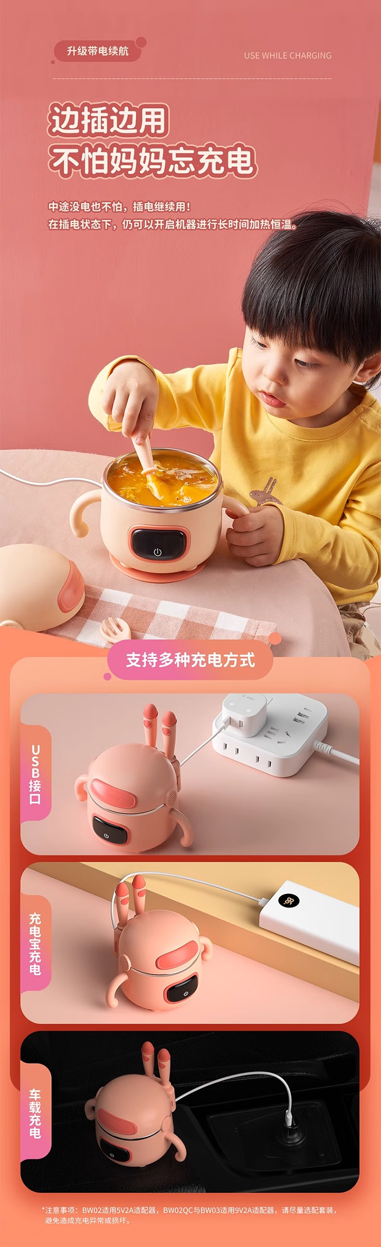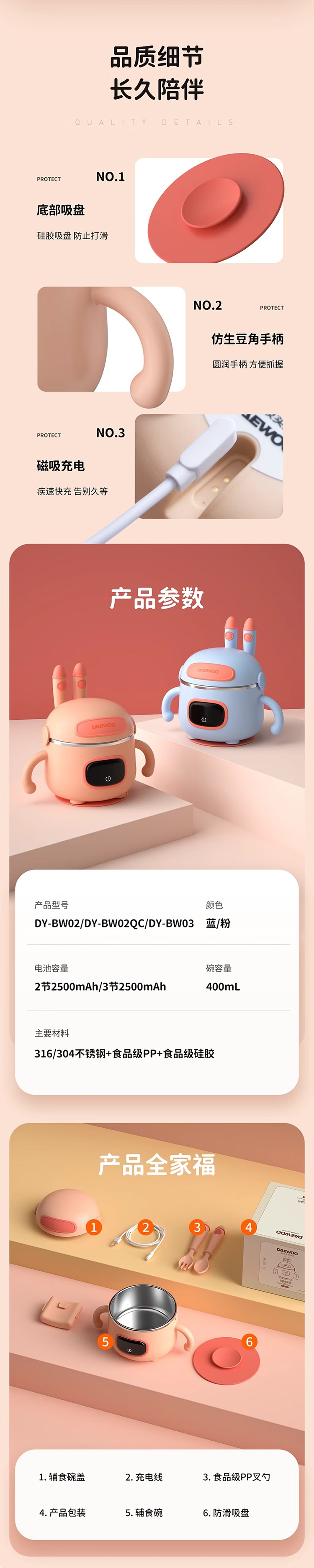 大宇宝宝保温碗充电儿防摔不锈钢免注水智能恒温