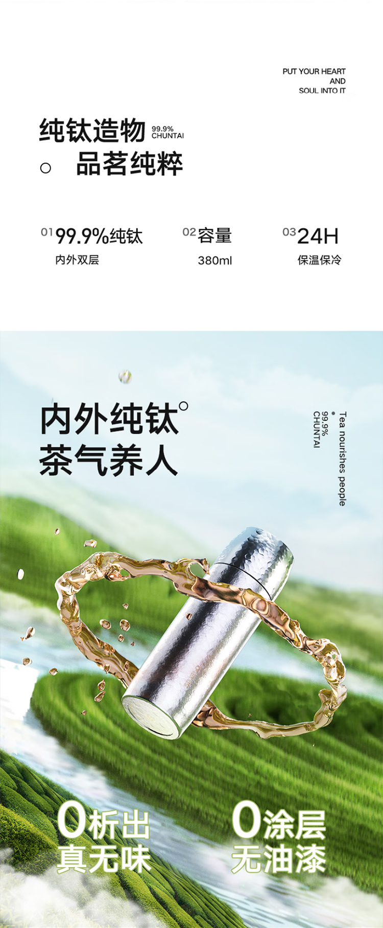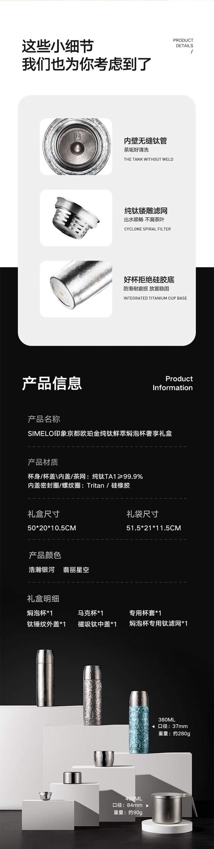 SIMELO施美乐纯钛保温杯男焖泡杯礼盒