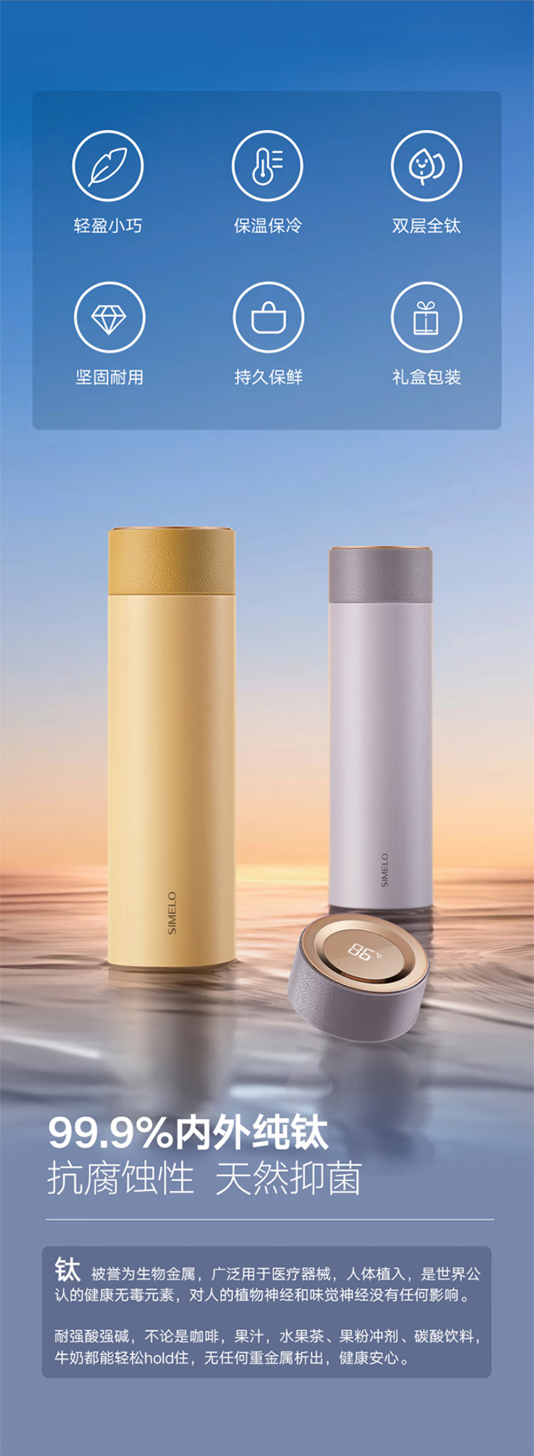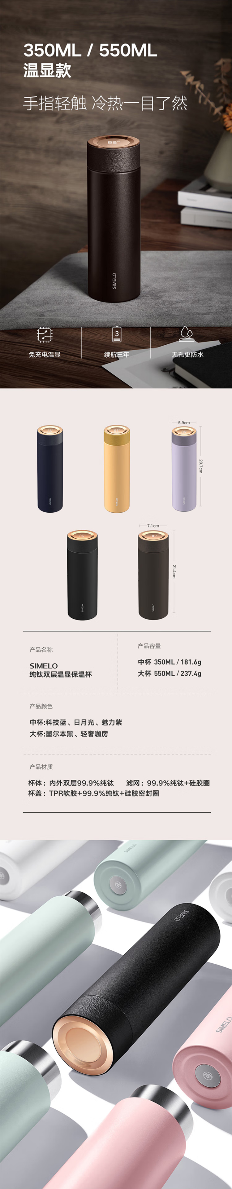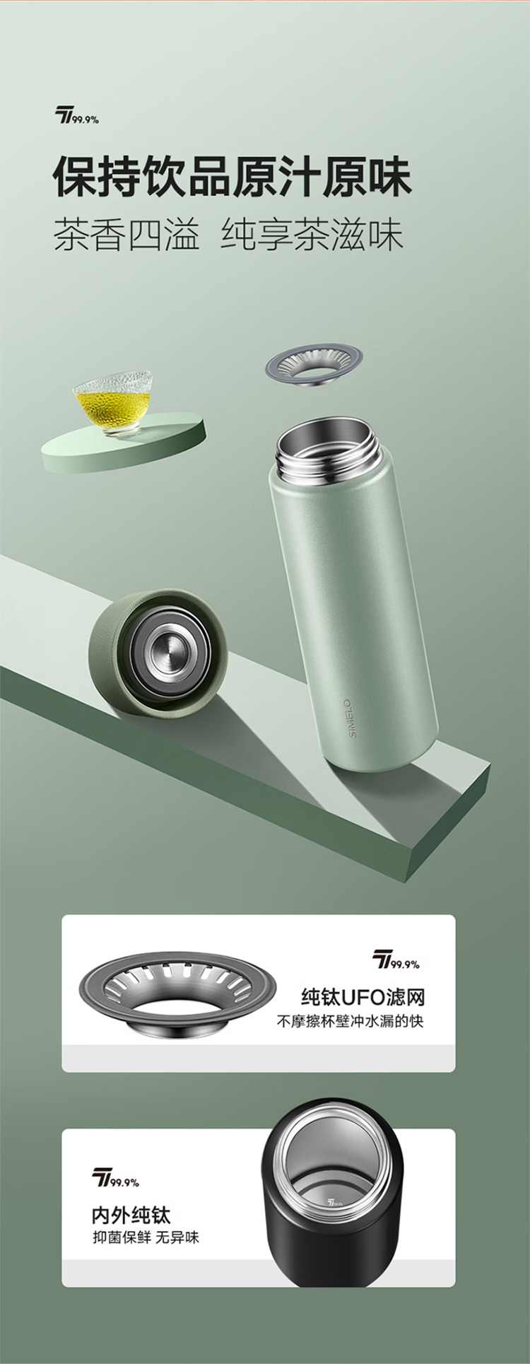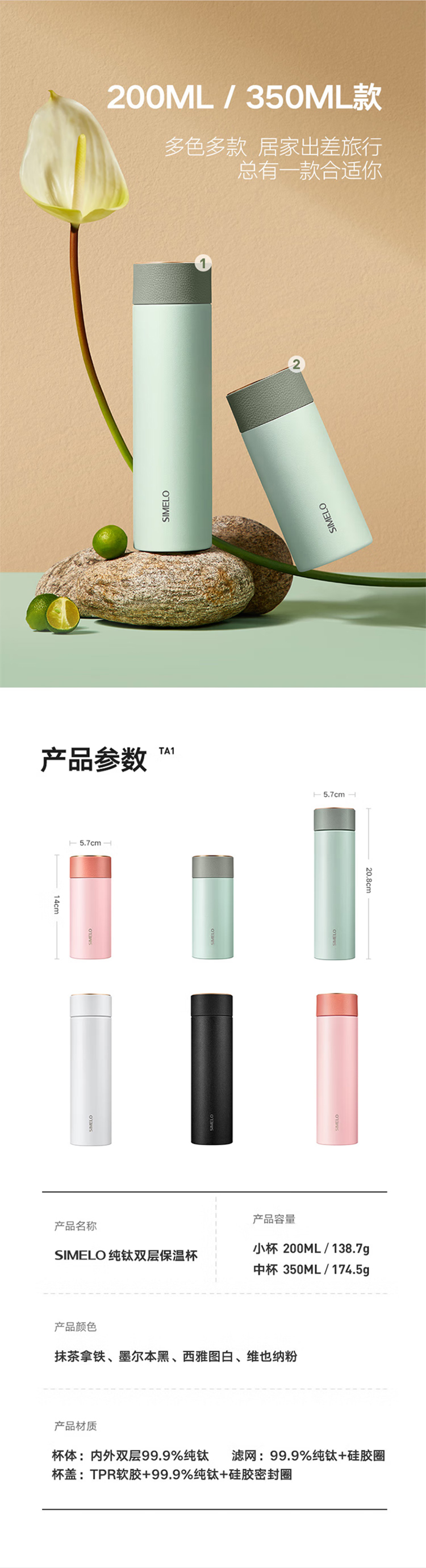 SIMELO施美乐钛杯女纯钛保温杯男泡茶水杯