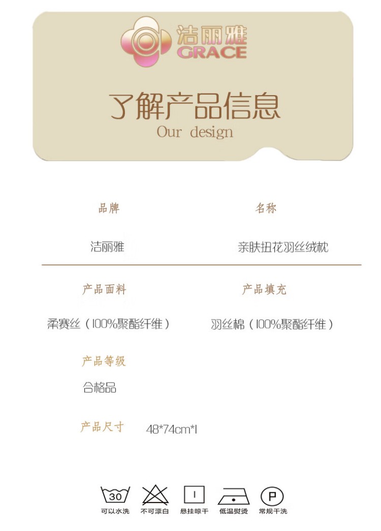 洁丽雅 GRACE 亲肤扭花羽丝绒枕