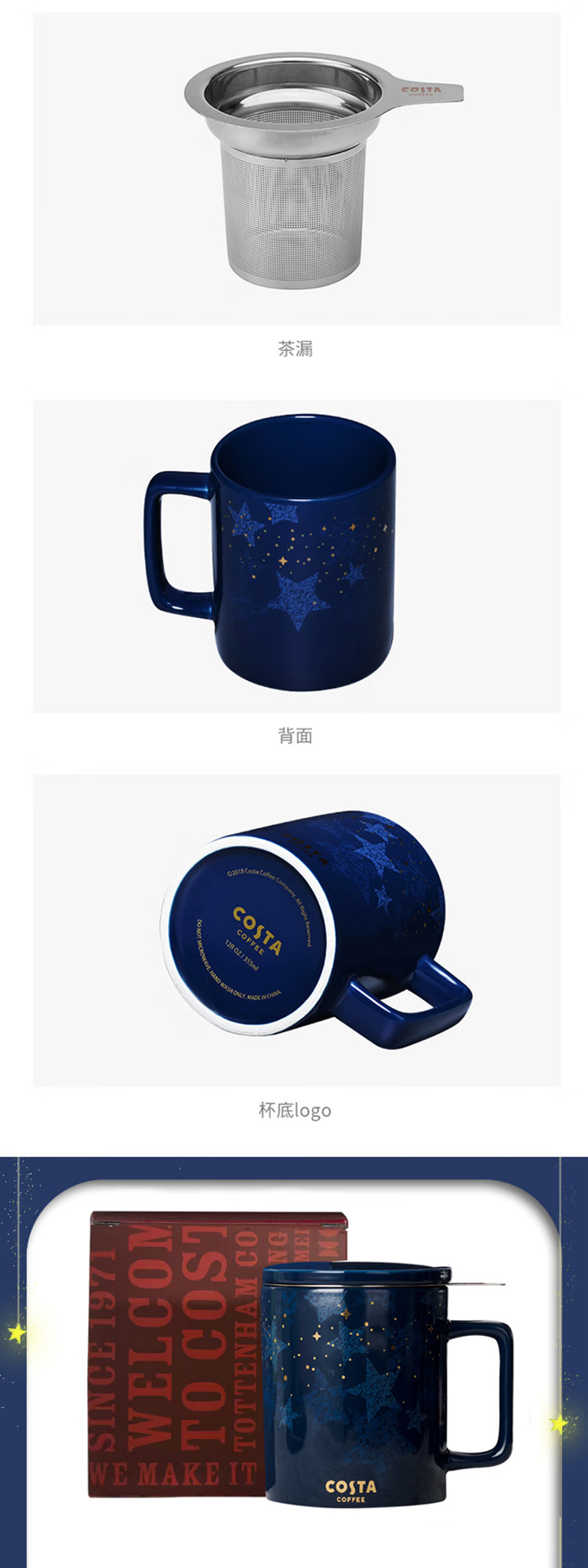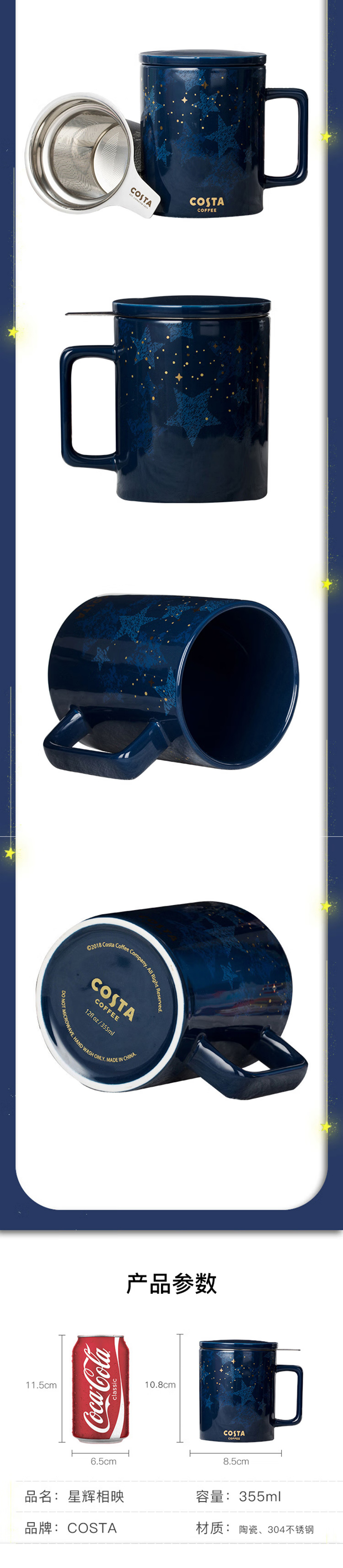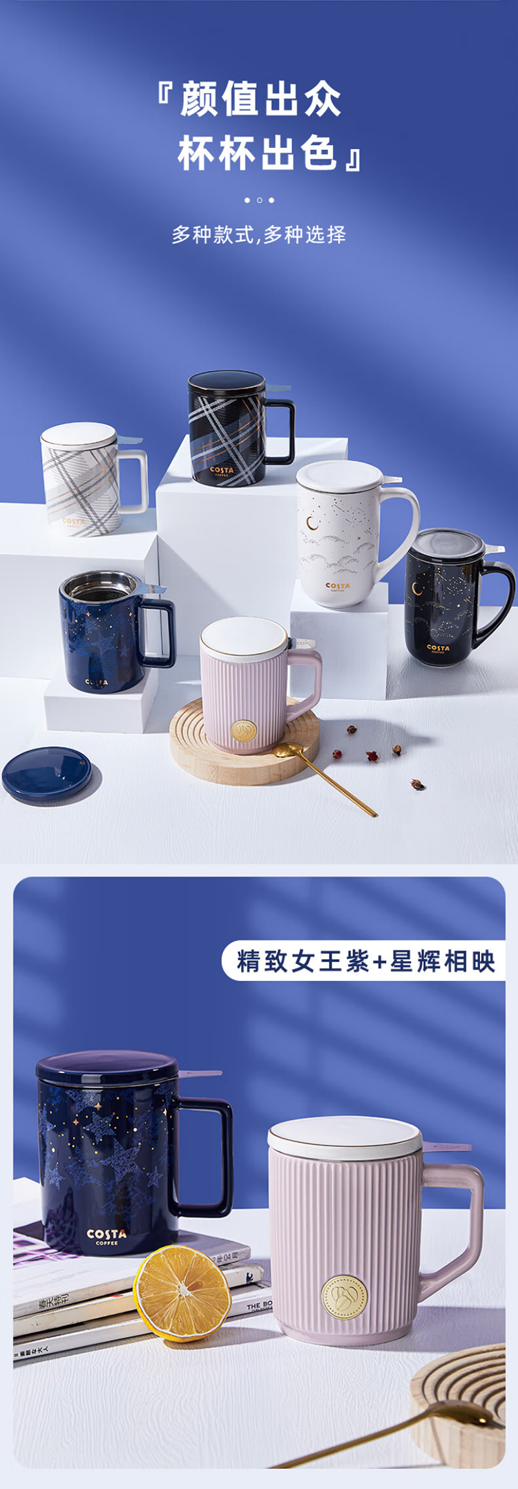 COSTA茶水分离陶瓷马克杯带盖带茶虑大容量杯子