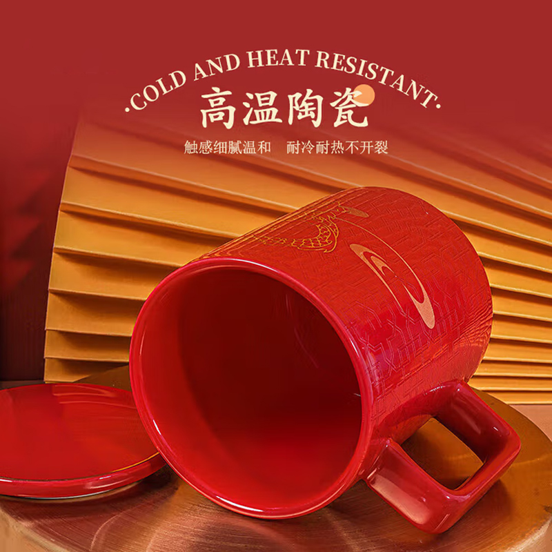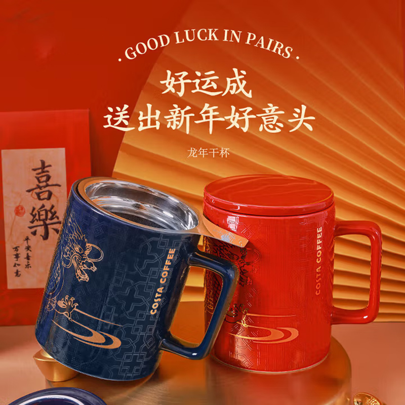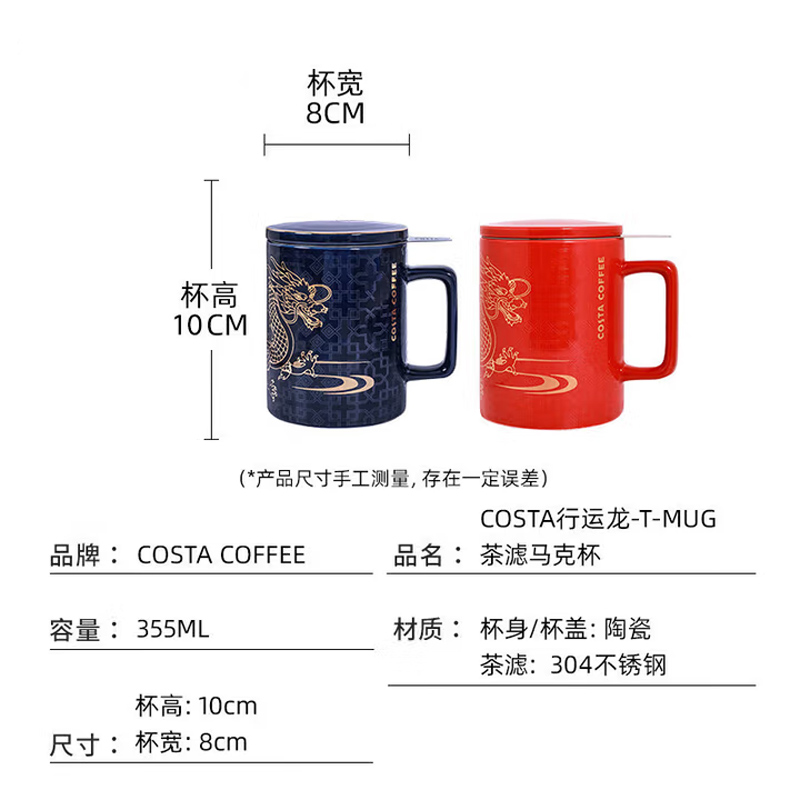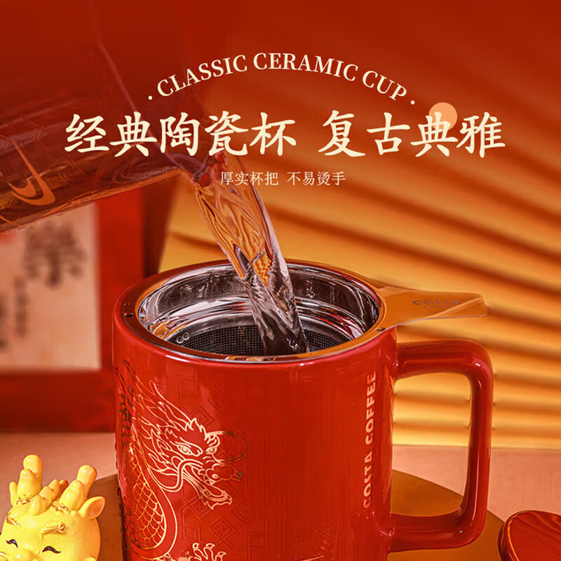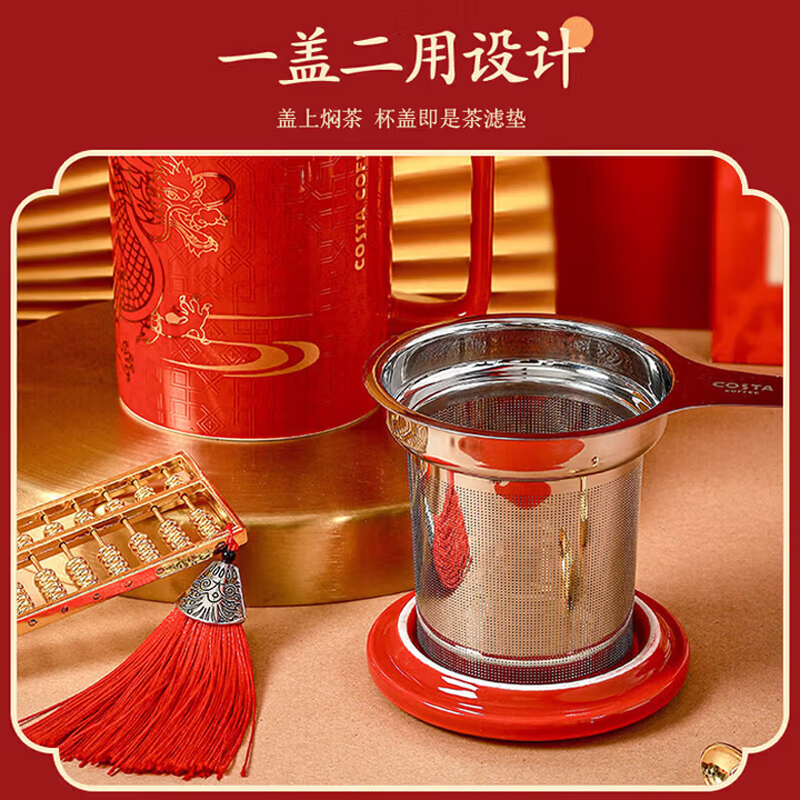 COSTA陶瓷马克杯带盖带茶虑大容量红色