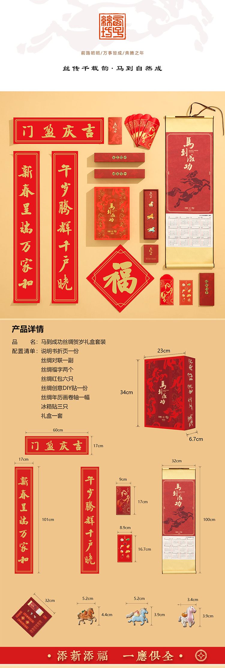 马到成功丝绸贺岁套装春联礼盒