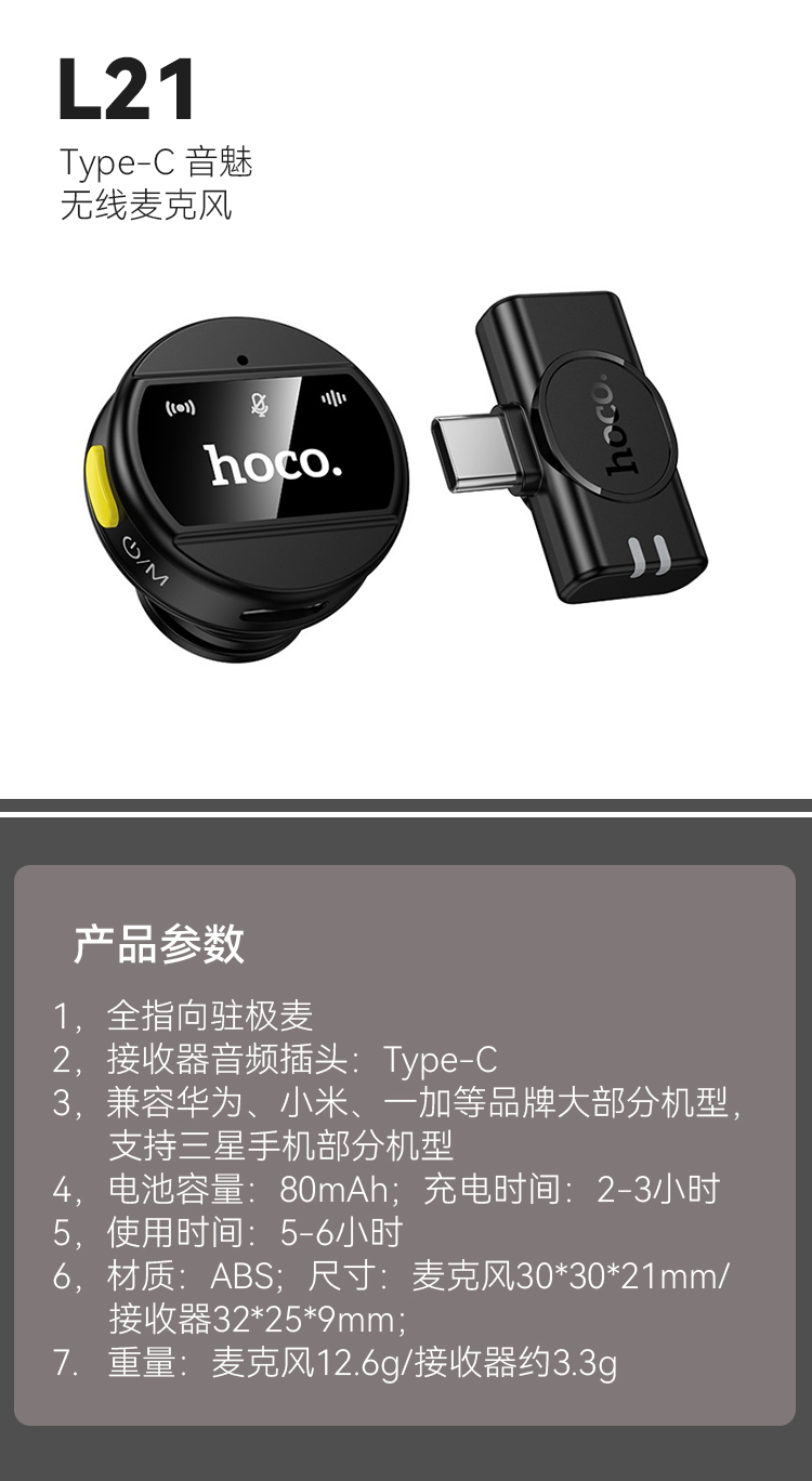 Type-C 音魅无线麦克风 兼容华为、小米、一加等品牌大部分机型,支持三星手机部分机型
