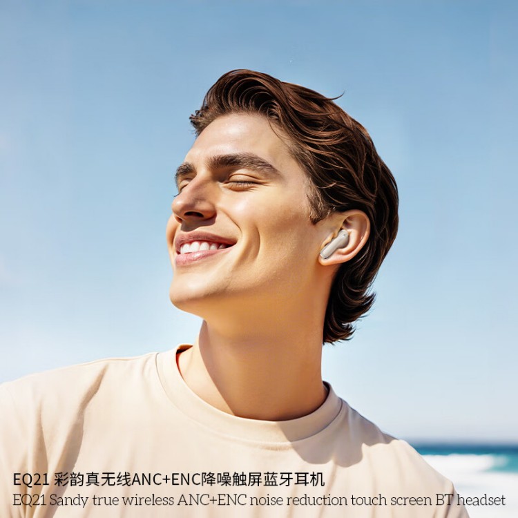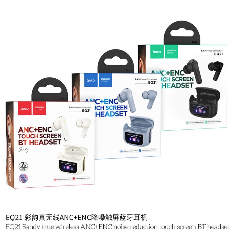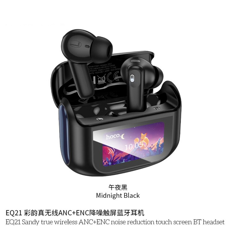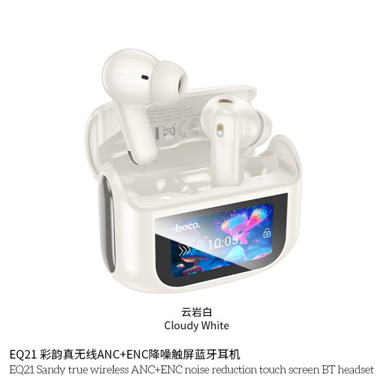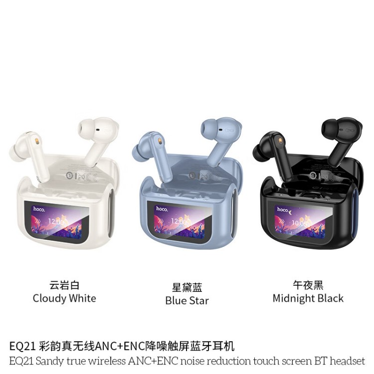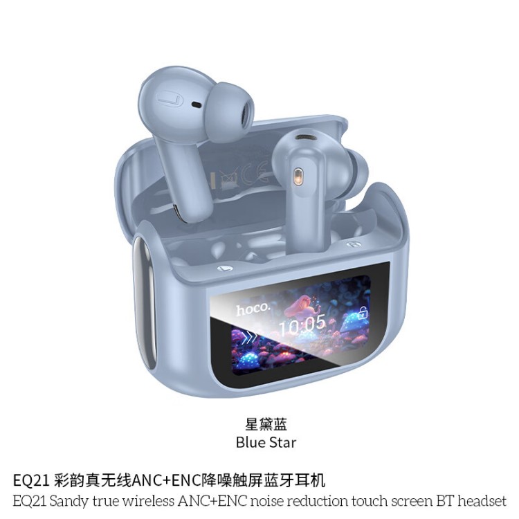 EQ21【自带彩屏】ANC+ENC降噪耳机 真无线触屏蓝牙耳机 超长续航无线耳机 适用苹果华为小米 【蓝色】 自带触摸屏