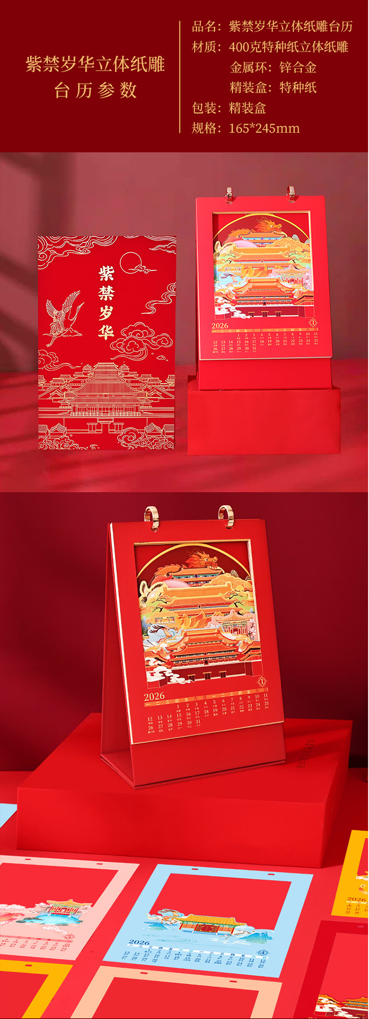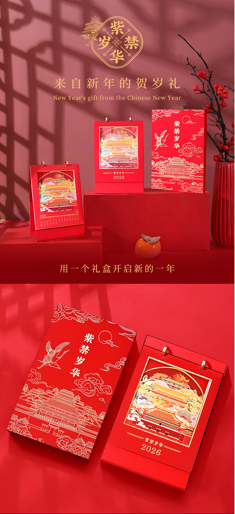 文创故宫风马年日历月历高档立体纸雕文创礼物新年元旦伴手礼送客户送朋友企业办公定制 紫禁岁华