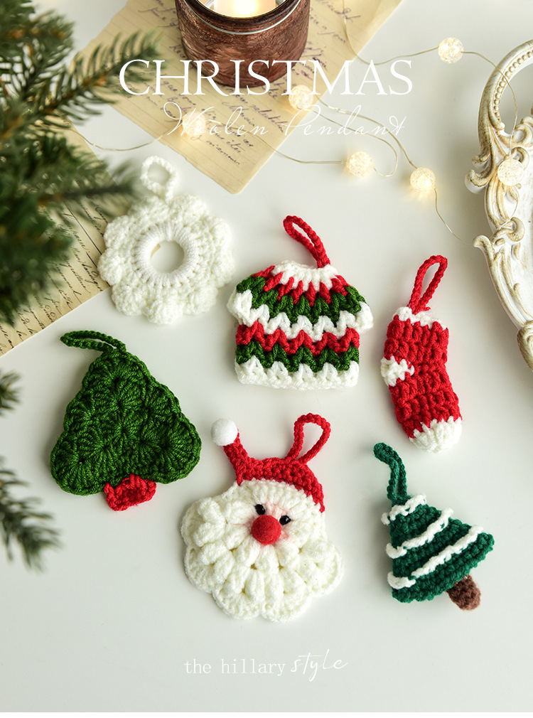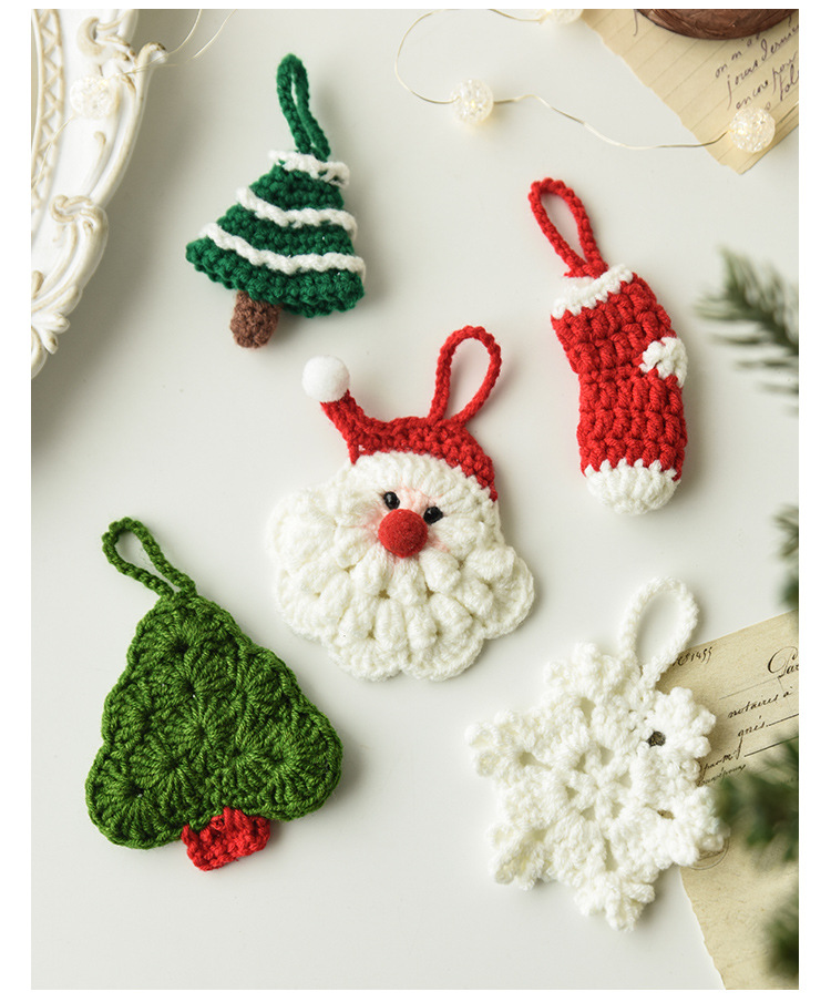 圣诞礼物手工编织雪花圣诞老人装饰圣诞树挂饰圣诞节装饰挂件