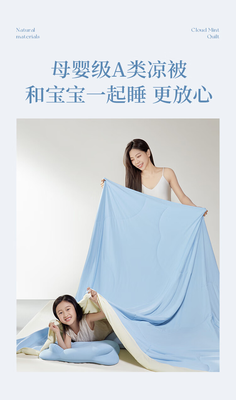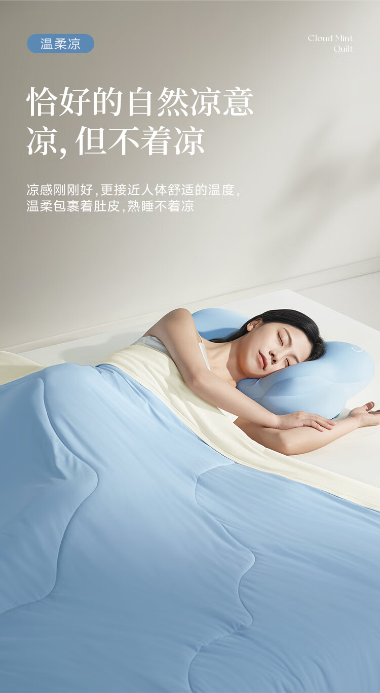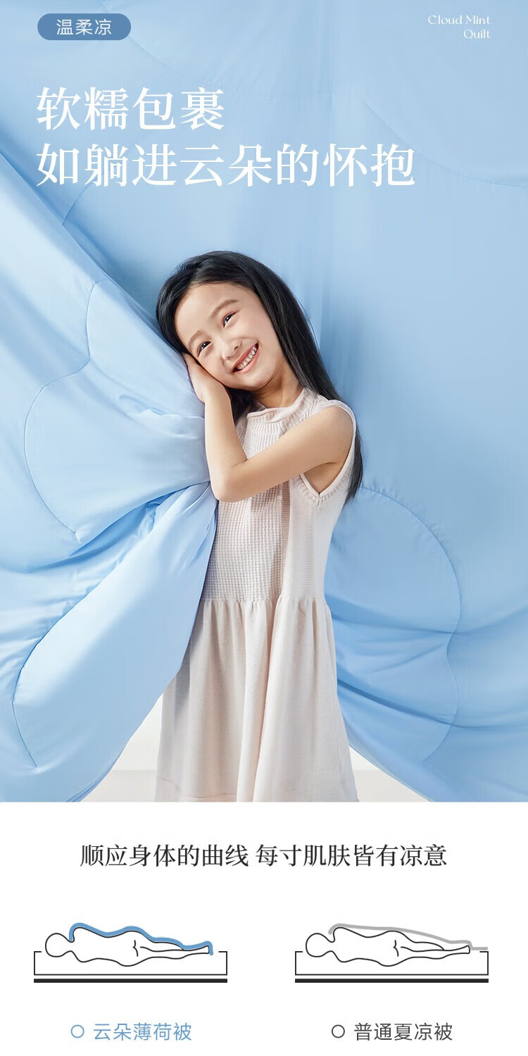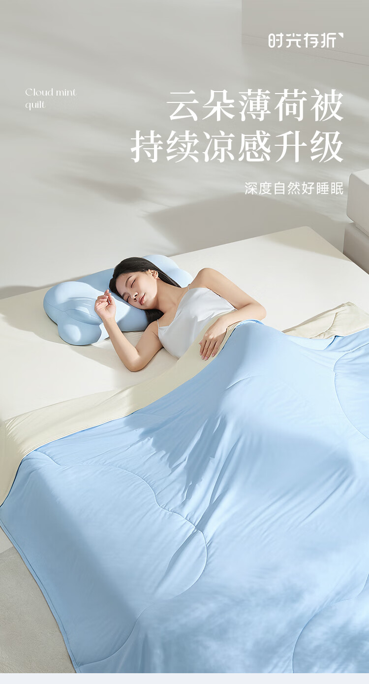时光存折云朵薄荷被夏凉被 柔软亲肤凉感薄被空调被 A类被子儿童婴儿可用 晴空蓝150×200【A类级面料】
