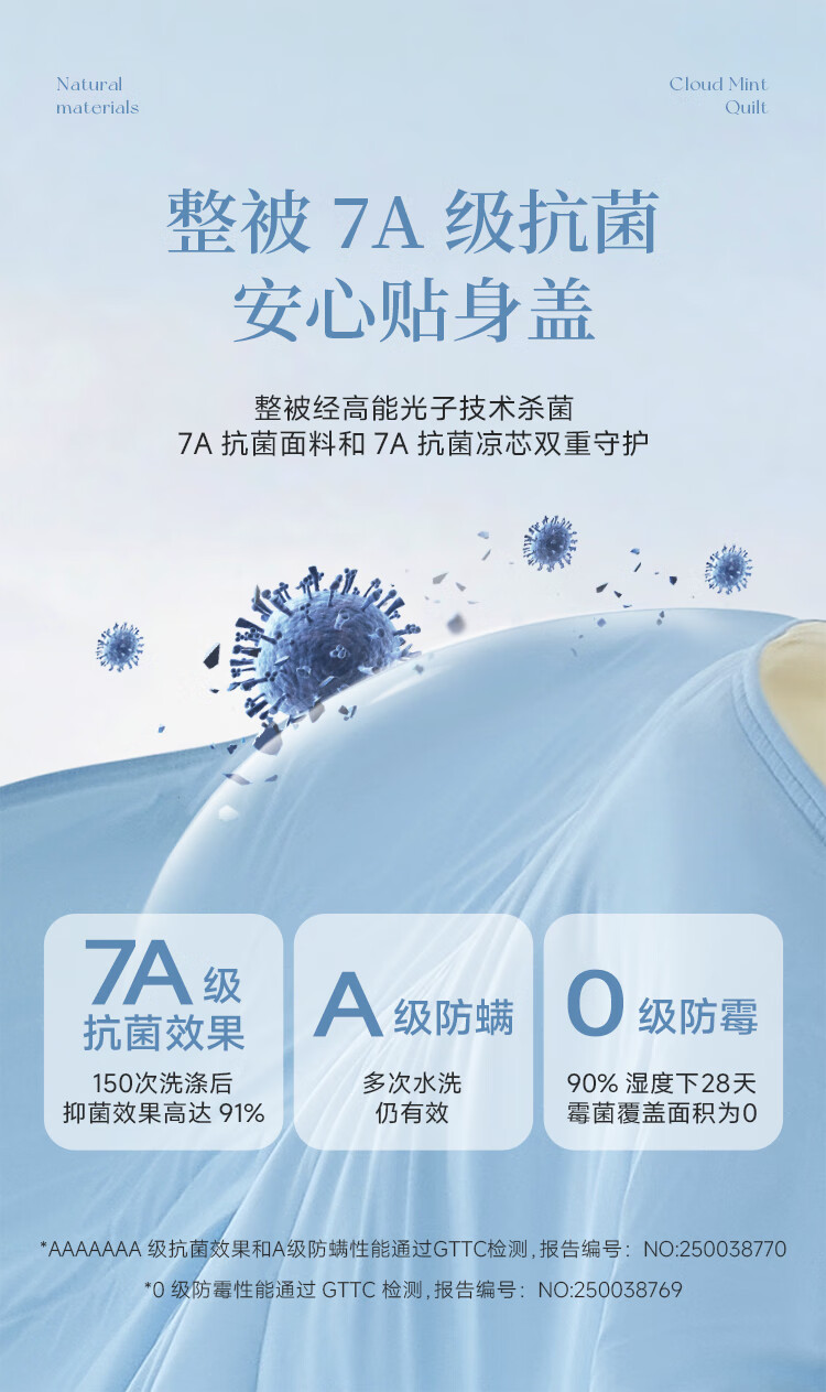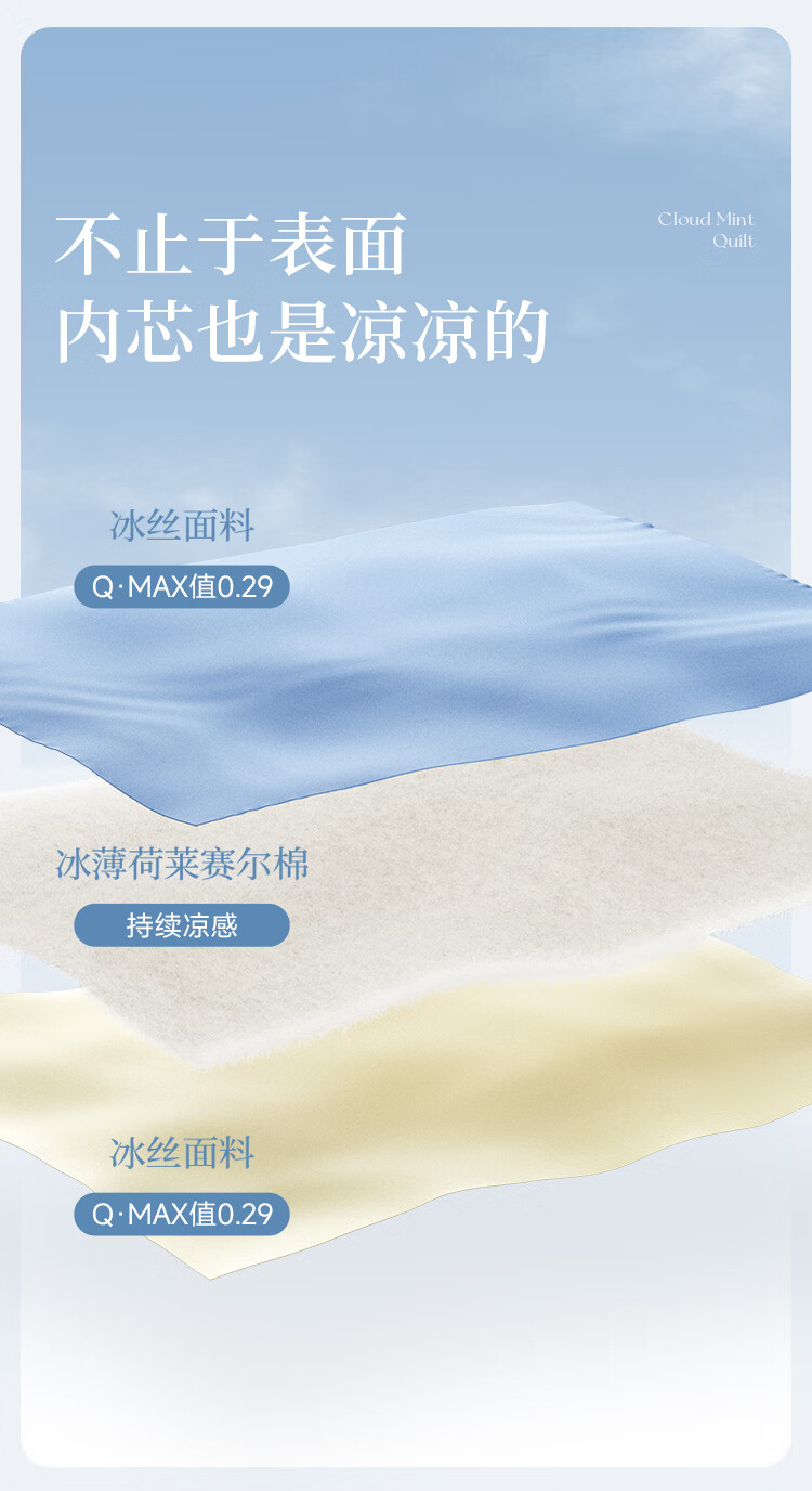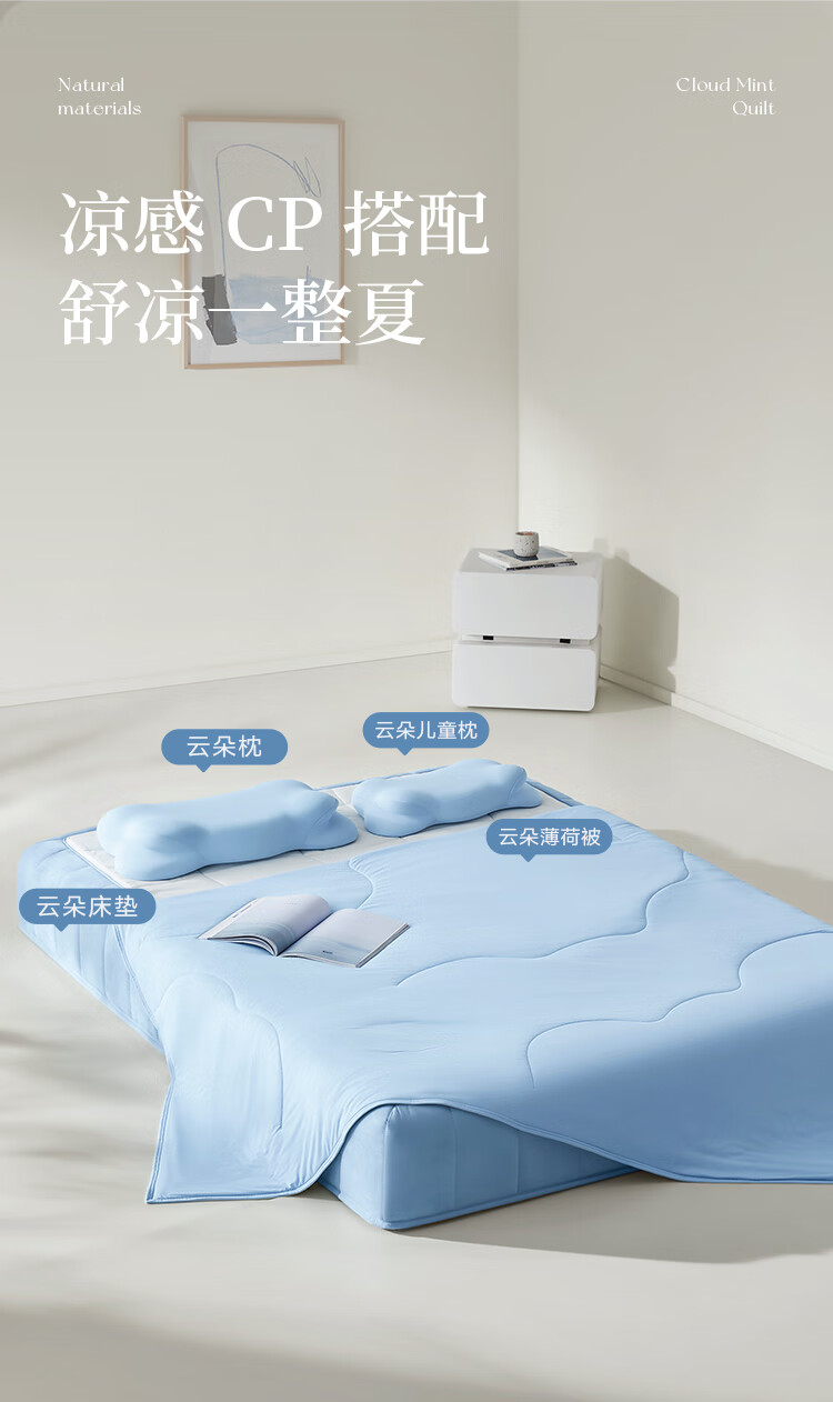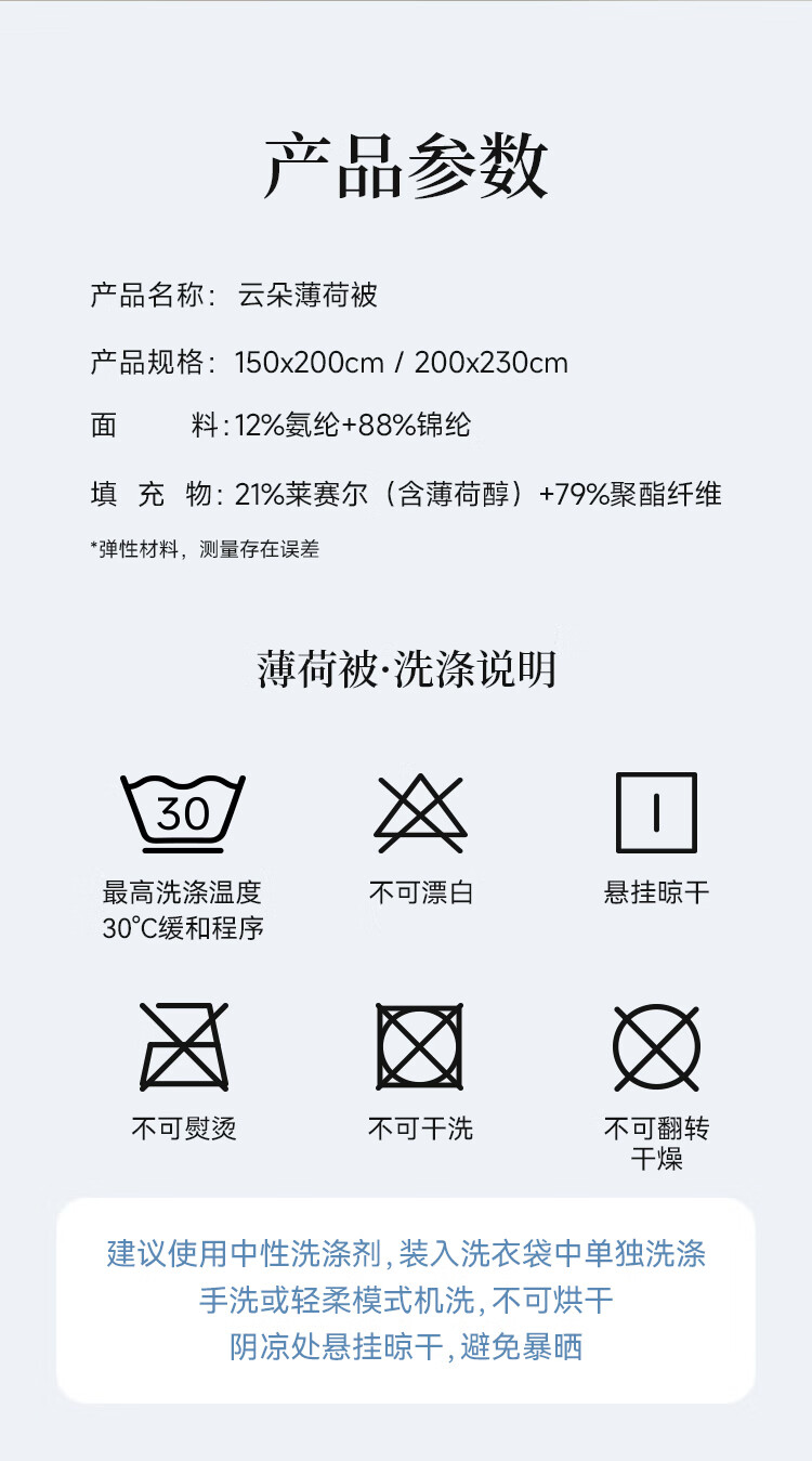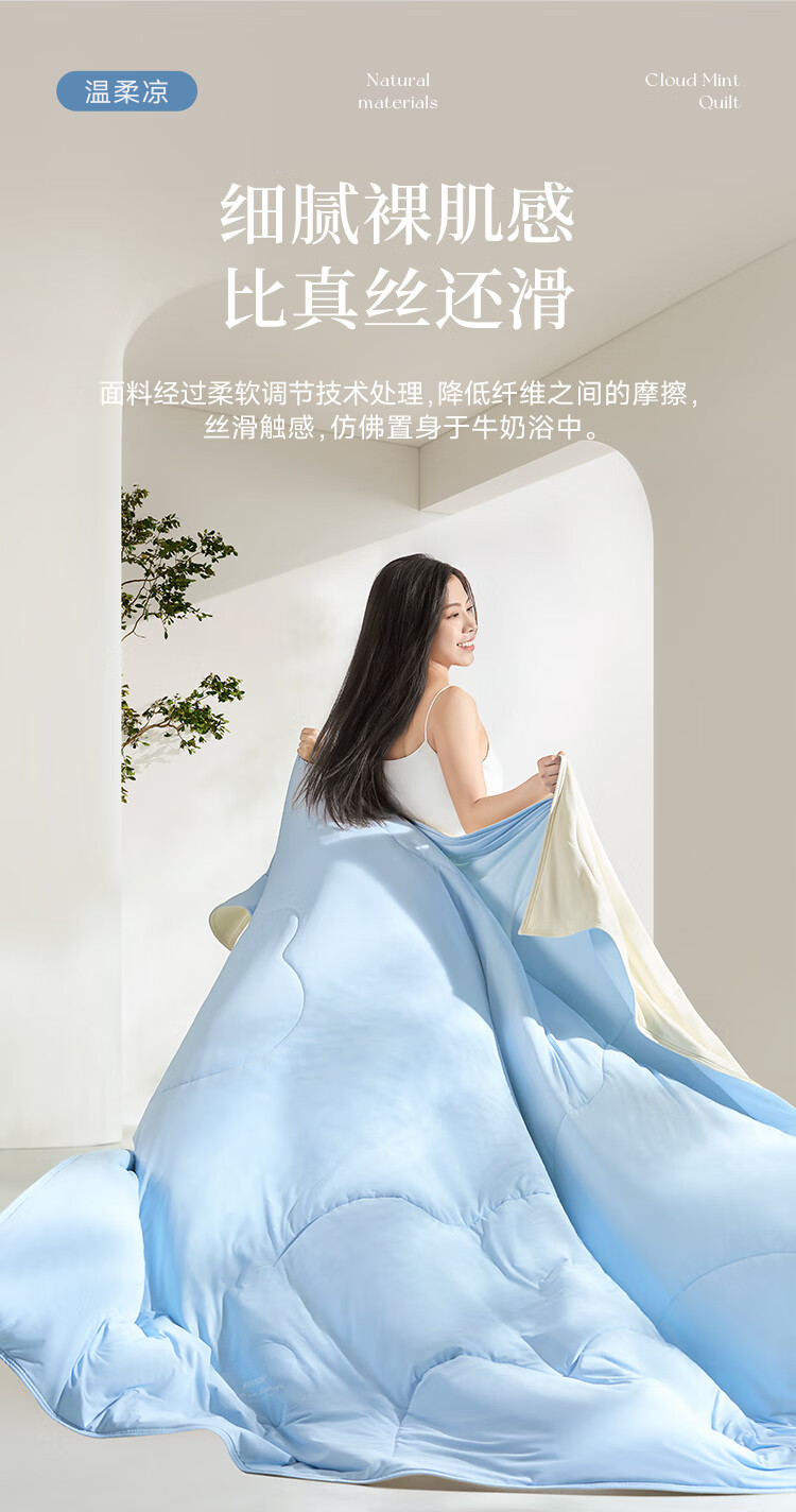 时光存折云朵薄荷被夏凉被 柔软亲肤凉感薄被空调被 A类被子儿童婴儿可用 晴空蓝150×200【A类级面料】