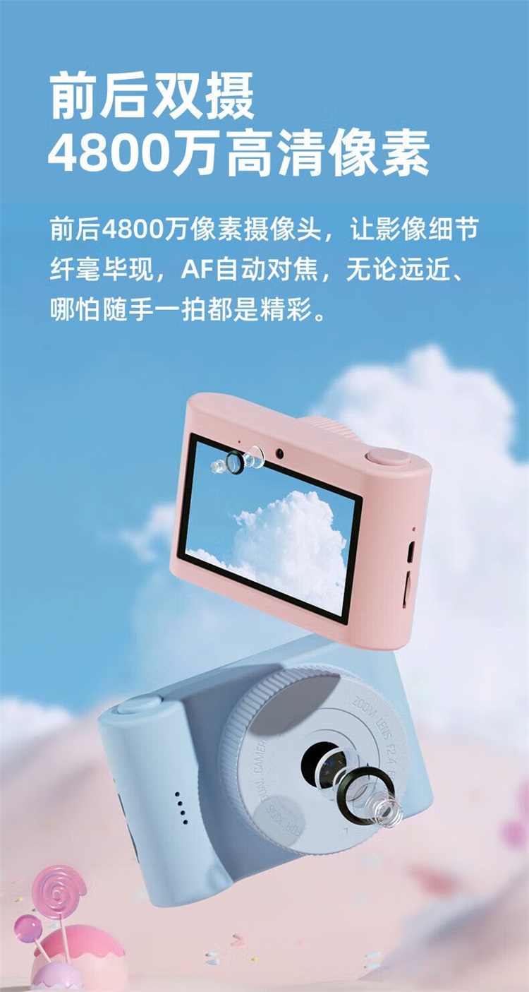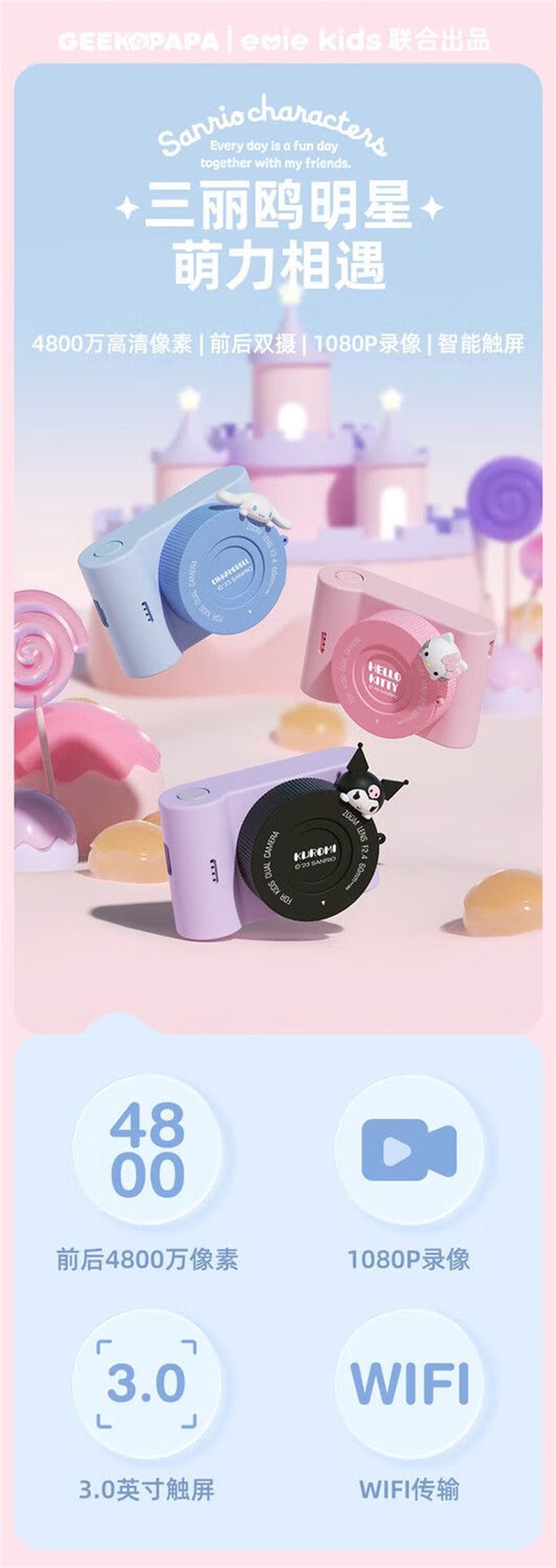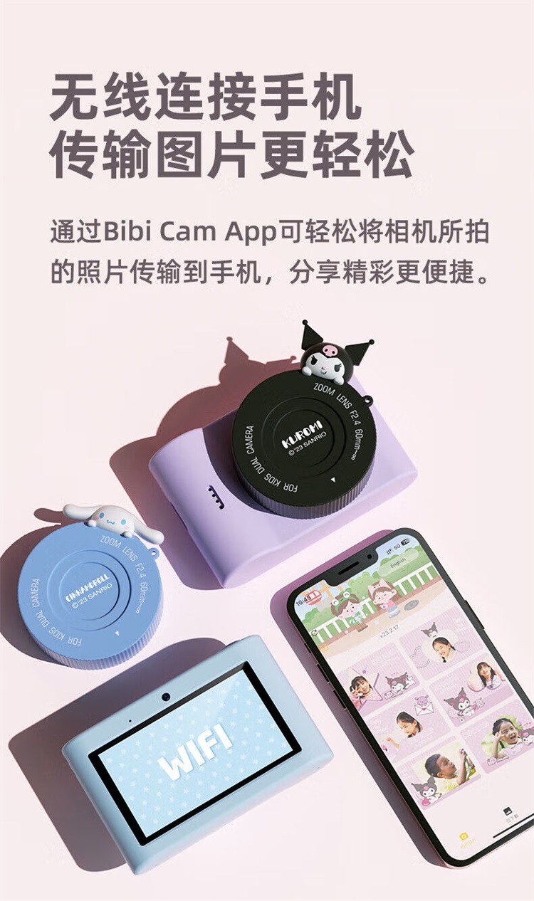 智能健康三丽鸥照相机儿童相机数码高清触屏学生玩具学生新年生日 C5紫色库洛米64G+无线传输