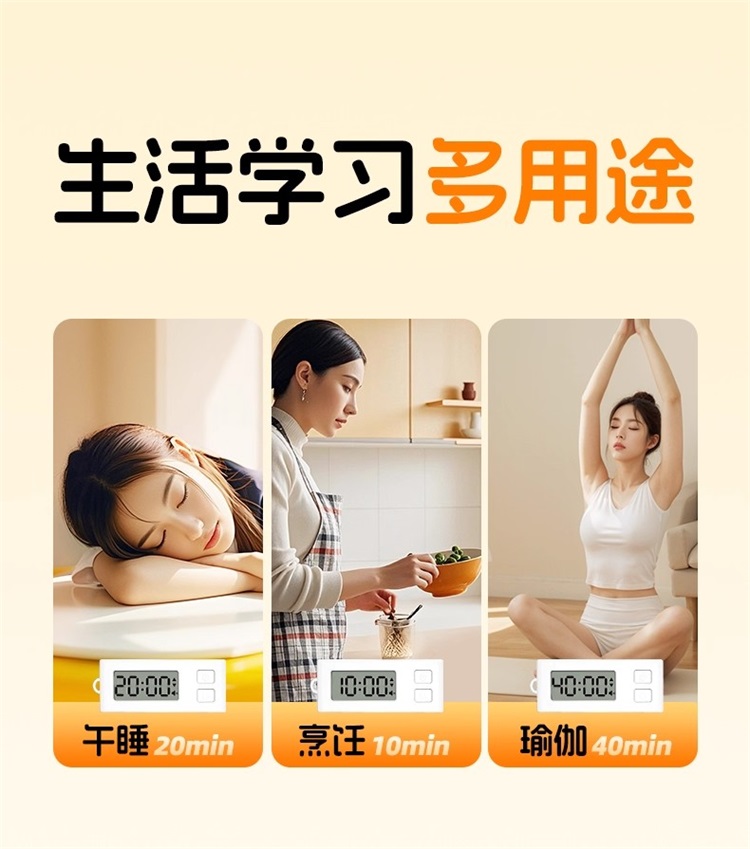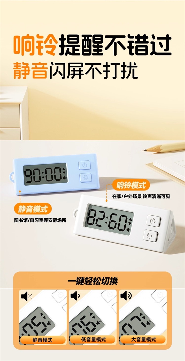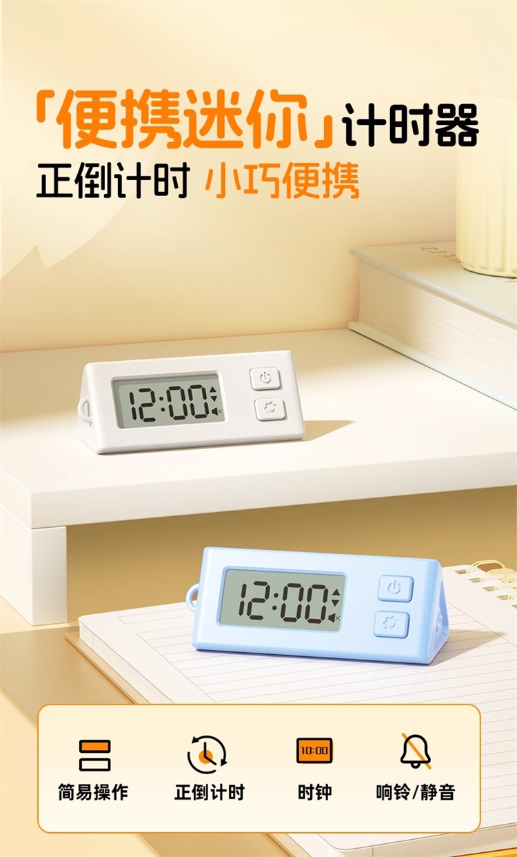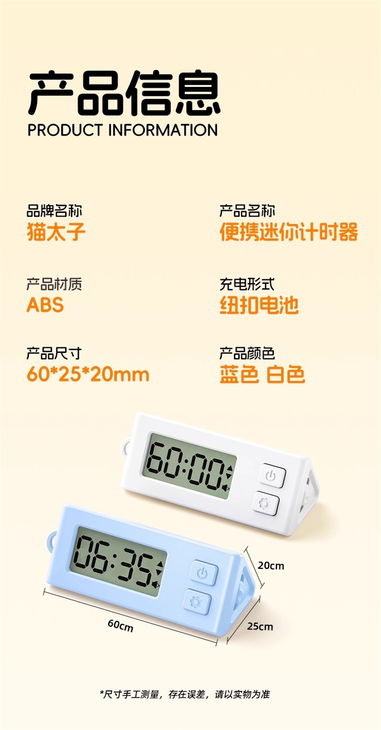猫太子多功能迷你计时器学习专用静音倒计时提醒器闹钟时间管理器