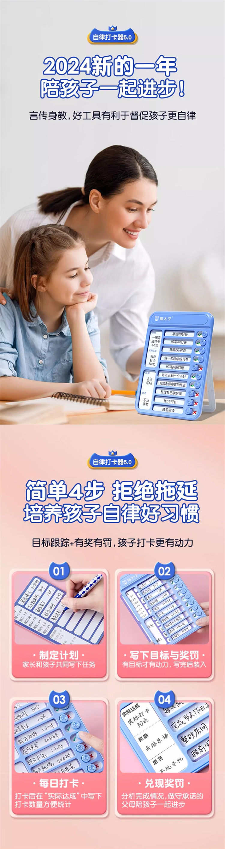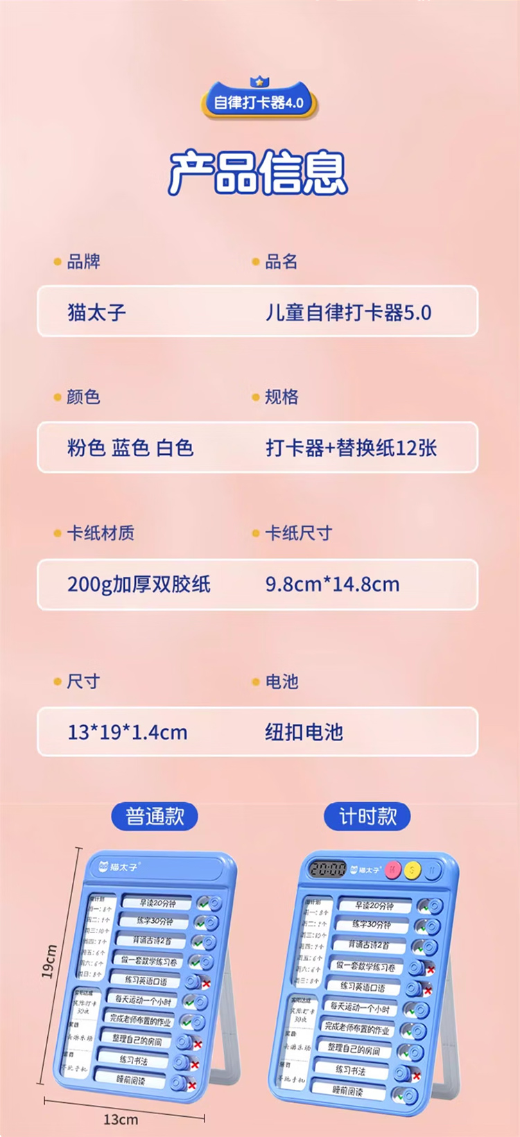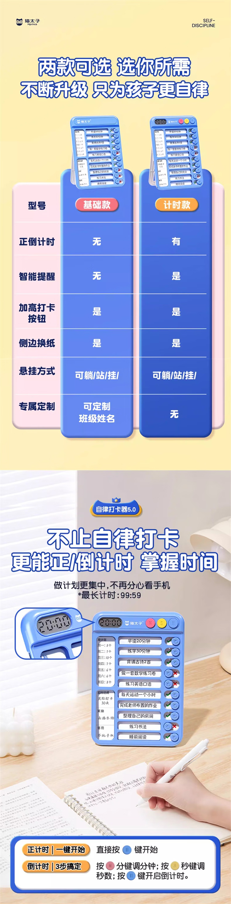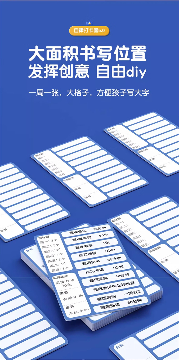 猫太子暑假自律学习计划表打卡器小学生作业课程表儿童自律打卡神器时间管理器每日任务计划本假期记录表 趣计划自律打卡器 蓝
